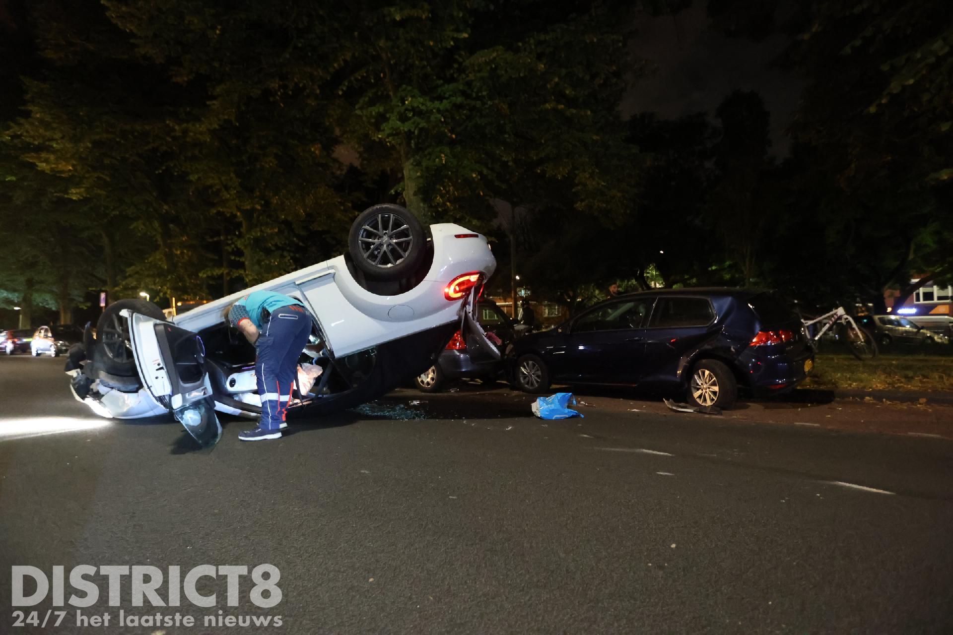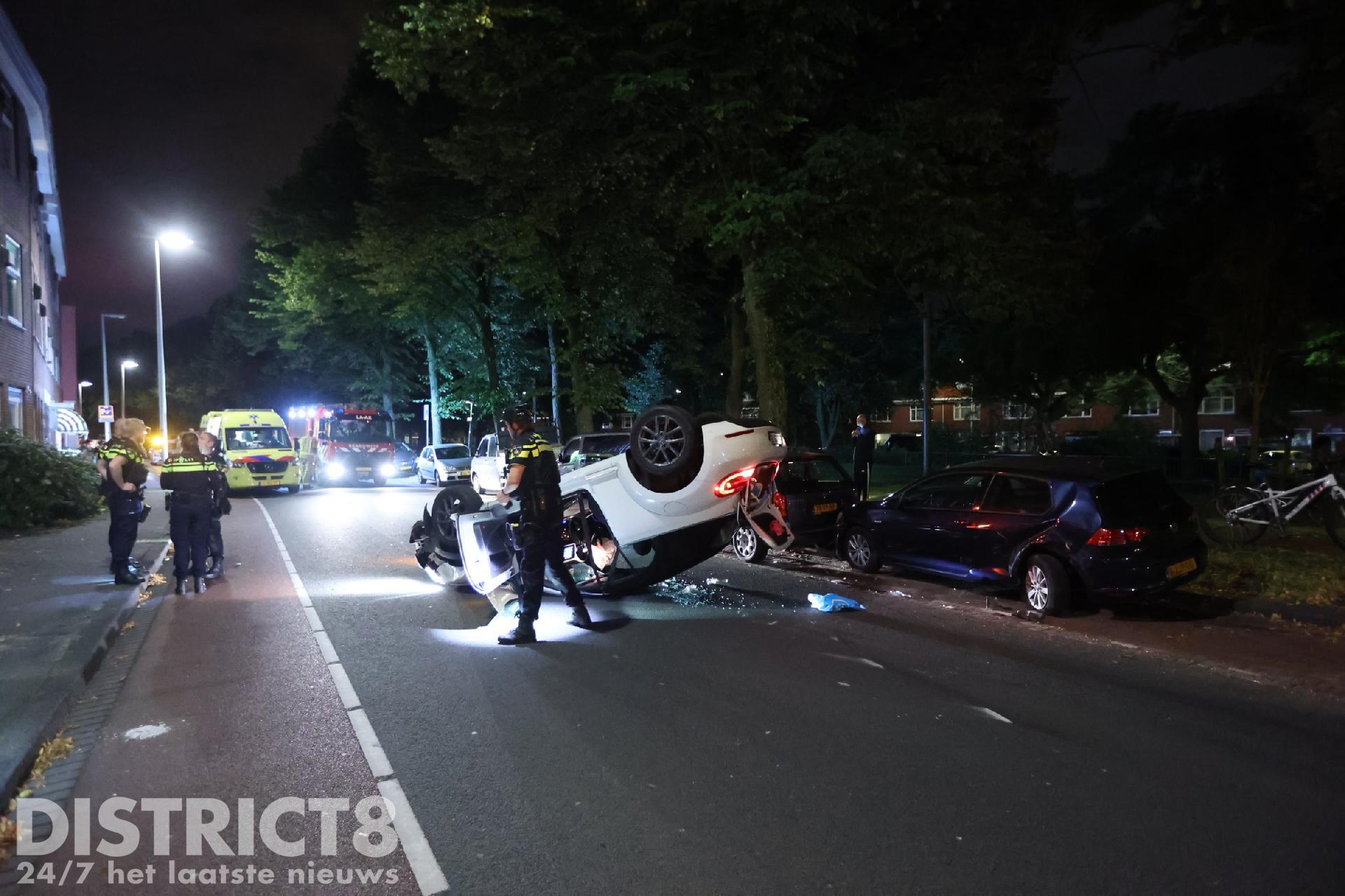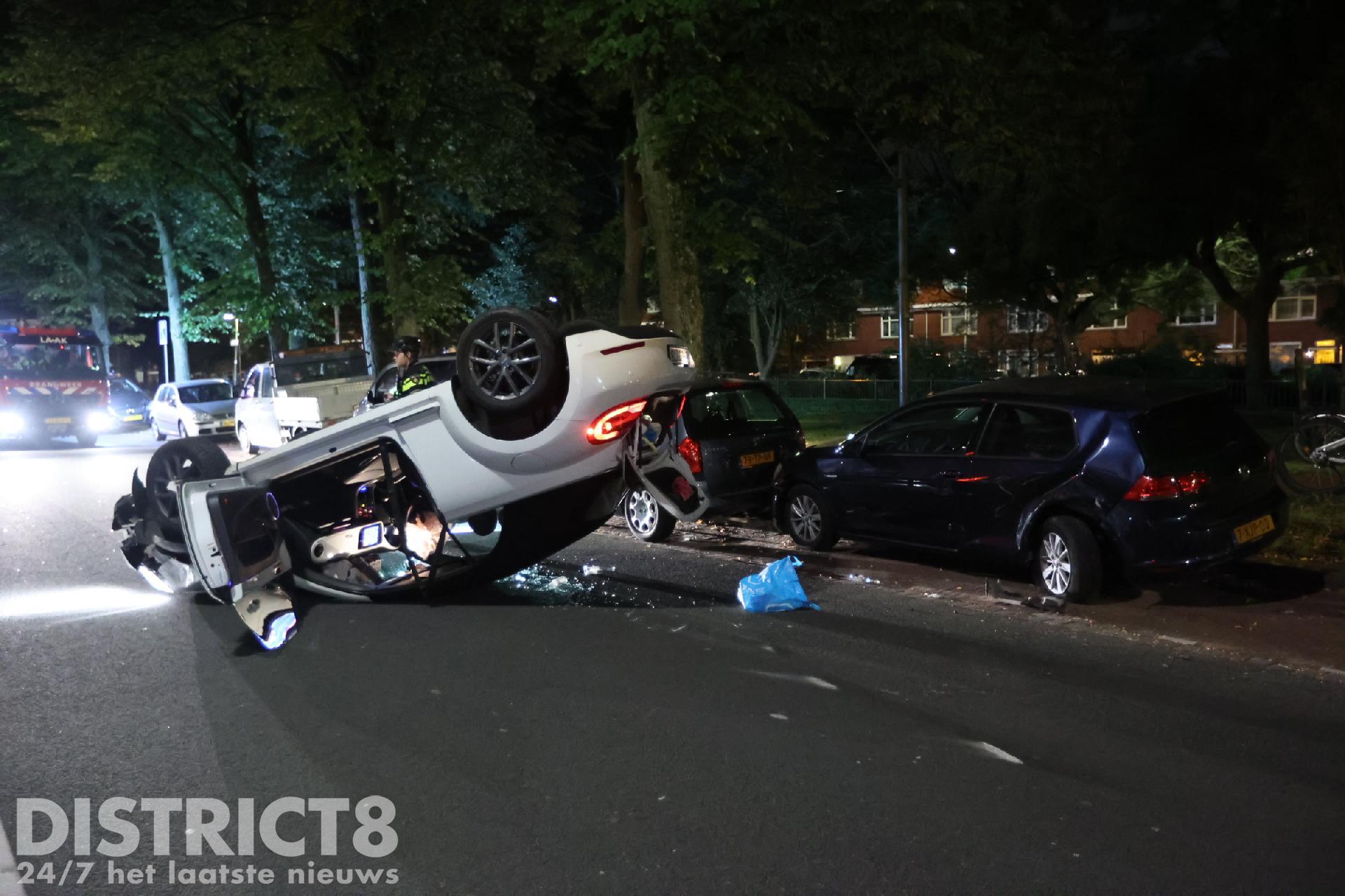Alcomobilist ramt meerdere voertuigen en eindigt op z’n kop Parallelweg Den Haag