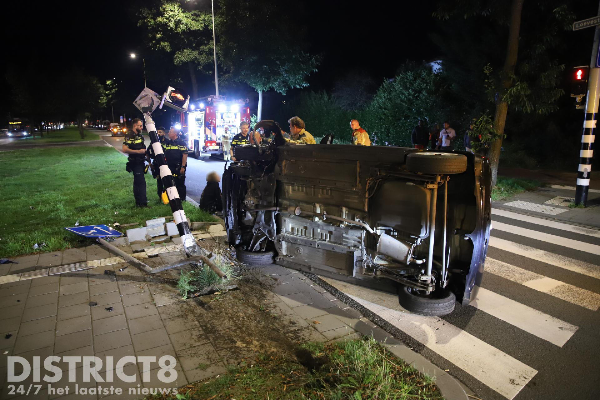 Alcomobilist ramt verkeerslicht en belandt op zijkant Loevesteinlaan Den Haag