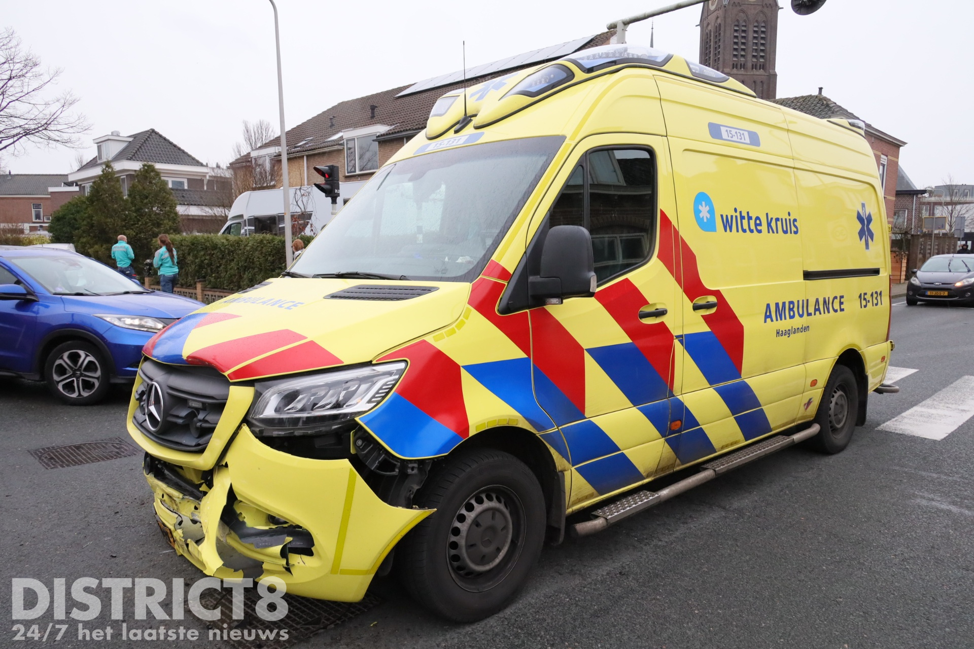 Terwijl de hulpdiensten met spoed naar het incident onderweg waren, ging het mis op een kruising in de buurt van de reanimatie. De ambulance reed met zwaailichten en sirenes de kruising op, echter zag een automobilist de ambulance over het hoofd met een botsing tot gevolg.