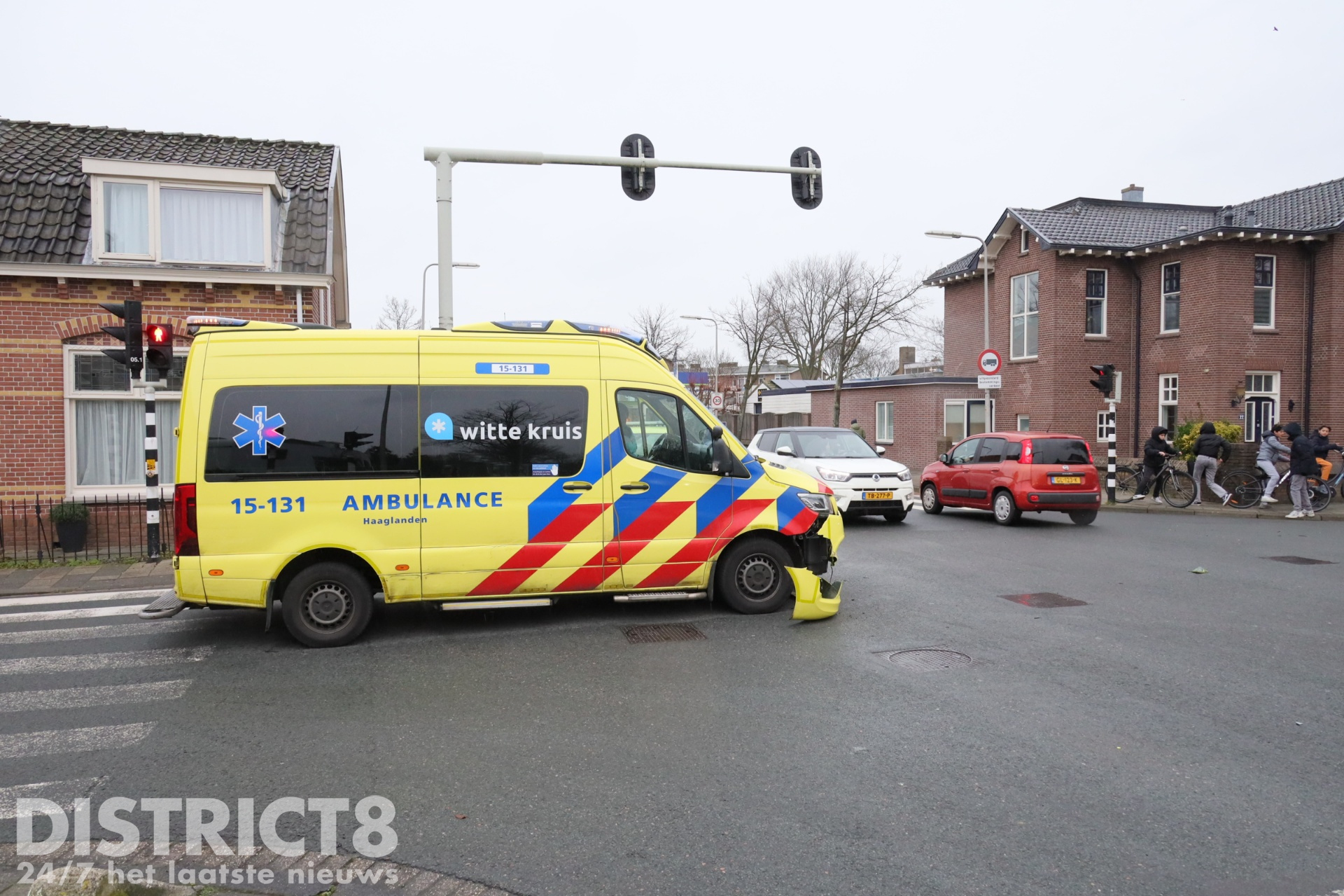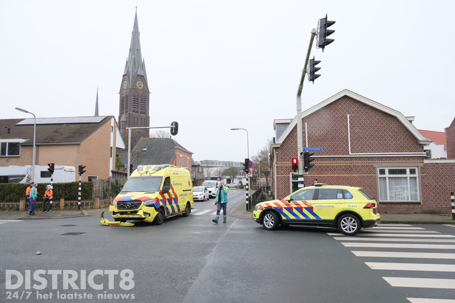 Poeldijk – Op de kruising van de Jan Barendselaan en de Verburghlaan in Poeldijk heeft donderdagmiddag 23 januari een aanrijding plaatsgevonden tussen een personenauto en een ambulance. De ambulance was met spoed onderweg naar een reanimatie aan de Sutoriusstraat in Poeldijk.