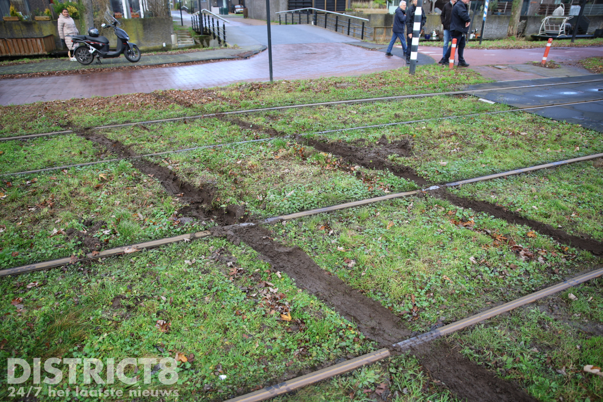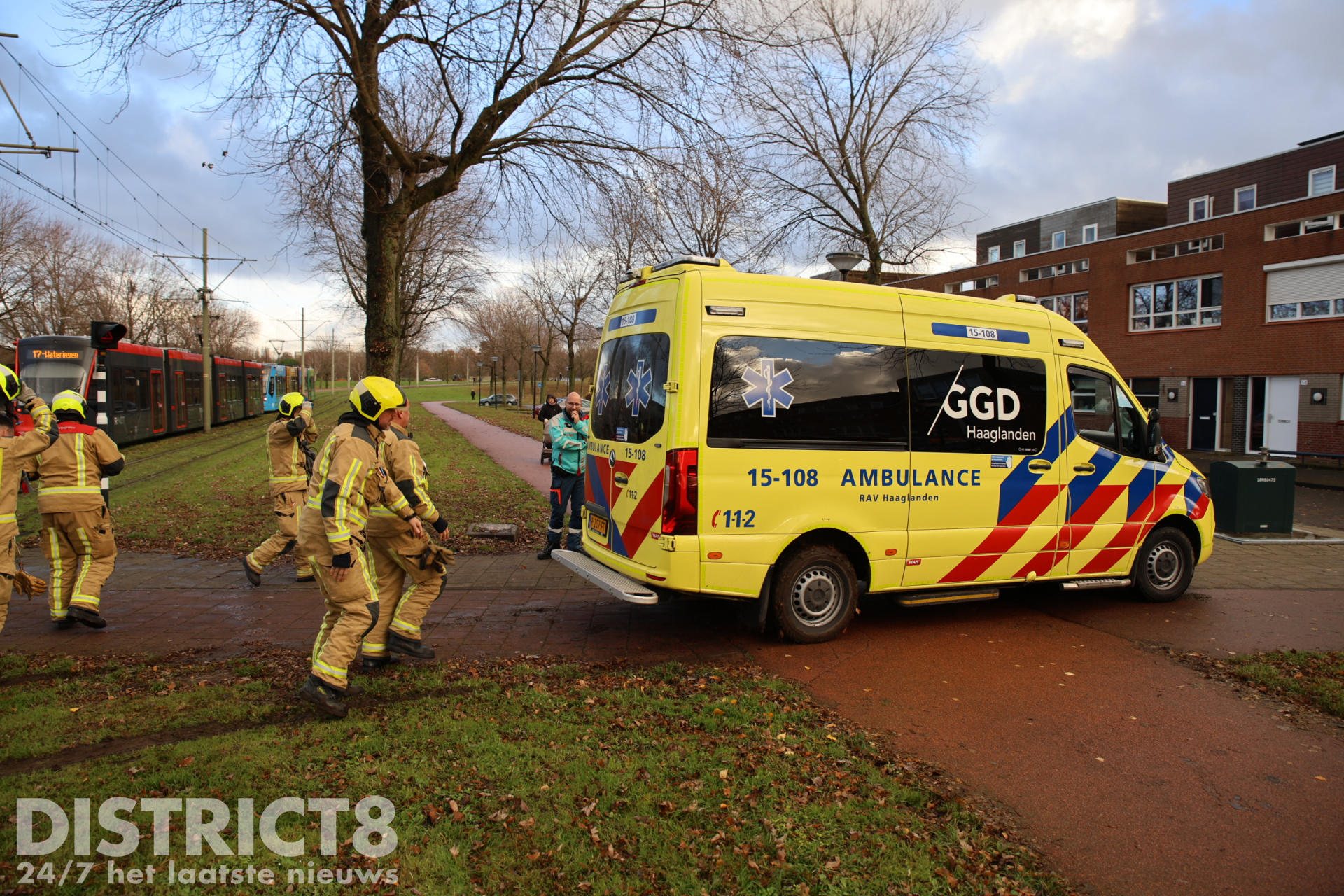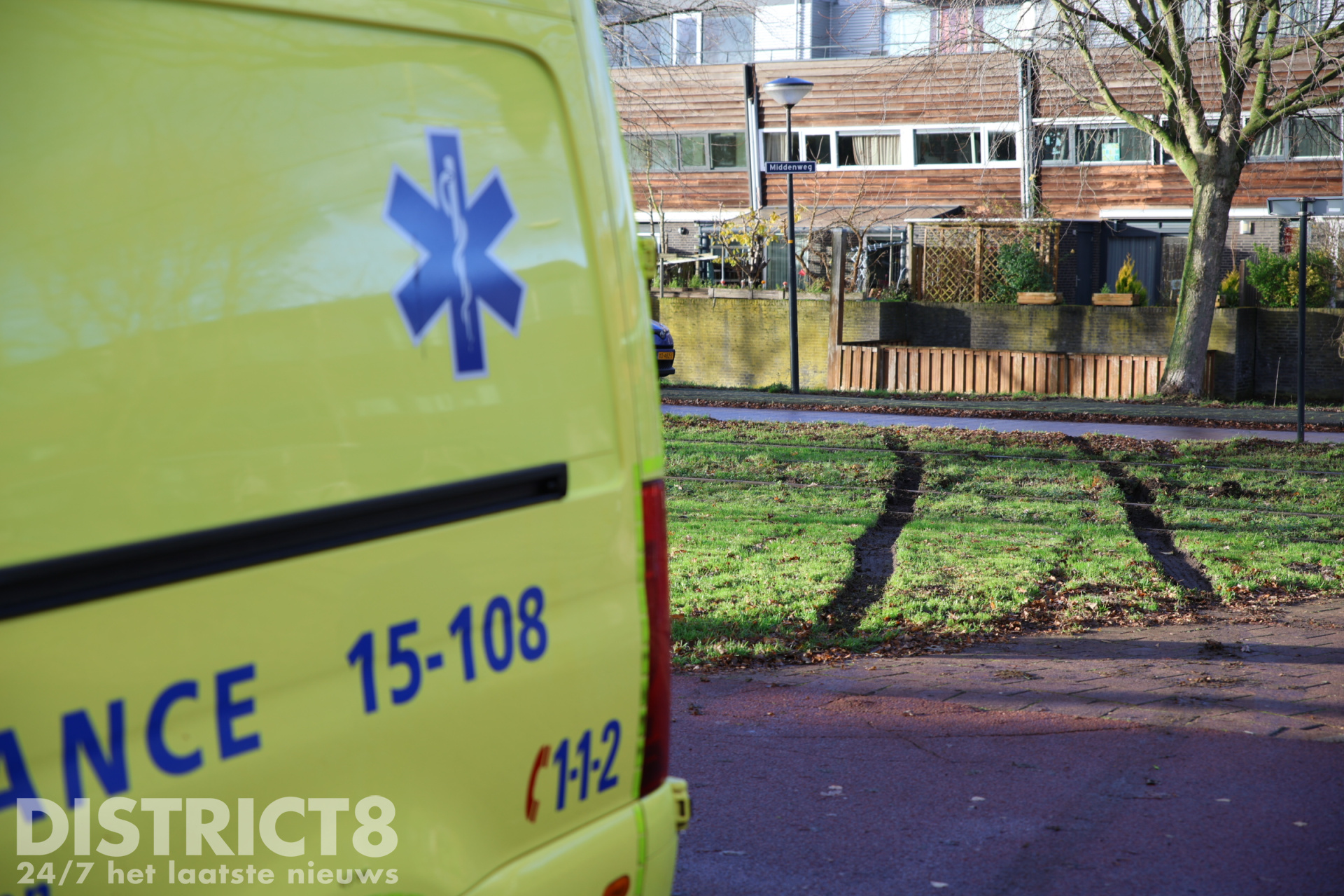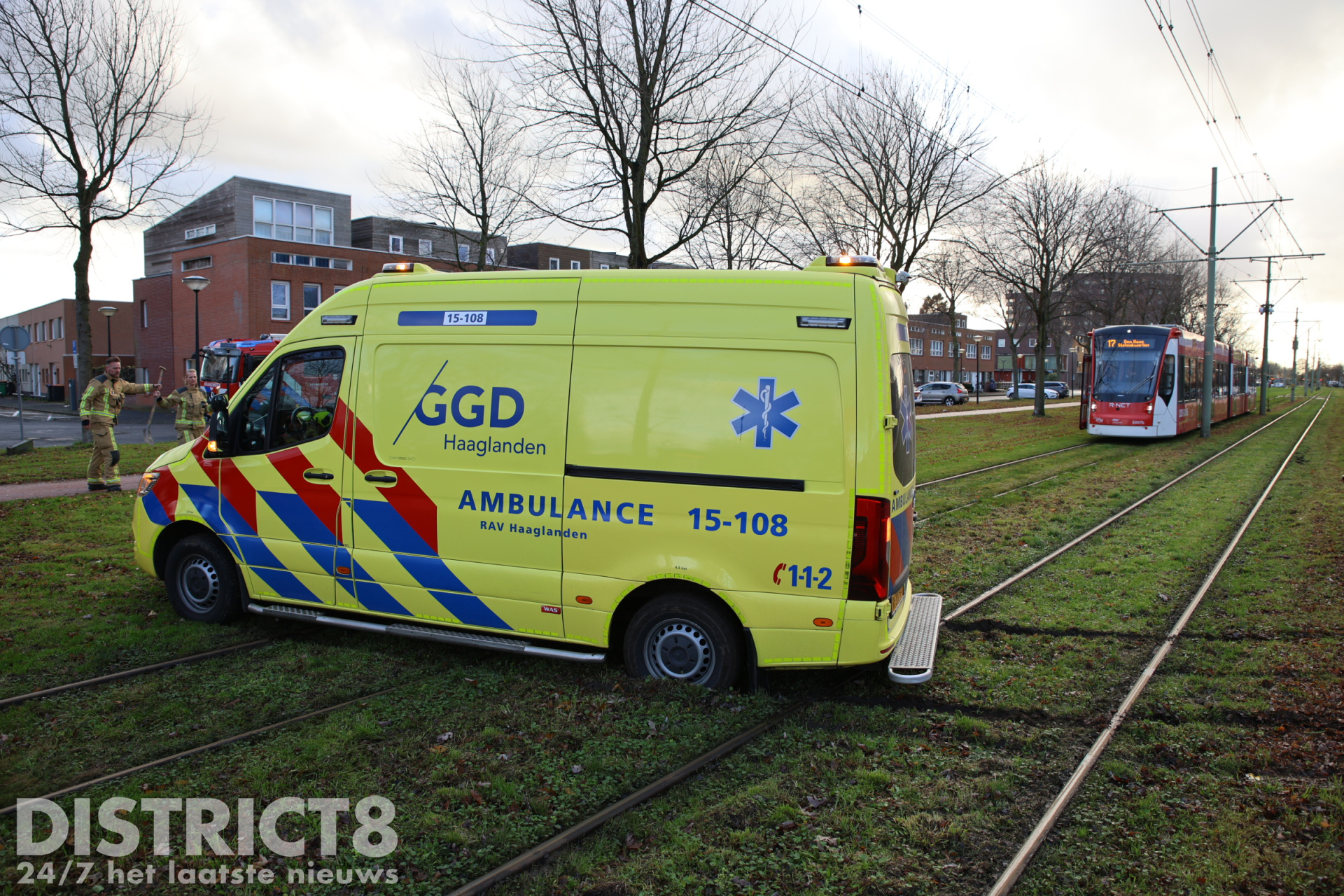 Na een medische noodsituatie was de ambulance vertrokken en wilde deze de tramsporen oversteken. Halverwege zakte de ambulance weg en kwam deze vast te zitten.