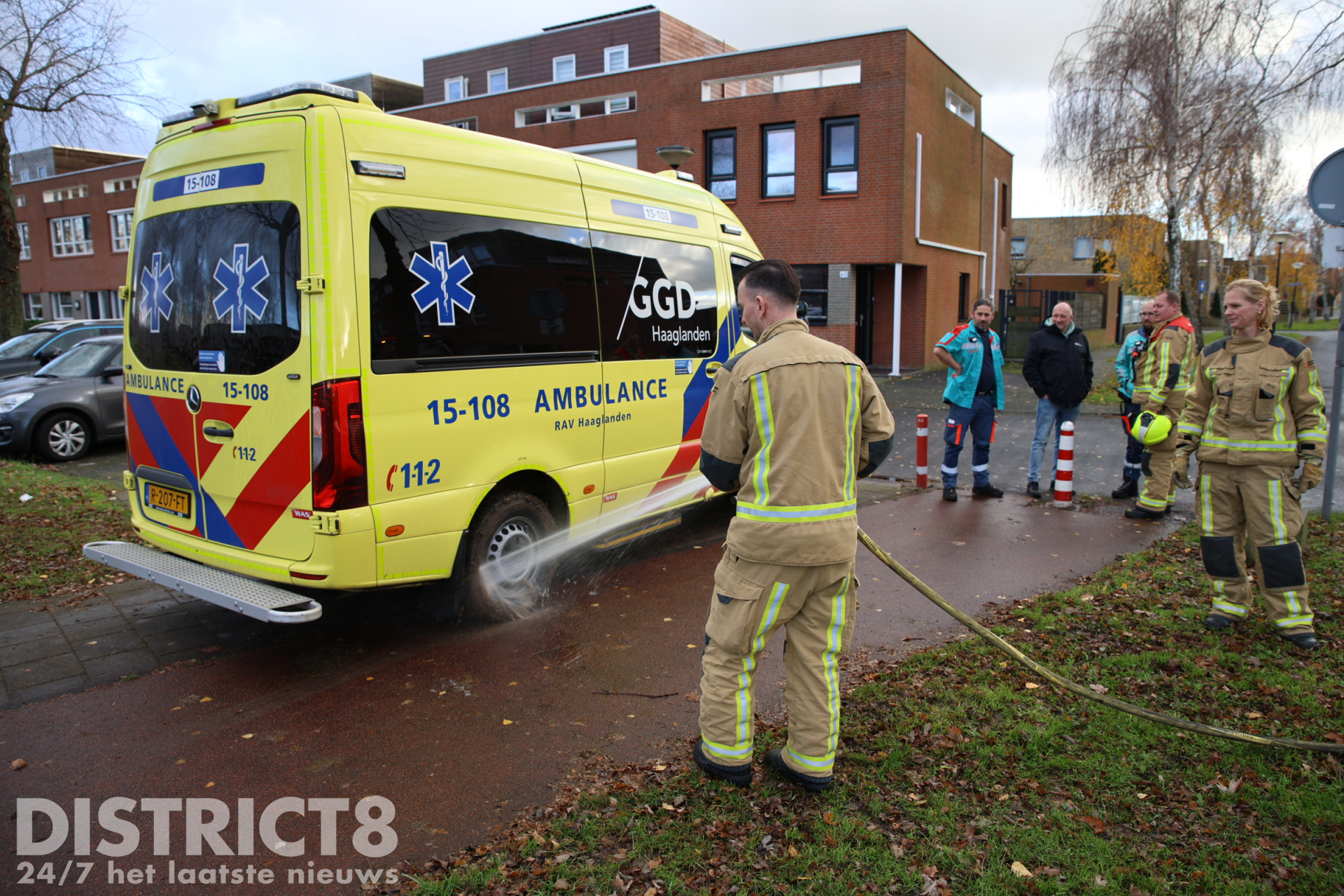De brandweer van Wateringen kwam zonder spoed ter plaatse en wist na wat duw werk de ambulance los te krijgen uit de modder. De brandweer heeft uiteindelijk de banden van de ambulance schoon gespoten zodat deze veilig zijn weg kon vervolgen.