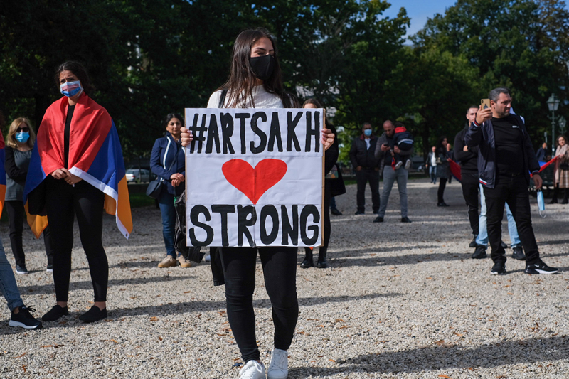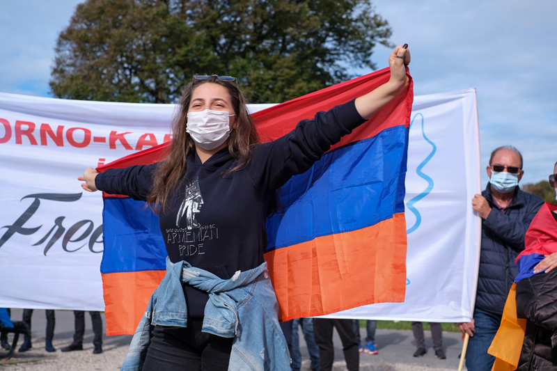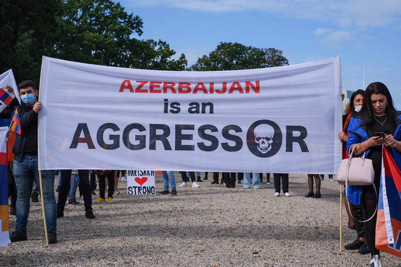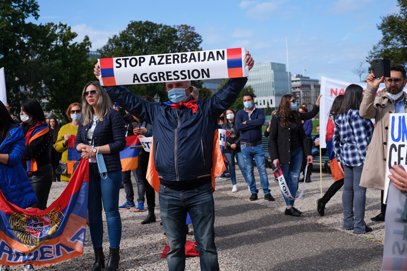 Den Haag – Op de Laan van Reagan en Gorbatsjov in Den Haag wordt dinsdagmiddag 29 september geprotesteerd. Een groep van ongeveer 100 Armeniërs protesteert tegen de oorlog in de regio Nagorno Karabach in Azerbeidzjan.