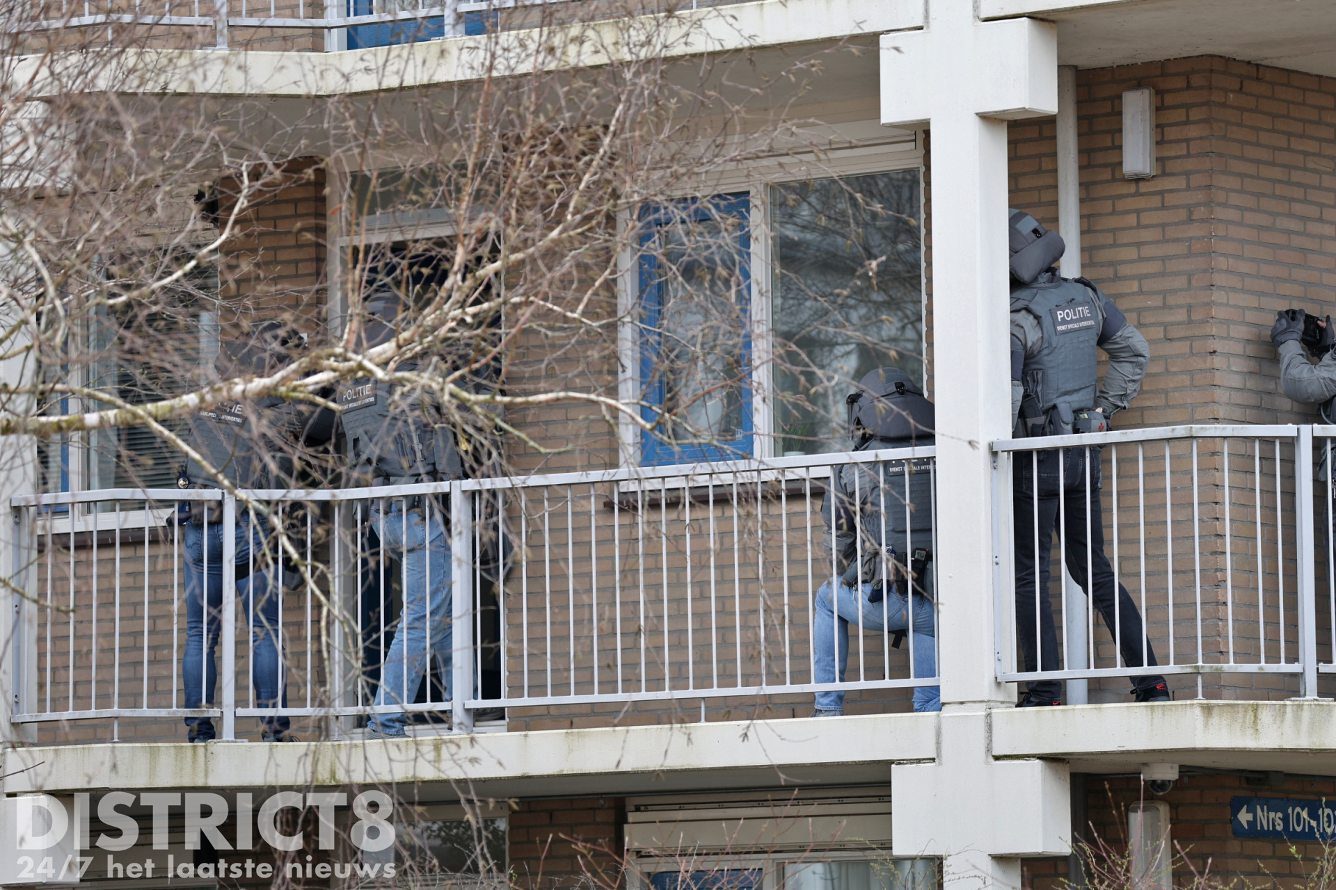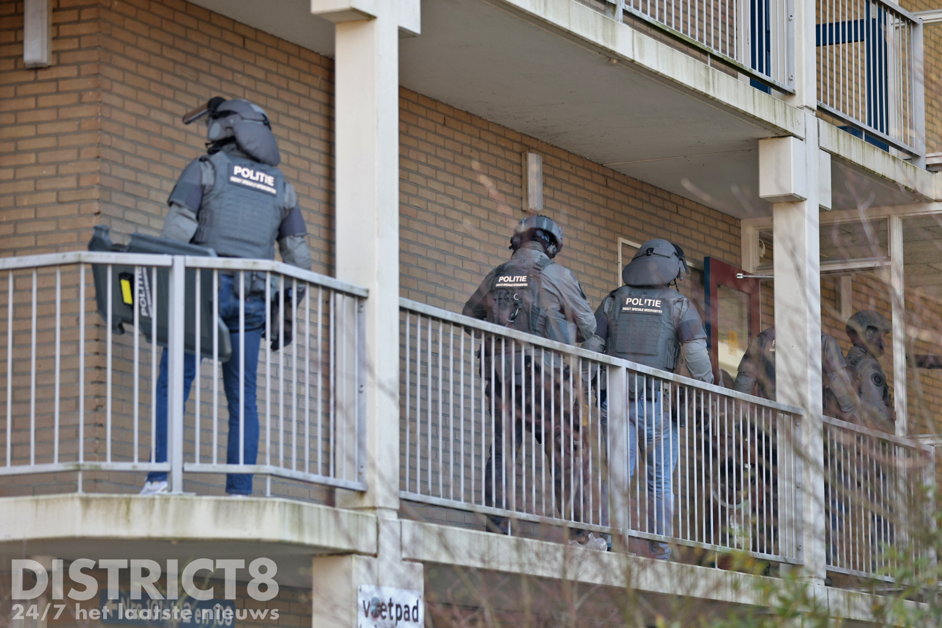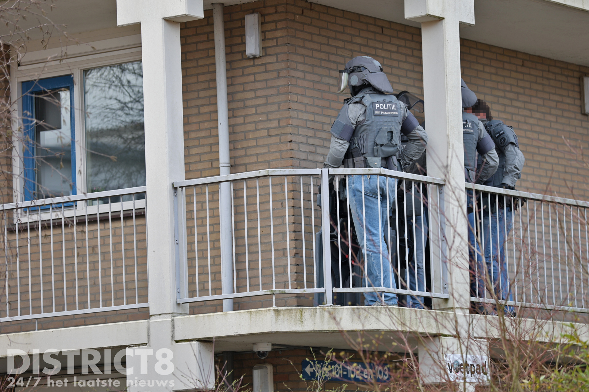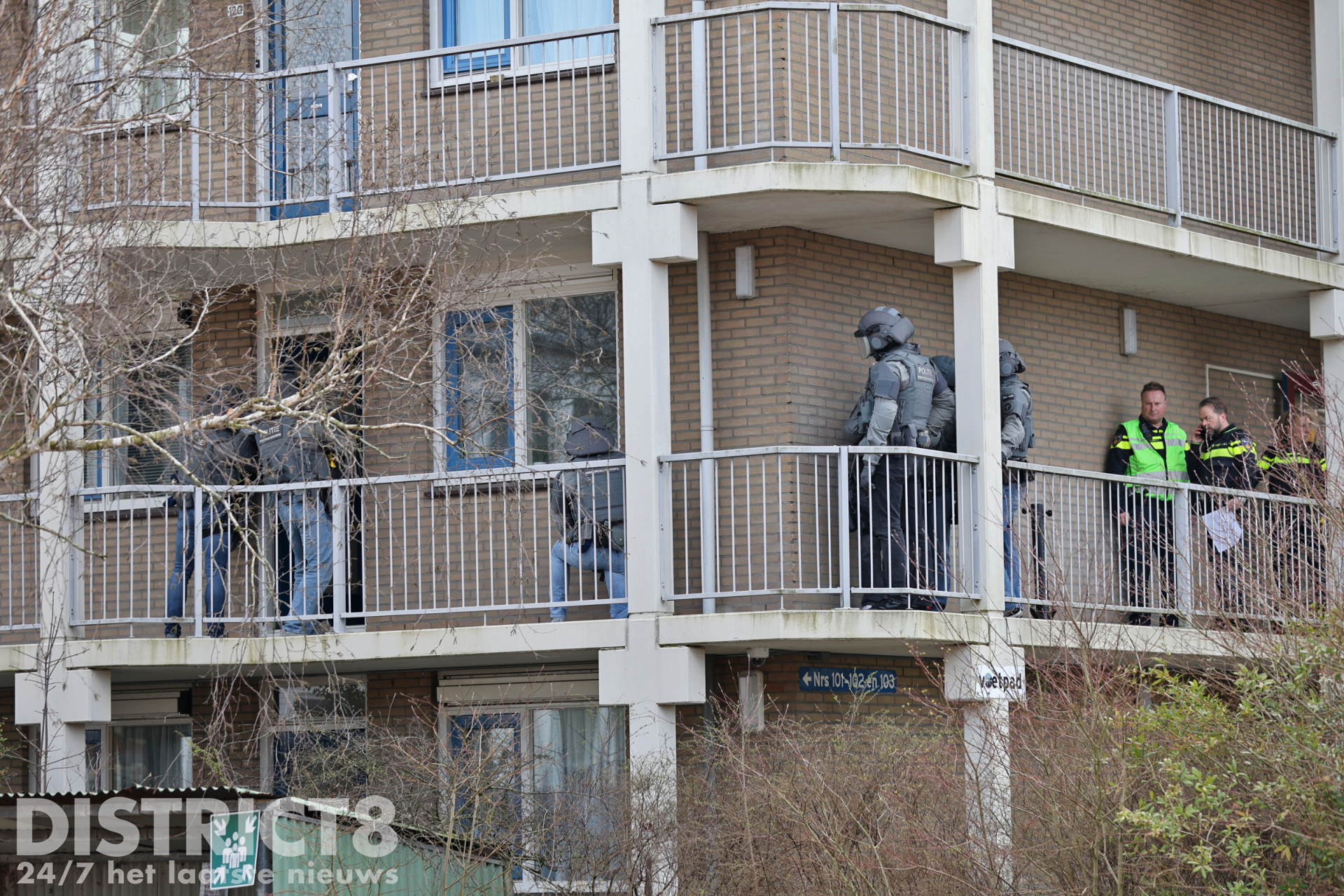 Arrestatieteam doet instap in woning na melding van man met wapen op balkon Pauwhof Rijswijk