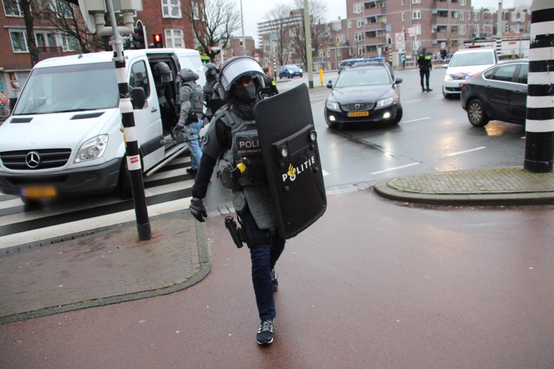 Omdat er al snel een vermoeden was waar de mogelijke schutter verbleef, is het arrestatieteam van de politie ter plaatse gekomen in de De Constant Rebecquestraat. Nadat de woning in de gaten gehouden is, hebben de agenten een instap gedaan. In de woning is niemand aangetroffen.