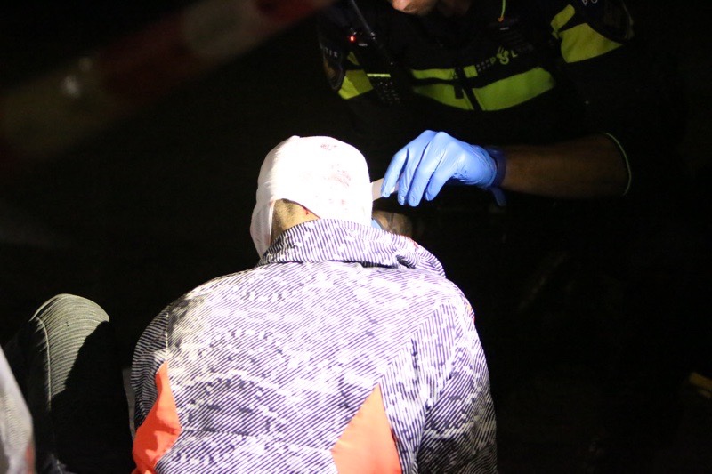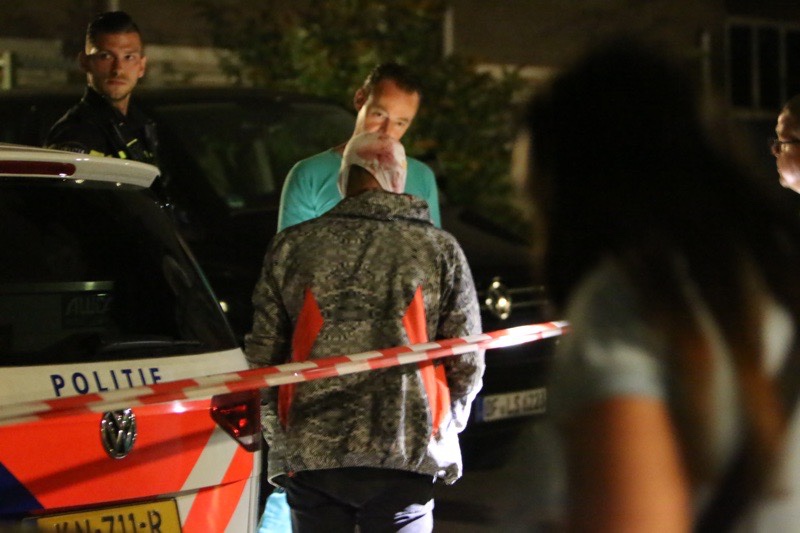 Toen de man net aangehouden was in de woning, ontstond buiten enig tumult. Een omstander die zich volgens andere omstanders al de hele avond vervelend gedroeg werd door een onbekende dader op het achterhoofd geslagen. De man belandde hierdoor met een fikse hoofdwond op straat. De dader vluchtte te voet de wijk in, achtervolgd door 2 politieagenten die de dader na een korte achtervolging zijn kwijt geraakt. Het slachtoffer werd door politieagenten verbonden en door het ambulancepersoneel wat reeds ter plaatse was zonder spoed (A2) overgebracht naar het ziekenhuis.