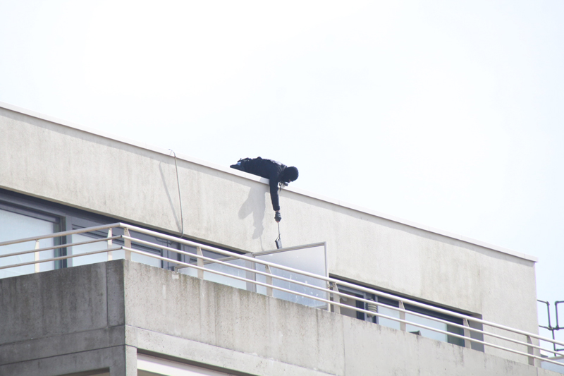 Een onderhandelaar van de politie is ter plaatse en probeert in gesprek te raken met de persoon om hem zo uit zijn woning te halen.