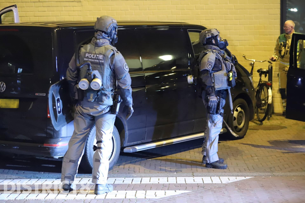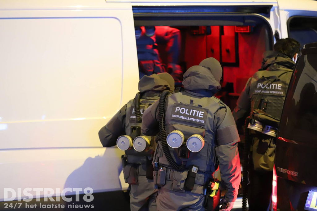 Door de informatie die uit het onderzoek kwam werd besloten om het pand te omsingelen. Agenten moesten hun kogelwerende vesten aan doen. Rond half acht vanavond is een zwaarbewapend arrestatieteam van de DSI (Dienst Speciale Interventies) met gasmaskers op het pand binnengegaan. Wat er precies in het pand is aangetroffen is onbekend. In het pand werd niemand aangetroffen.