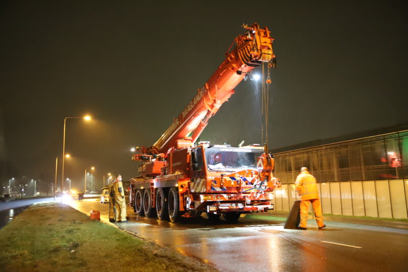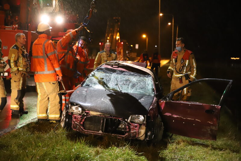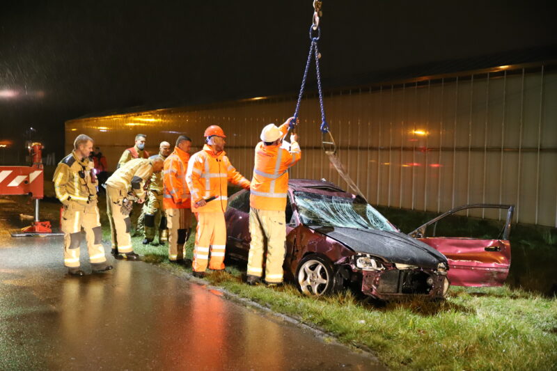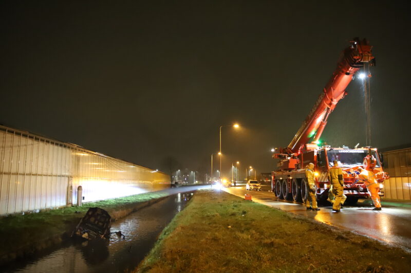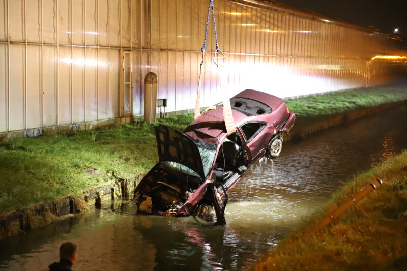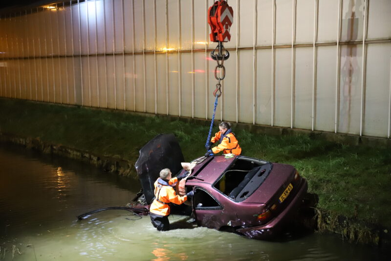 De bestuurder is na controle met spoed (A1) overgebracht naar het ziekenhuis. De auto is door de kraan van de brandweer uit het water gehaald.