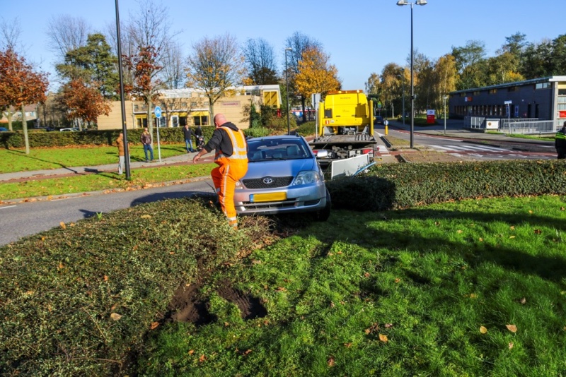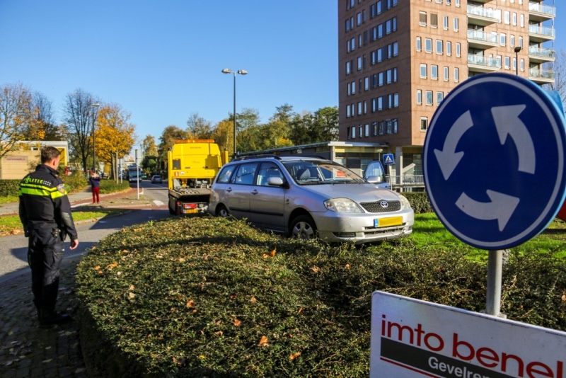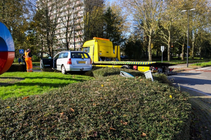 Auto belandt bovenop bosjes op rotonde Lepelaarsingel Vlaardingen