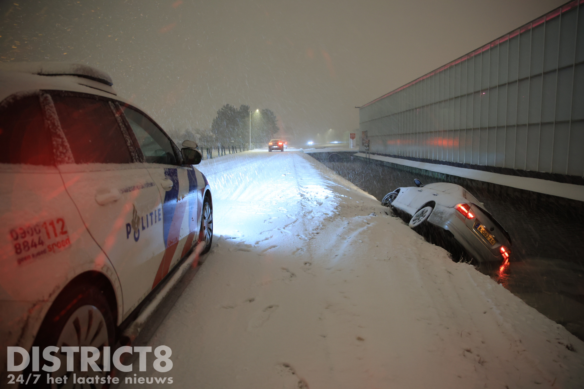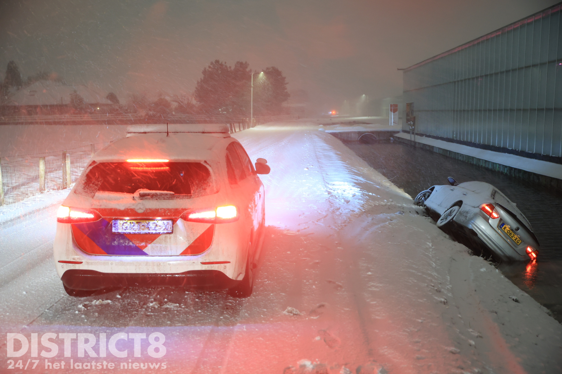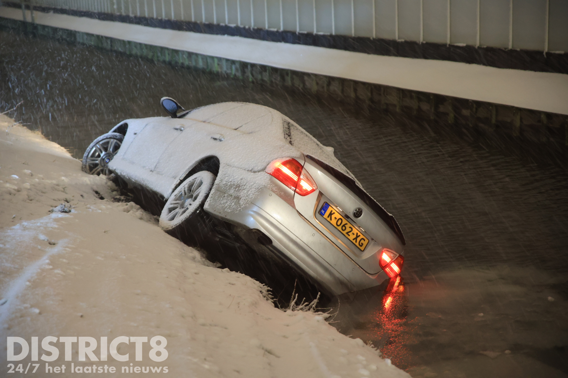 Den Hoorn – Op de Veenakkerweg in Den Hoorn is een auto door gladheid van de weg van de weg geraakt en in het water terechtgekomen. De automobilist kon zelfstandig uit het voertuig komen; niemand raakte gewond.