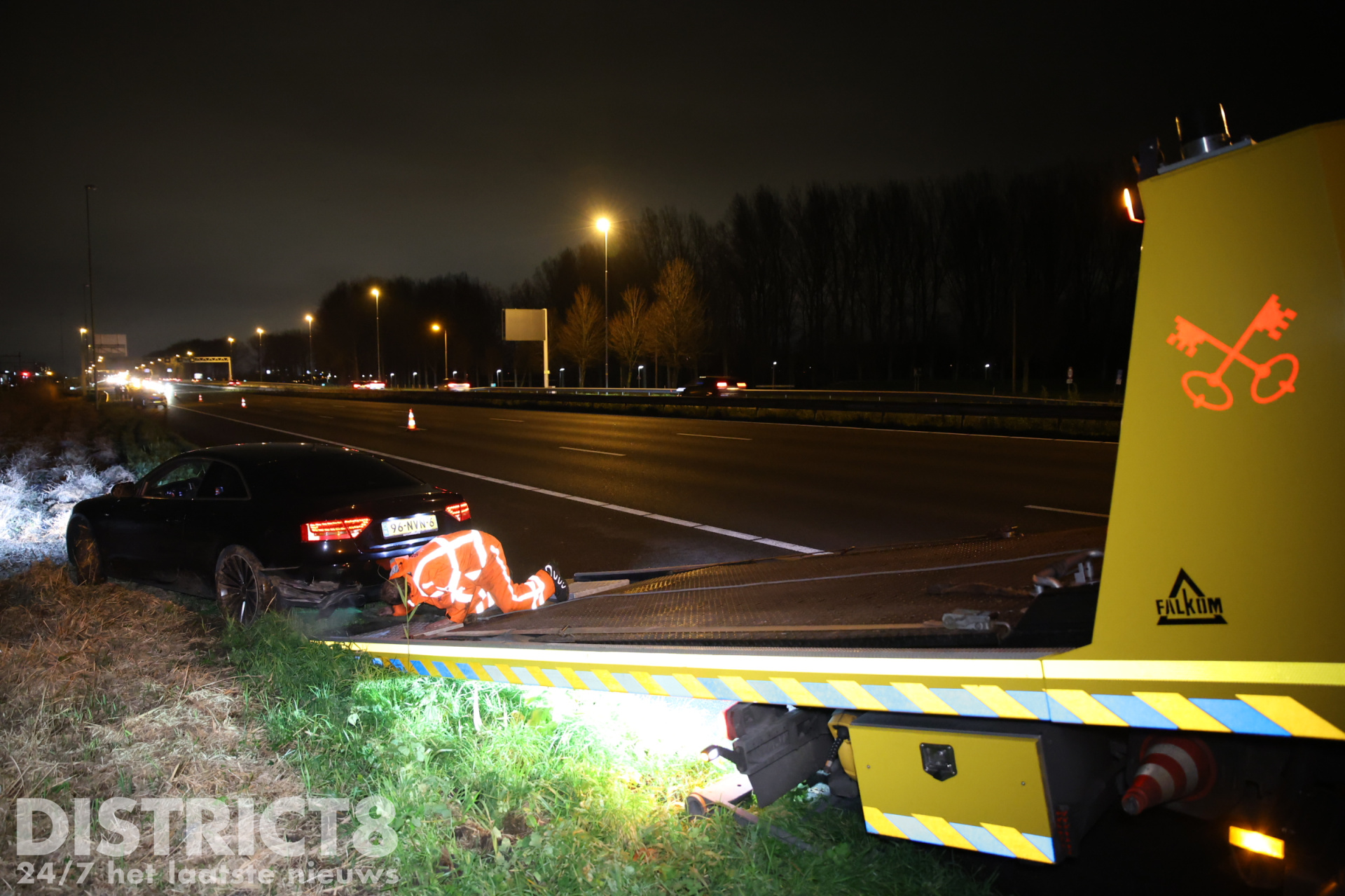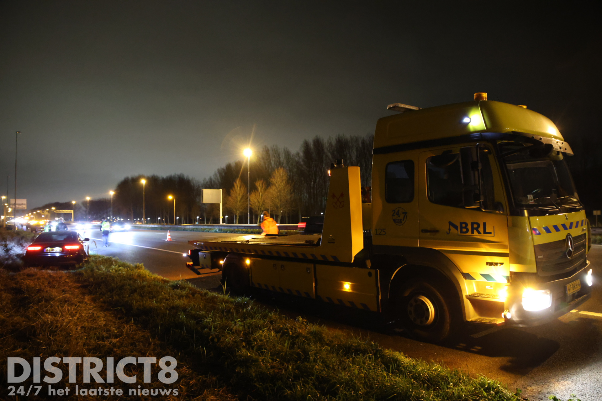 Een berger heeft de auto uit de berm getrokken en ook de andere auto afgevoerd. Hierna is de snelweg weer volledig vrijgegeven.