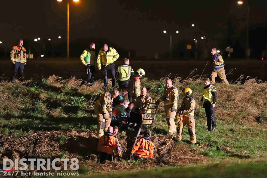 Na de melding kwamen politie, brandweer, ambulance en Rijkswaterstaat met spoed ter plekke. Nadat bekend werd dat het voertuig in het water lag, gingen brandweermannen met waadpakken het water in om het slachtoffer uit het voertuig te halen.