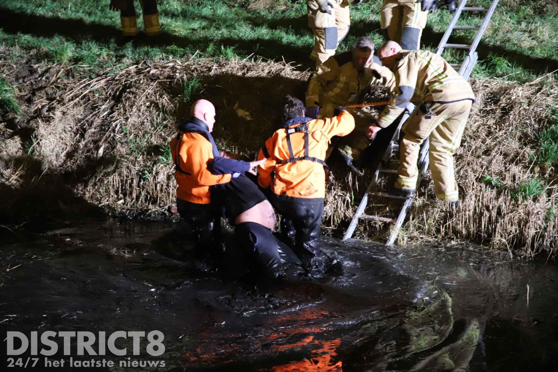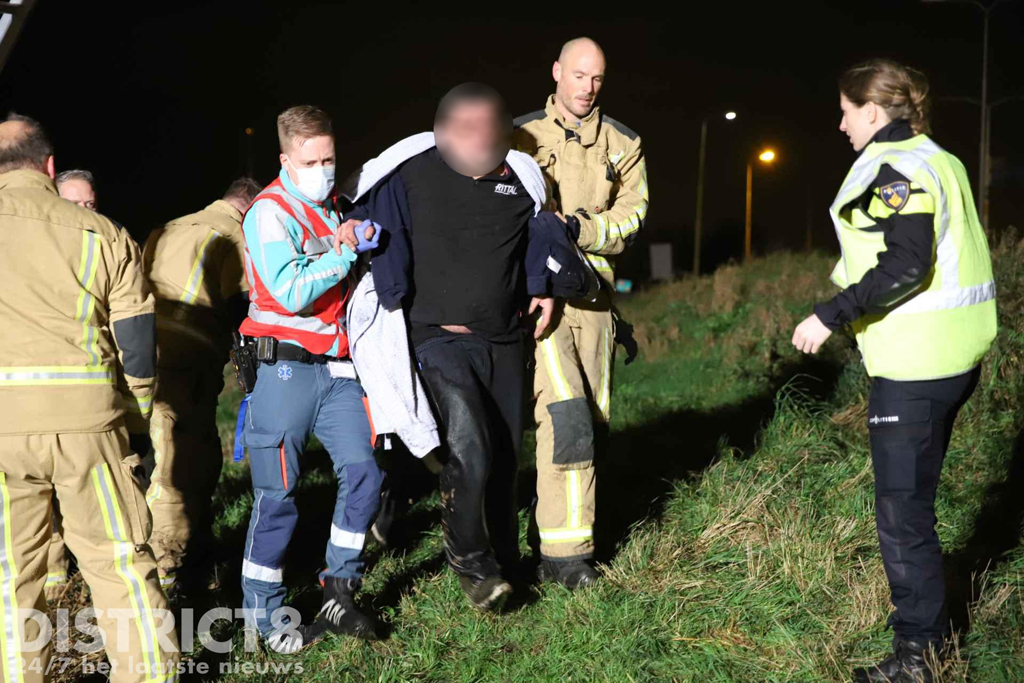 Op het droge is de man gecontroleerd door het ambulancepersoneel. Na de controles in de ambulance is de man met spoed (A1) vervoerd naar het ziekenhuis.
