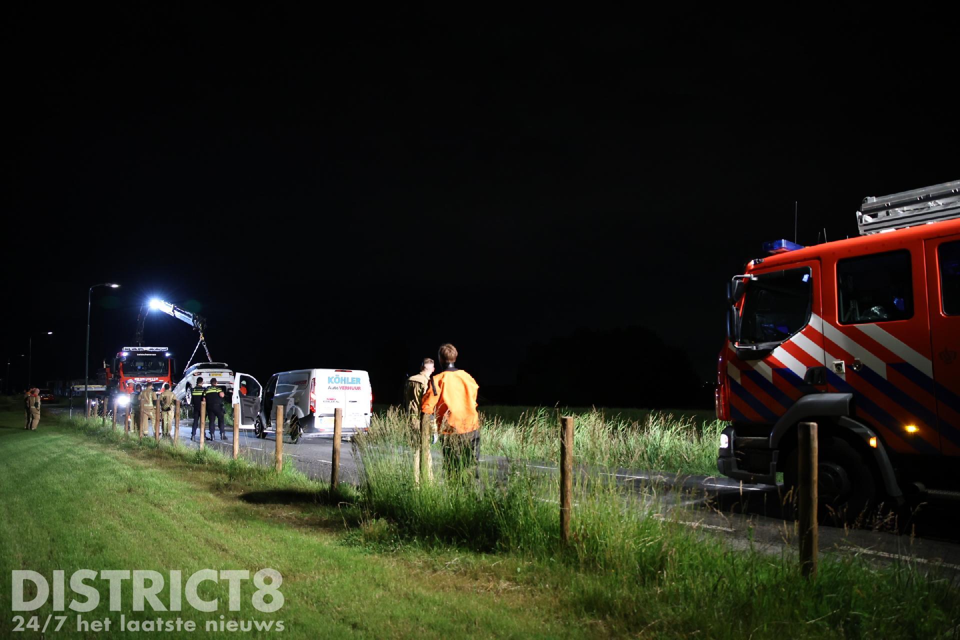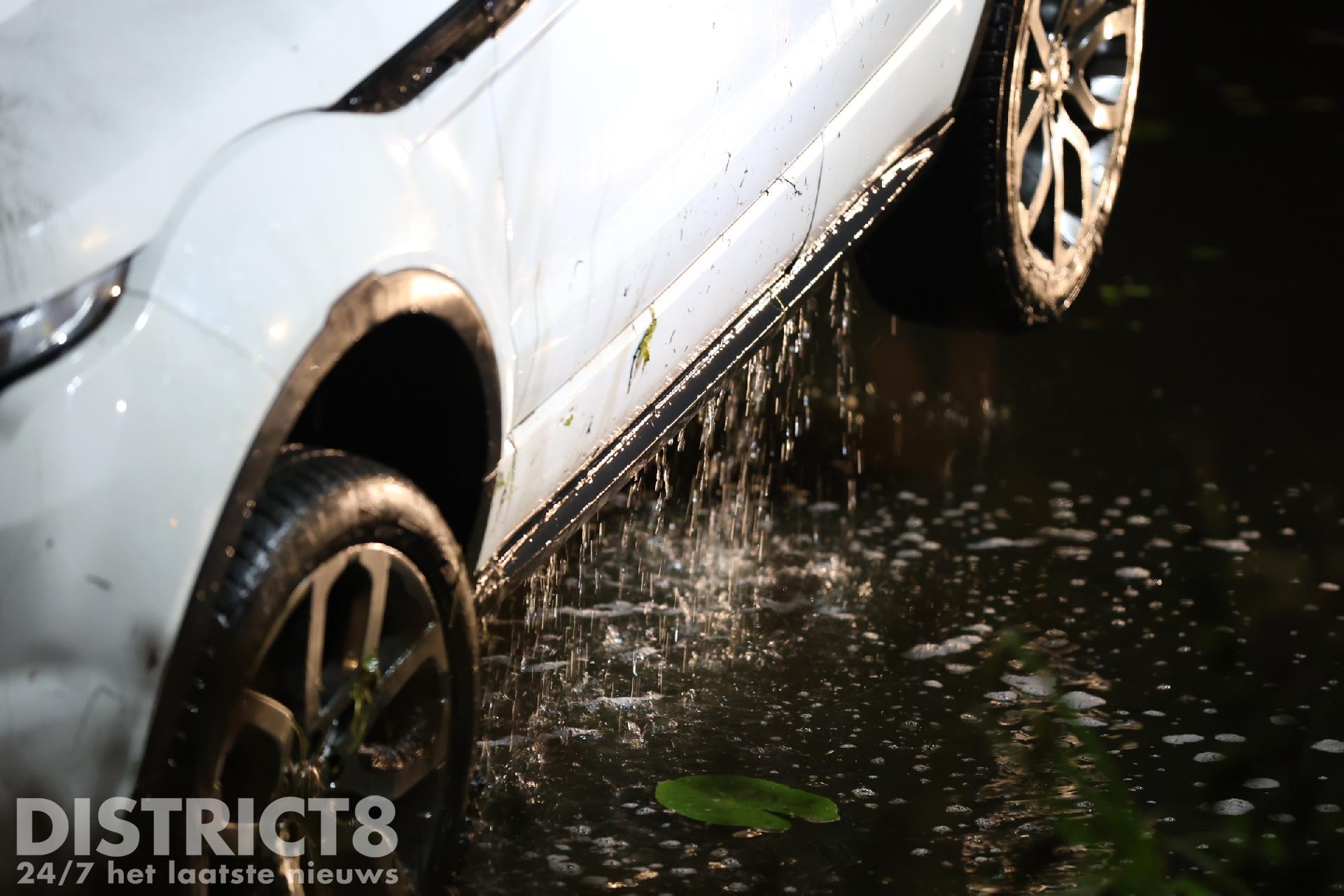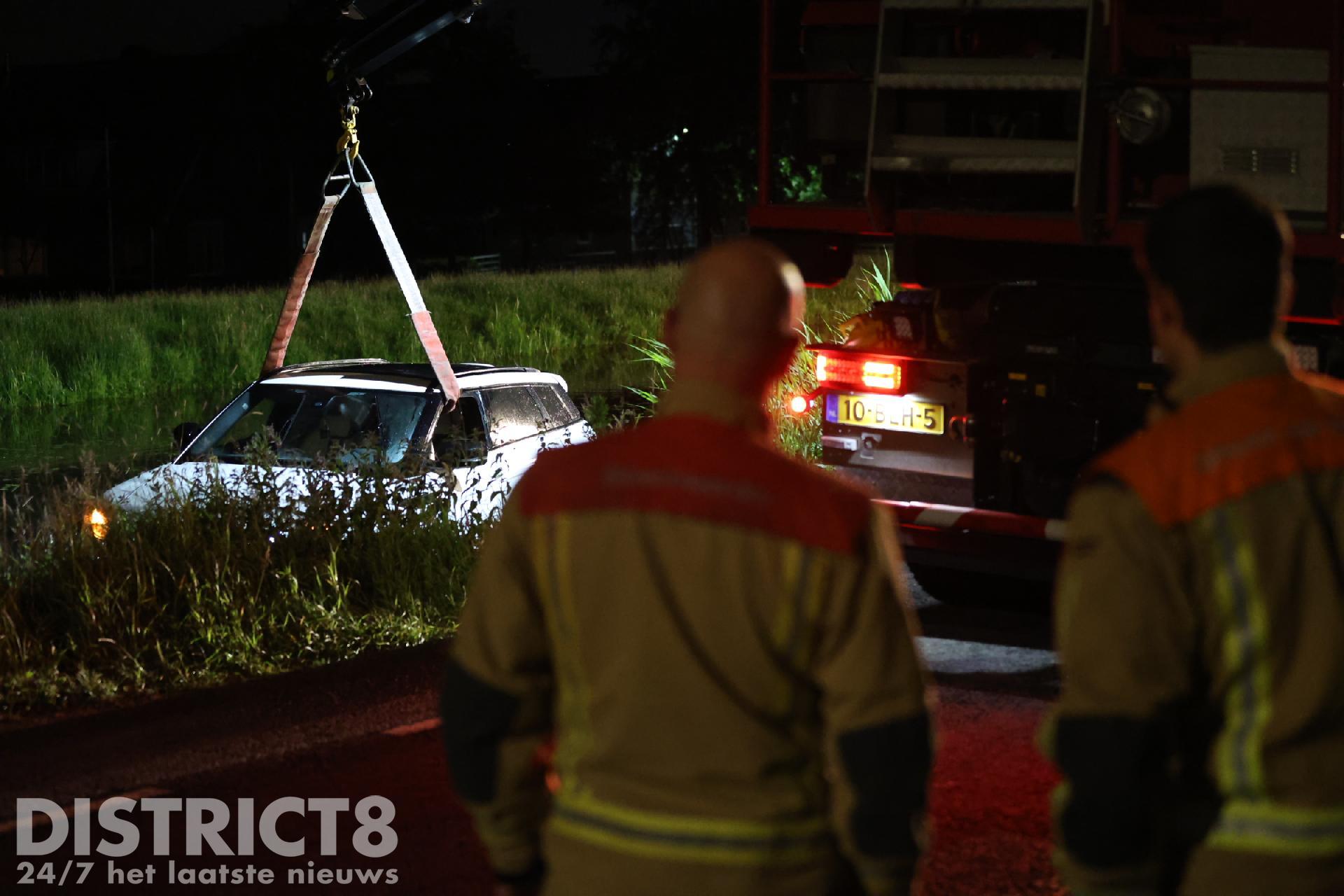 Uiteindelijk is met de kleine kraan van de brandweer de auto uit het water getild en op de kant gezet. Uit de wagen liepen honderden liters water. Een berger komt dan ook de auto afvoeren, deze is total-loss.
