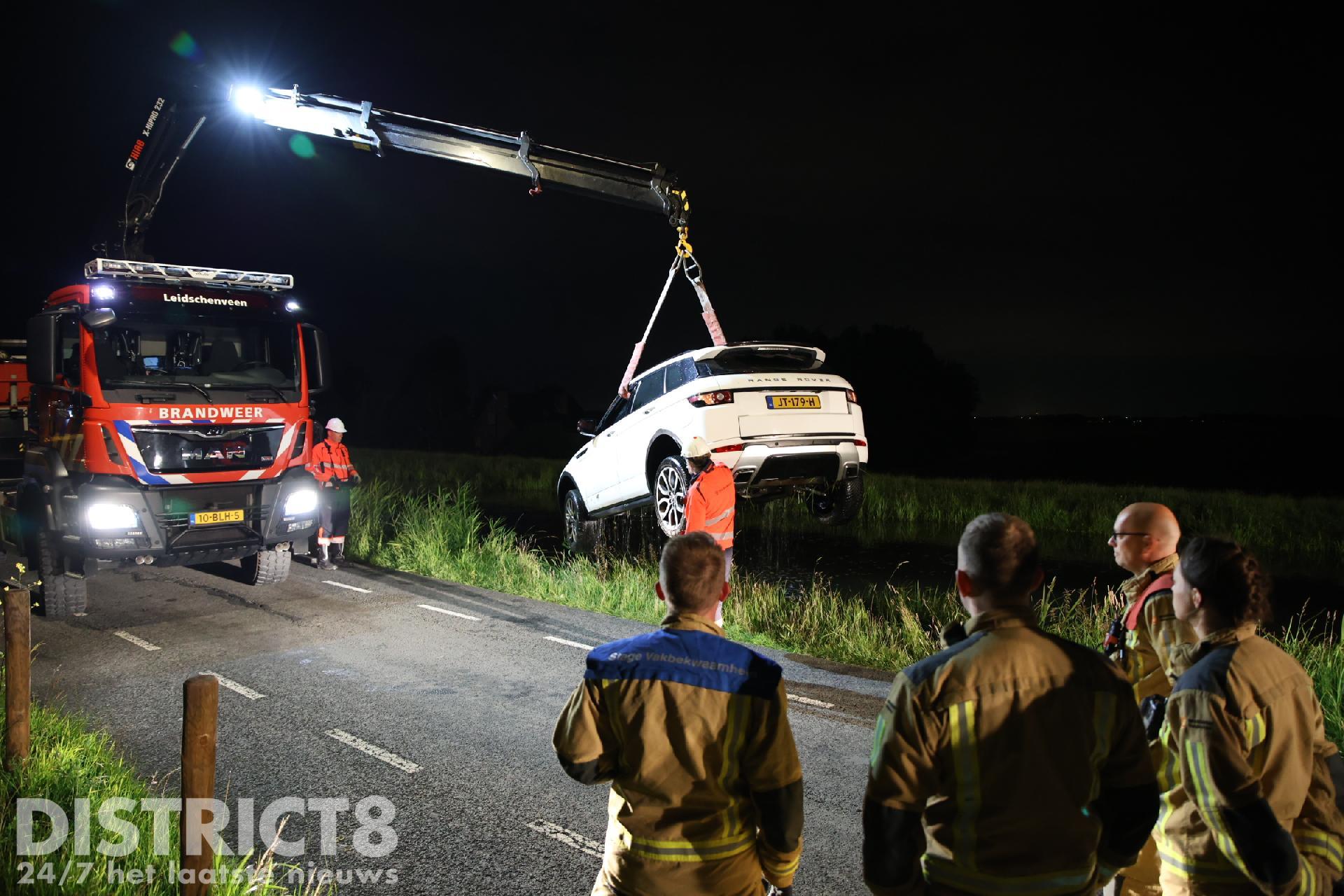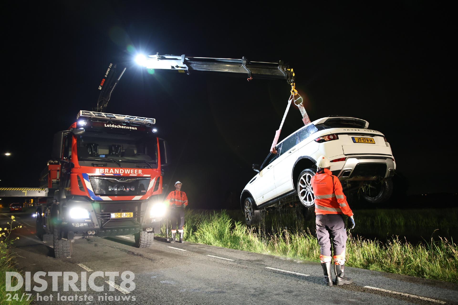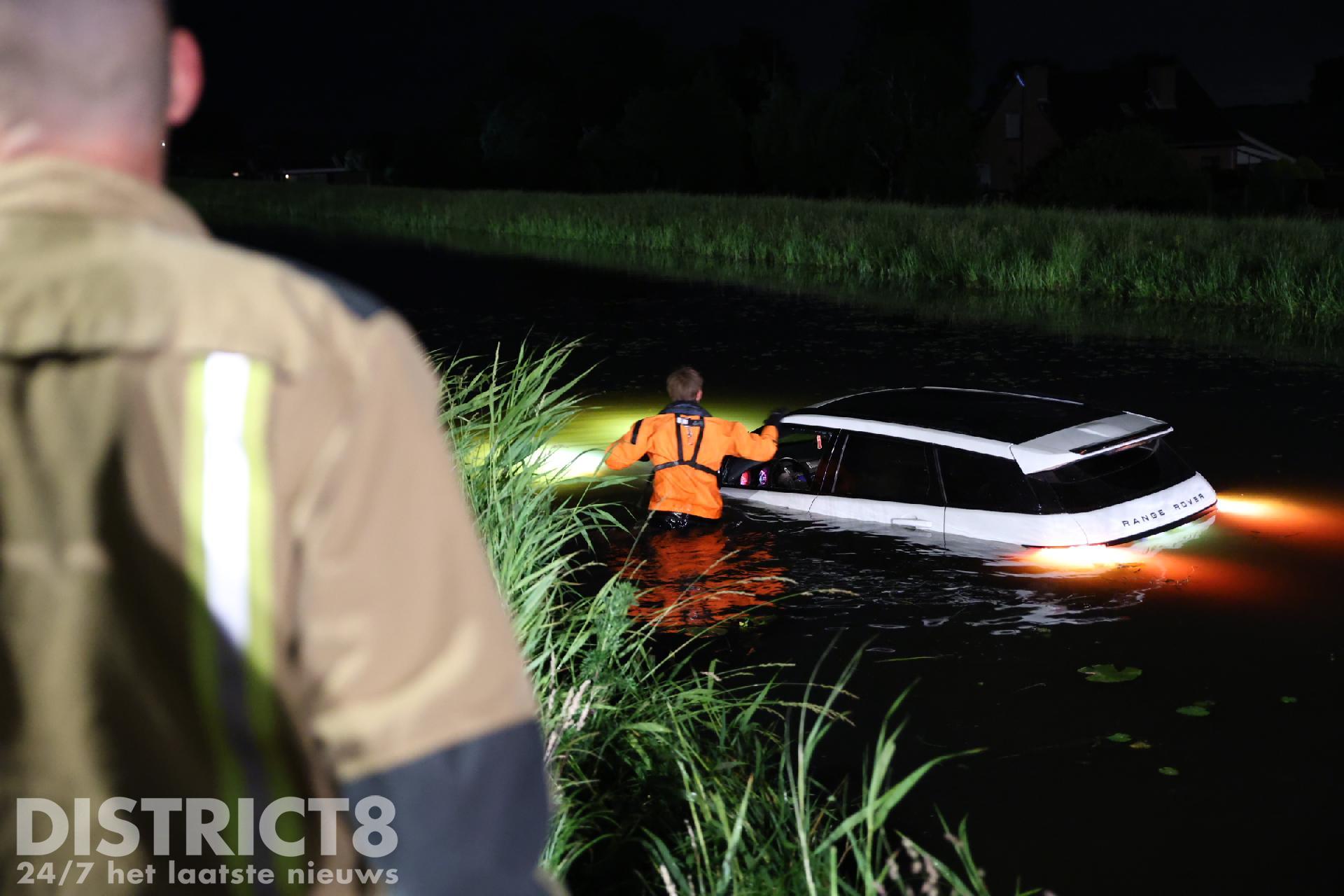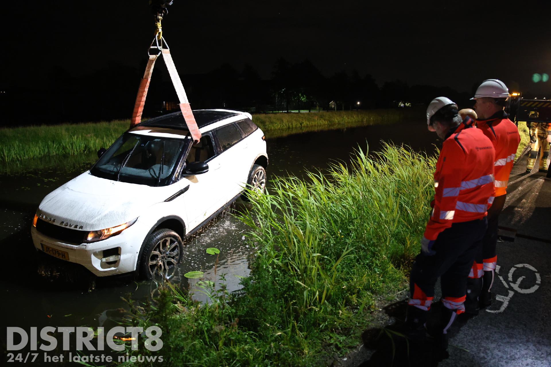 Uiteindelijk is met de kleine kraan van de brandweer de auto uit het water getild en op de kant gezet. Uit de wagen liepen honderden liters water. Een berger komt dan ook de auto afvoeren, deze is total-loss.
