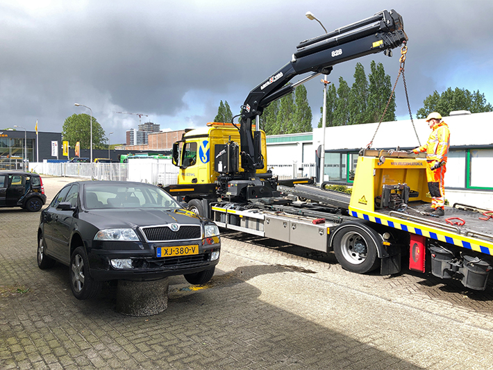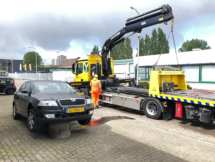 Delft – De bestuurder van een auto keek zaterdagmiddag 4 mei raar op toen deze met zijn voertuig op een betonblok stond.