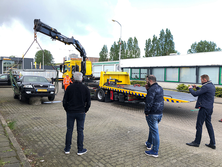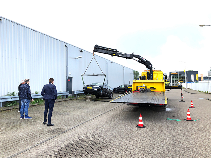 Een berger van bergingsbedrijf Vreugdenhil heeft het voertuig later van het blok afgehaald. De schade aan het voertuig is flink. Hoe de auto op het blok tot stilstand kwam is niet bekend.