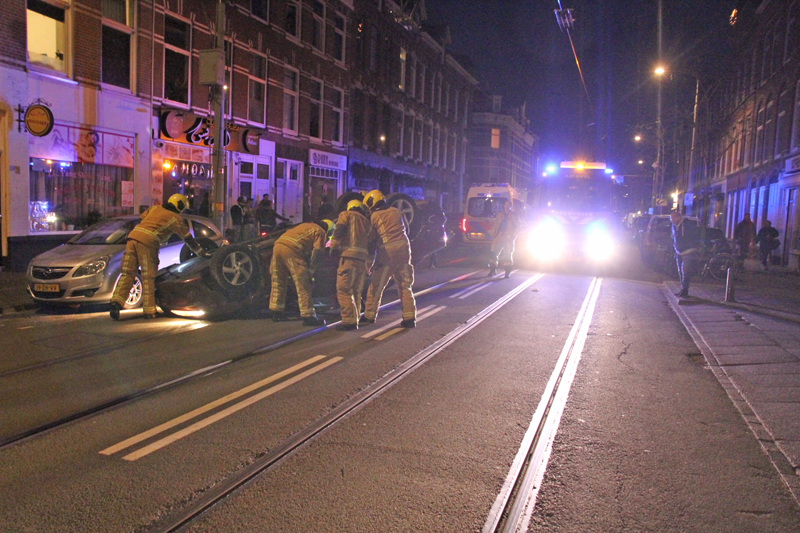 Auto belandt op z’n dak bij ongeval Beeklaan Den Haag