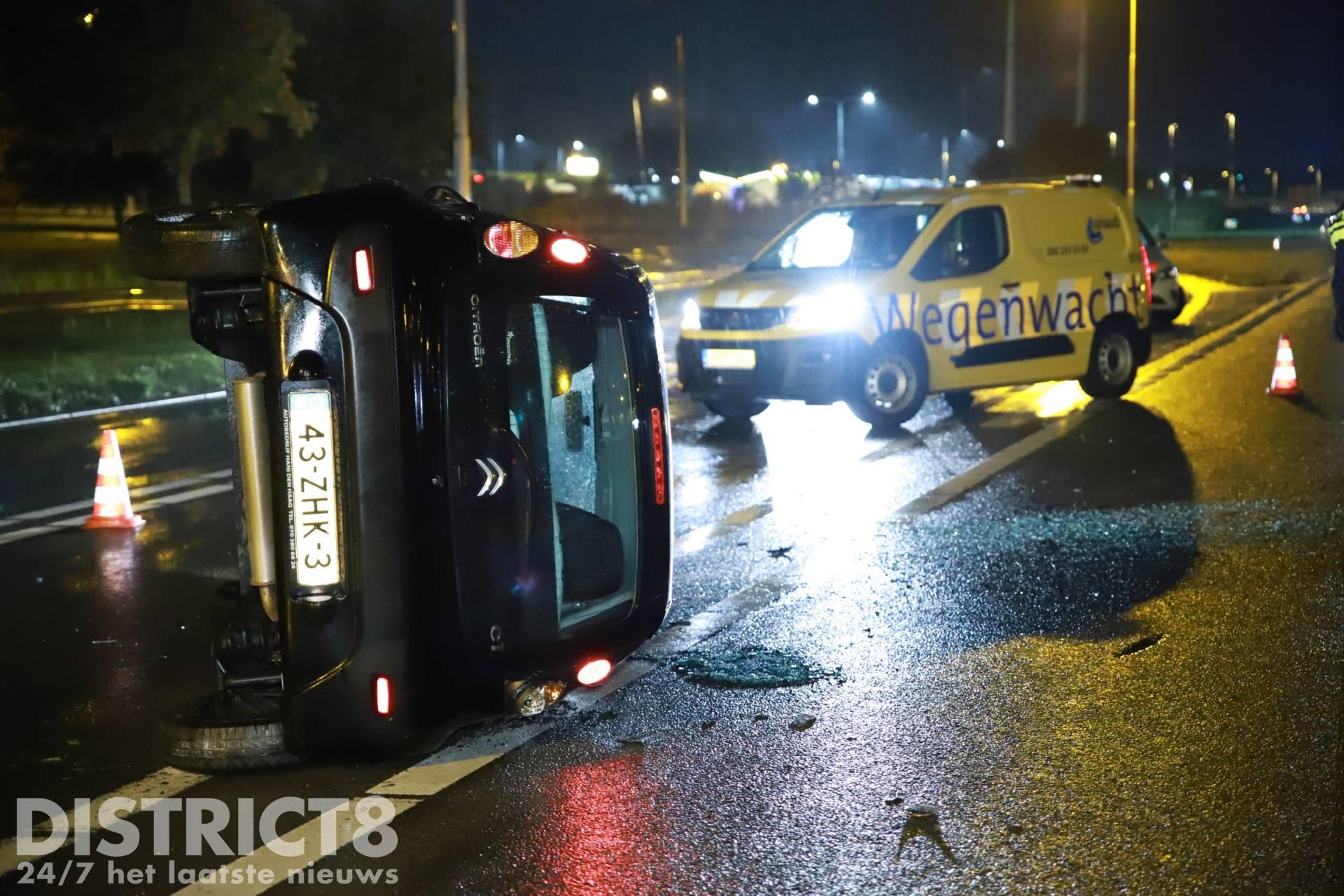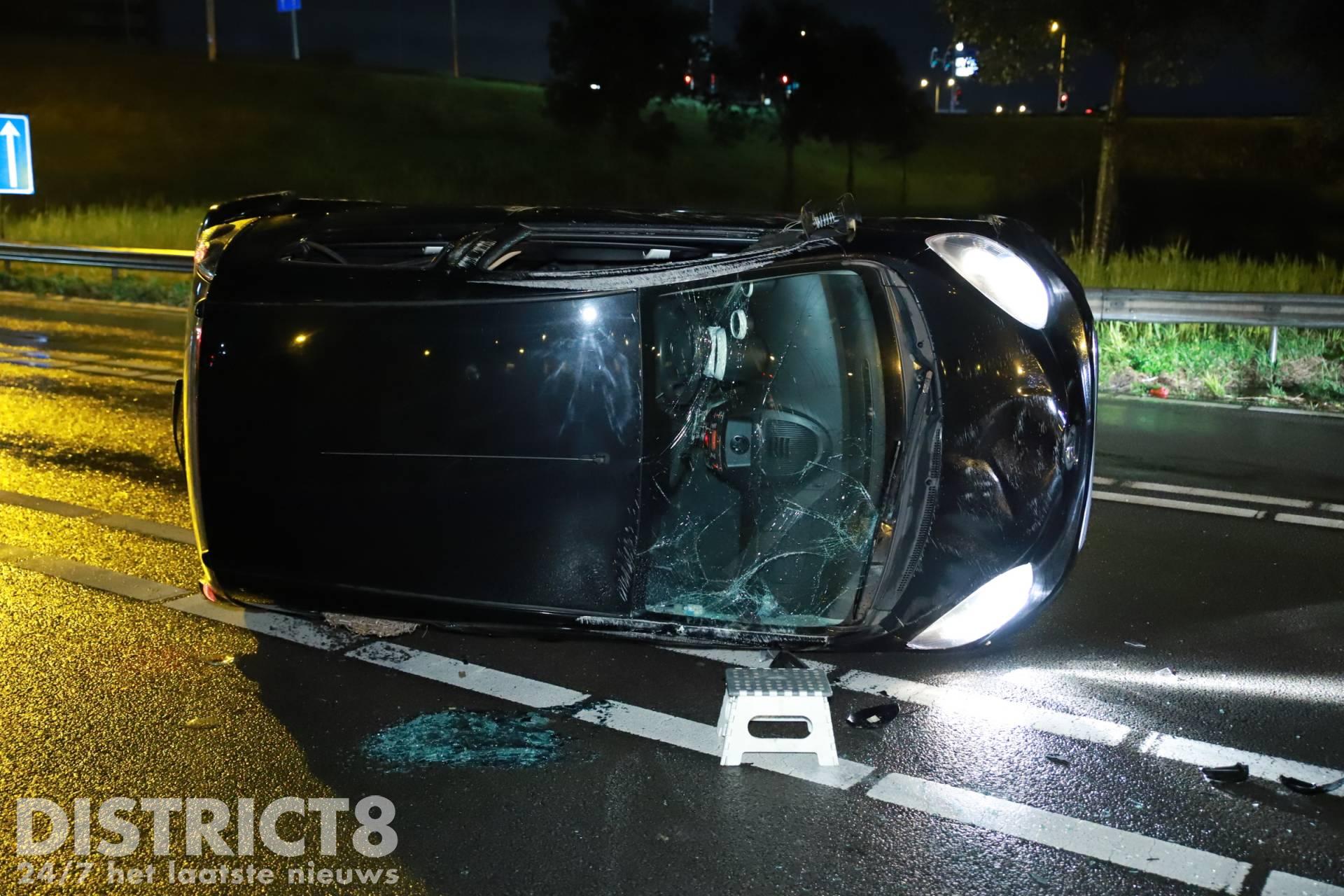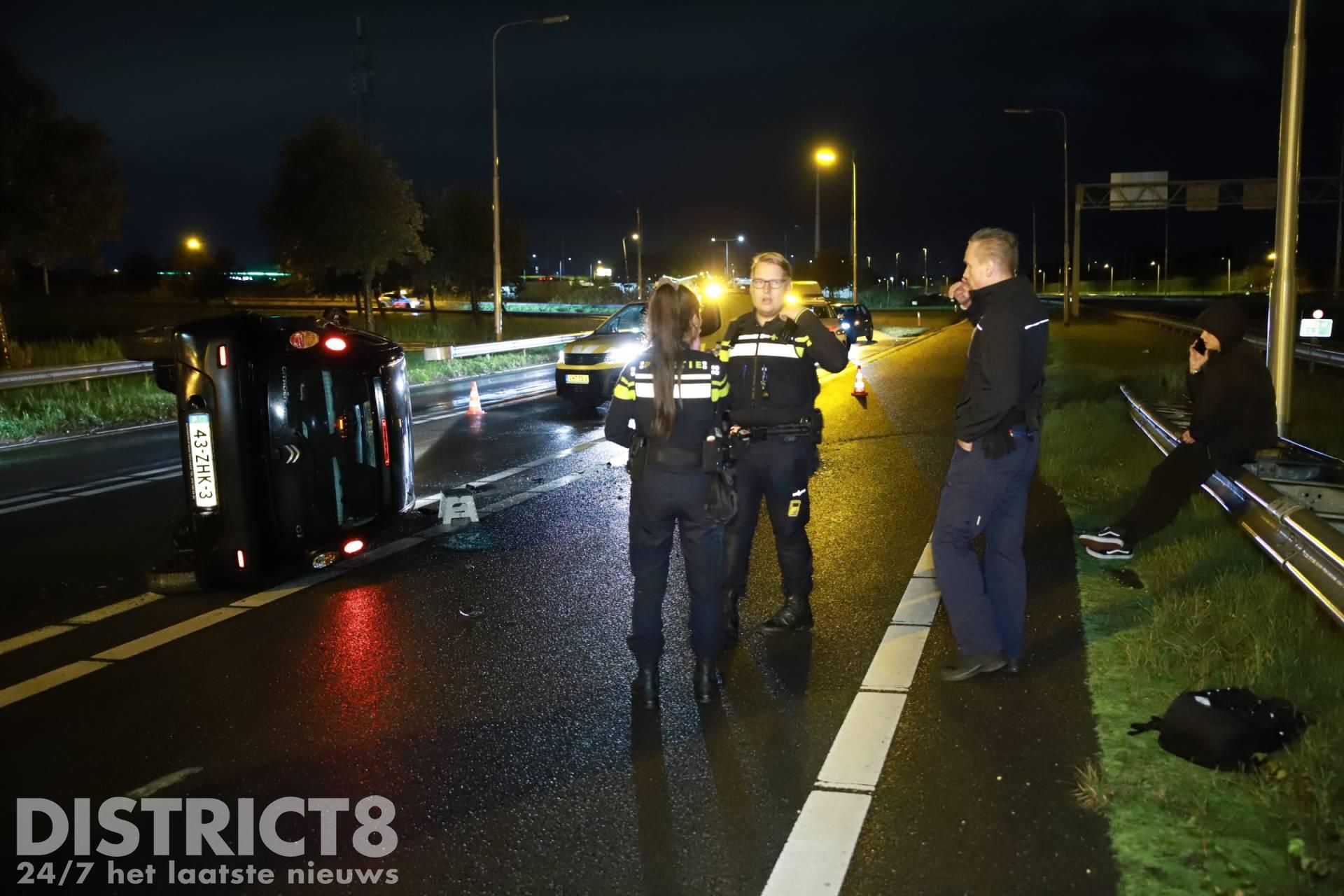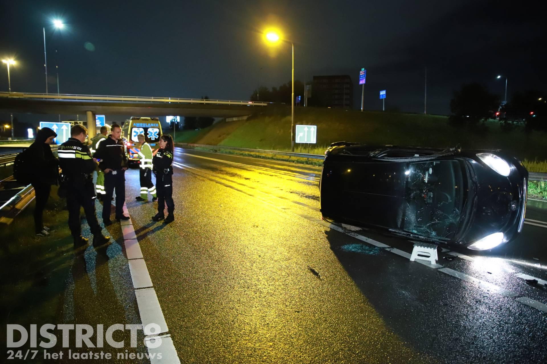 Den Hoorn – Op de oprit vanaf de Wippolderlaan richting de A4 is dinsdagavond 27 september een auto op z’n kant terecht gekomen. Dit gebeurde in de richting van Amsterdam.