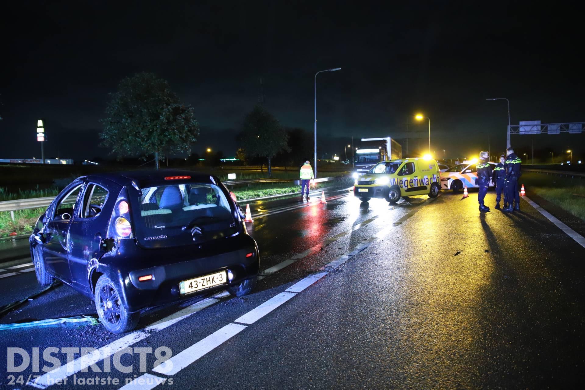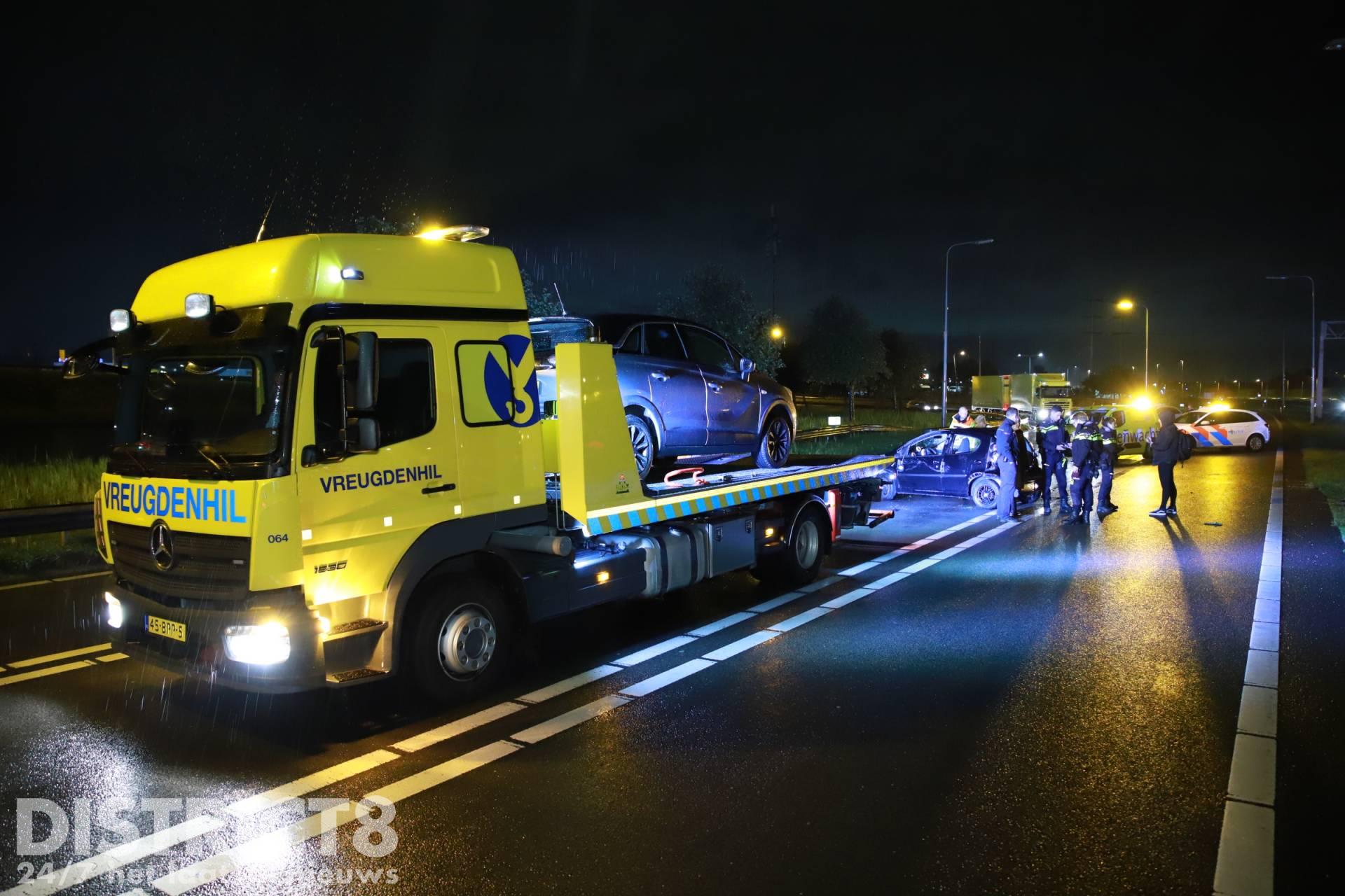 De oprit naar de snelweg werd deels afgesloten. De inzittenden zijn in de ambulance onderzocht. Beiden raakten lichtgewond en hoefden niet mee naar het ziekenhuis.