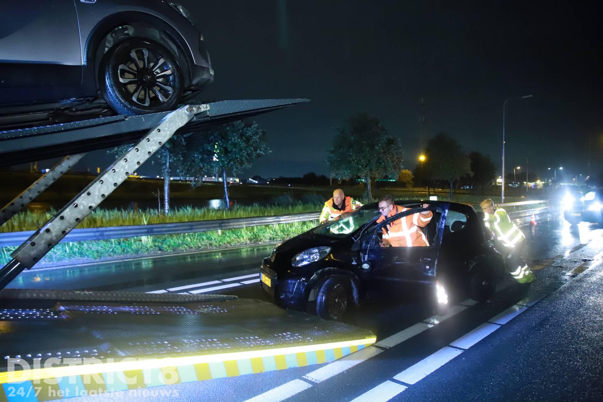 De auto is door een berger weer op vier wielen gezet en daarna afgevoerd.