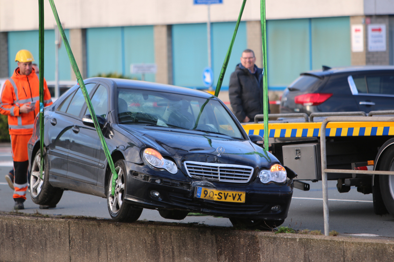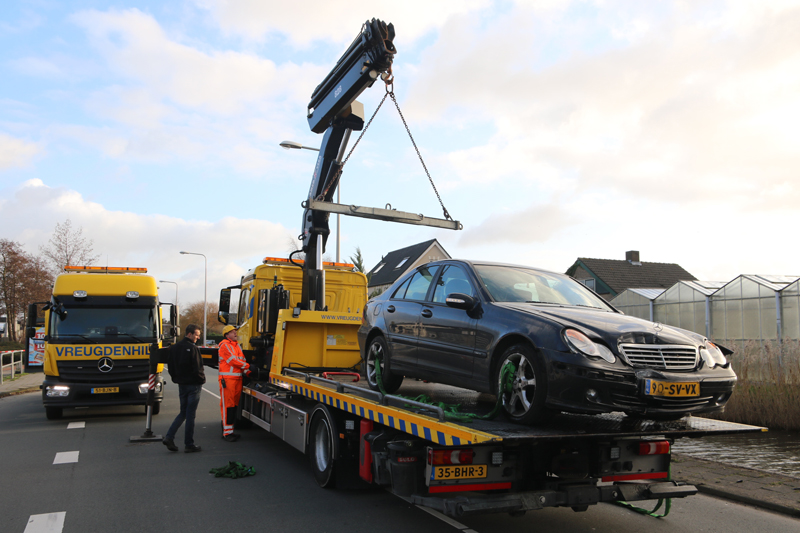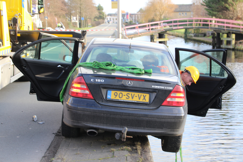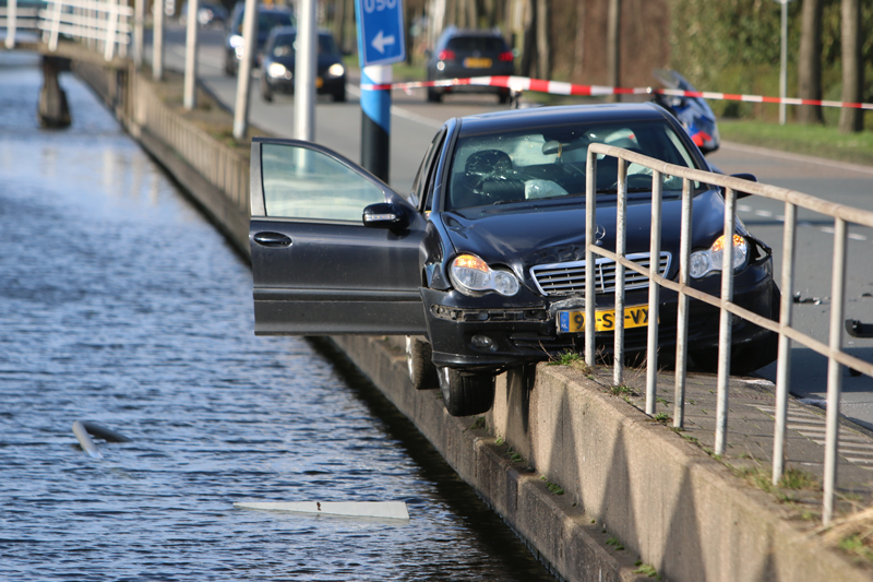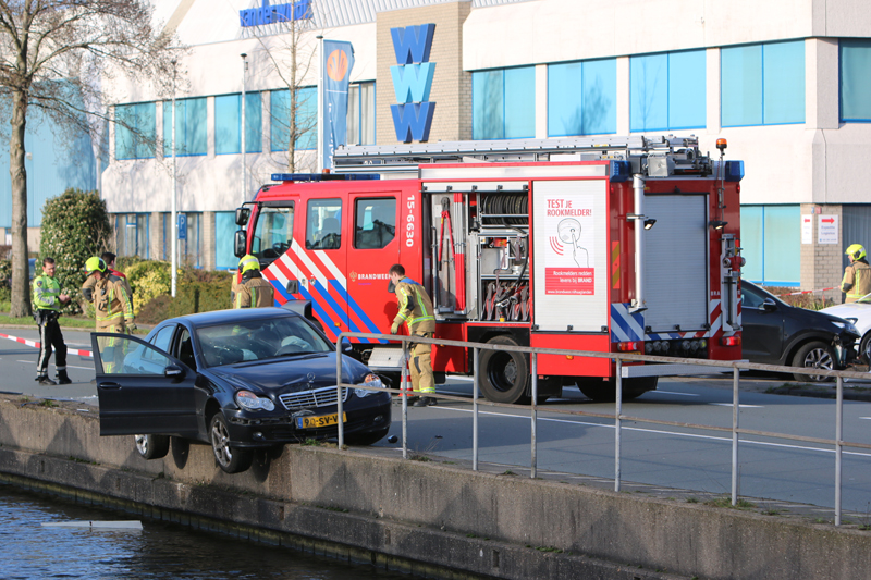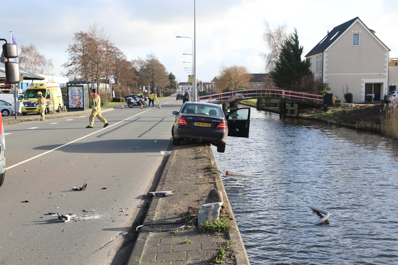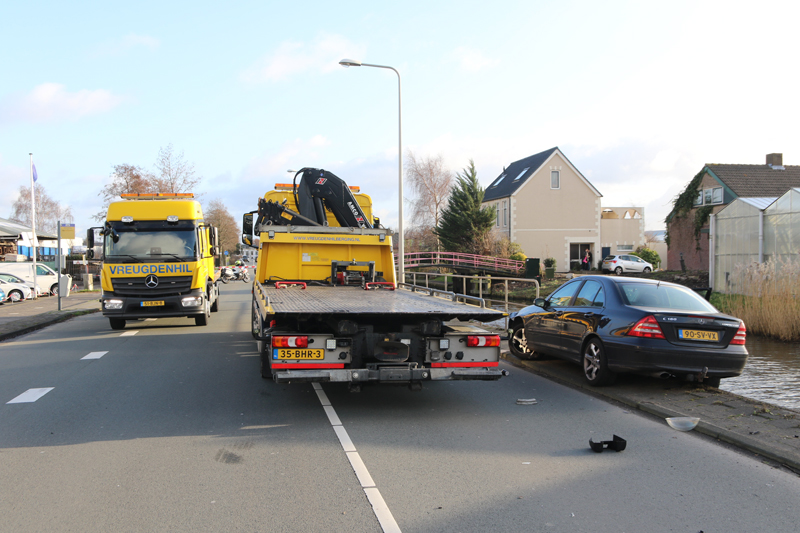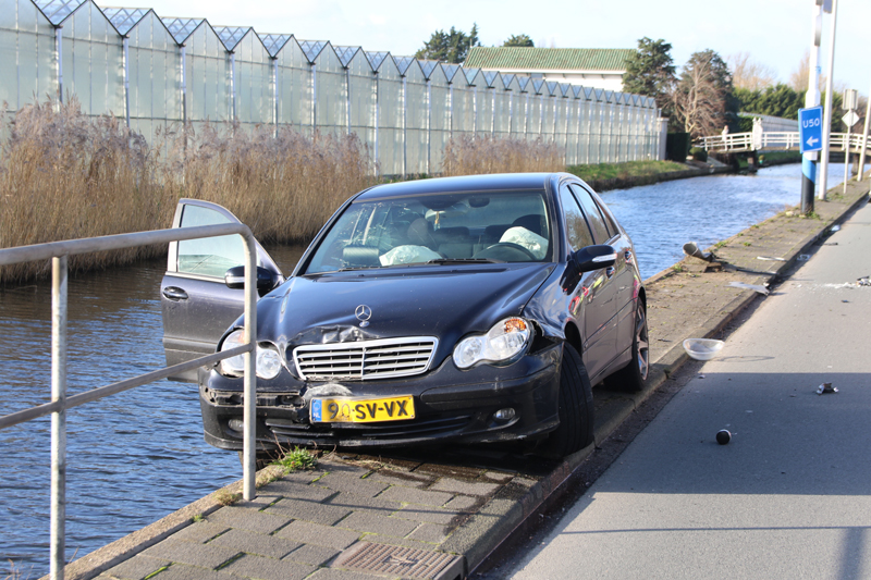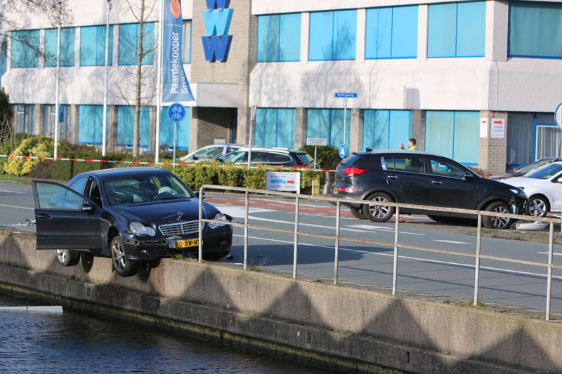 Beide voertuigen kwamen op de kruising met elkaar in botsing, eén van de voertuigen raakte door de aanrijding bijna te water en bleef op de rand met de vaart hangen.