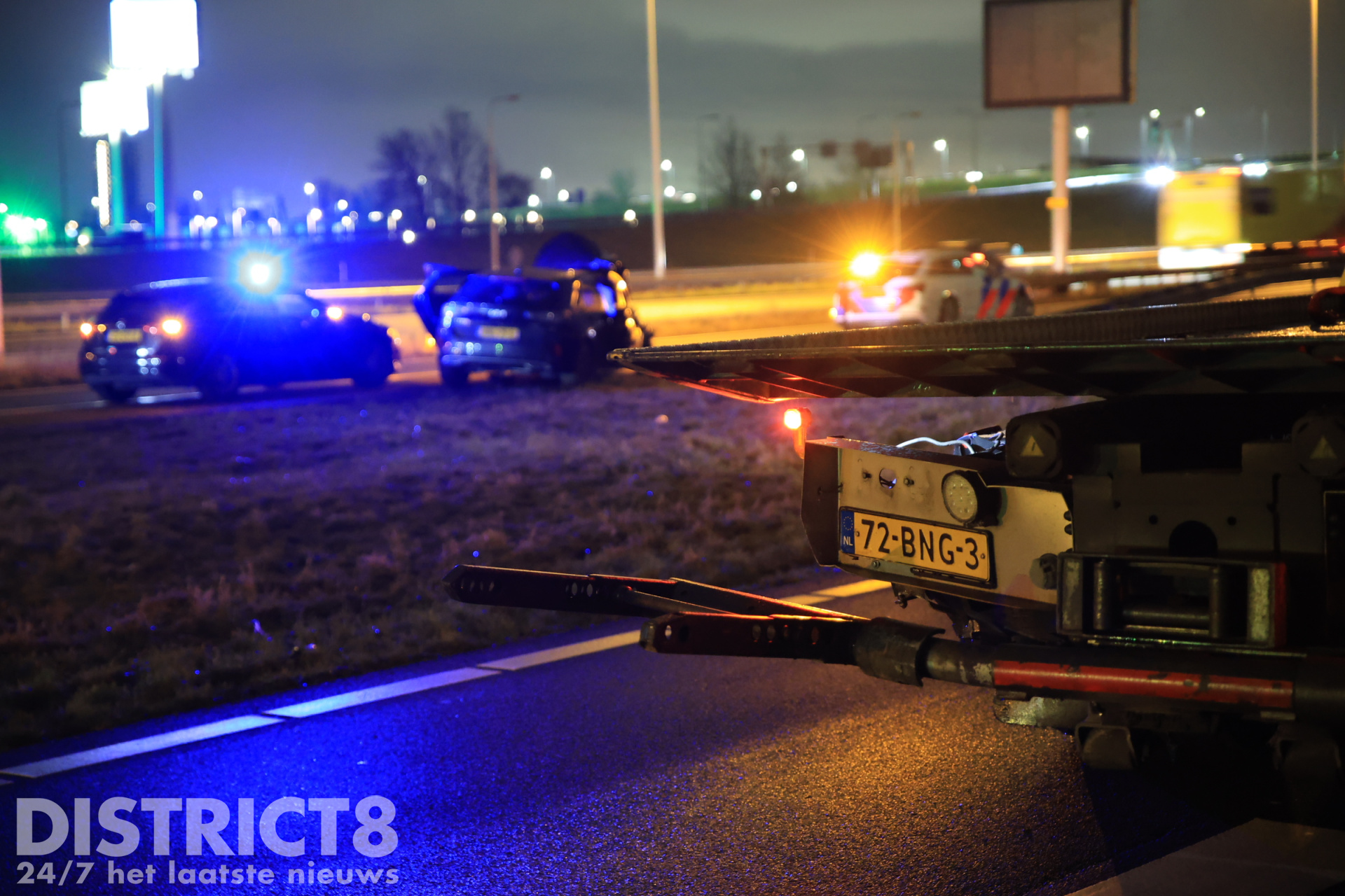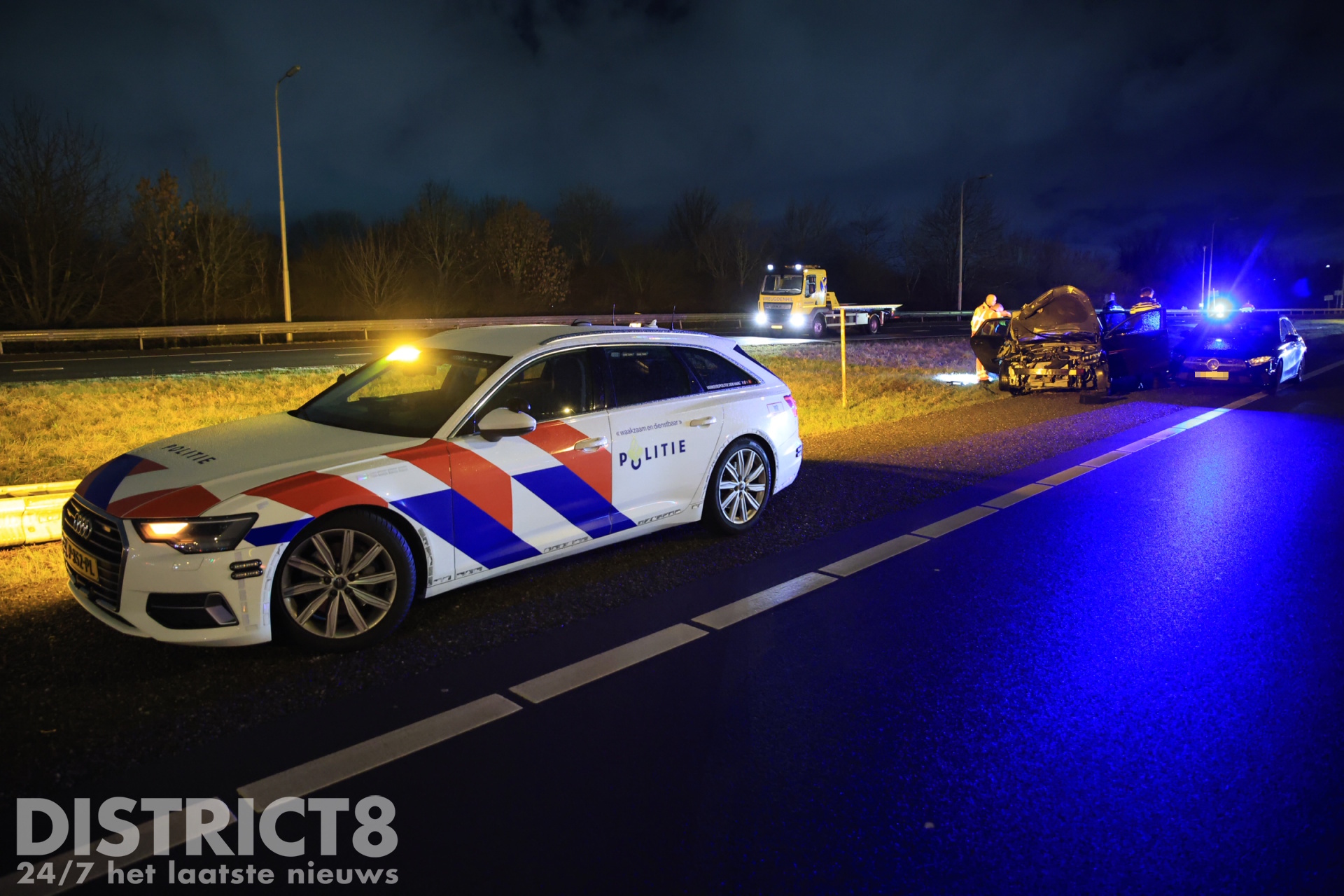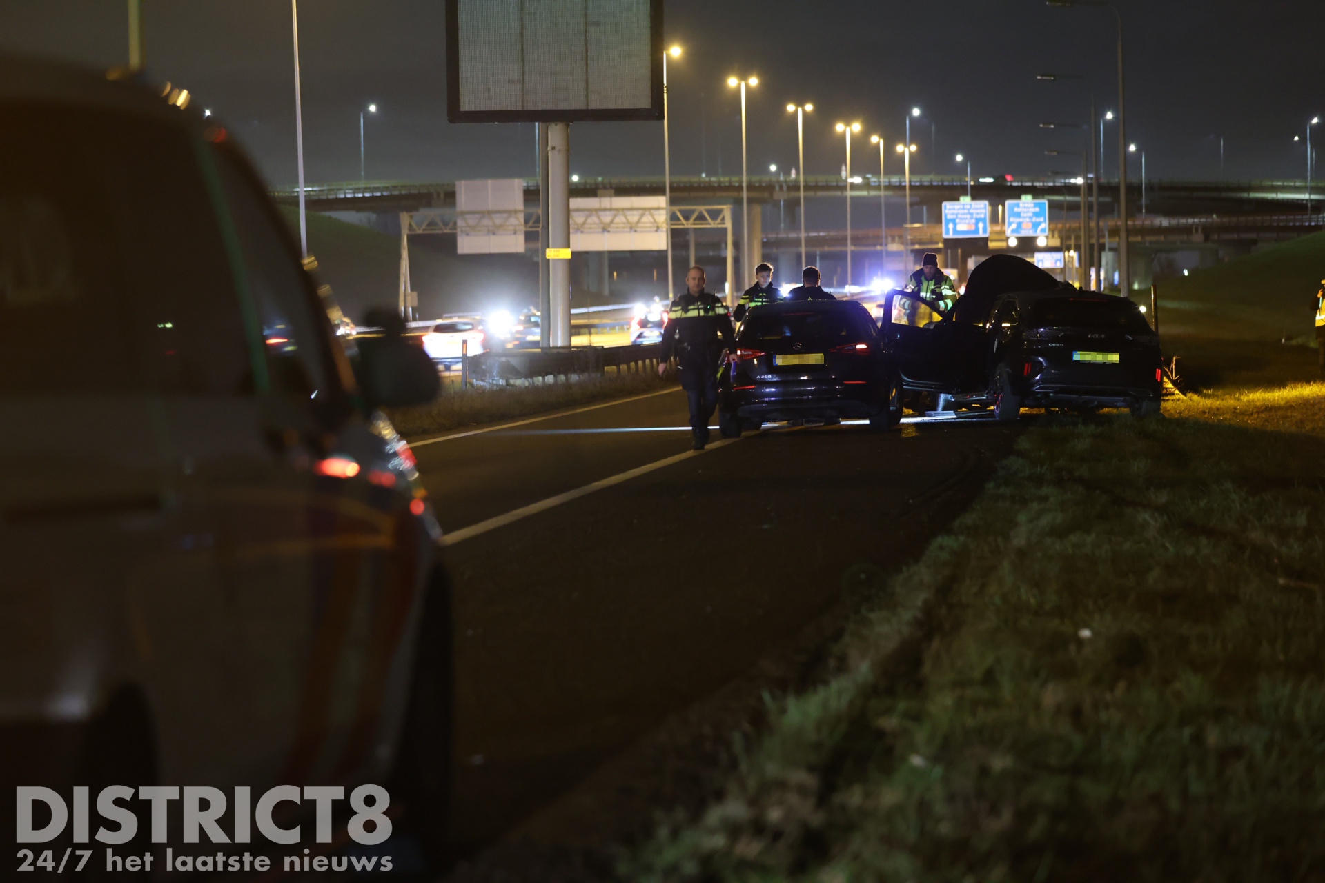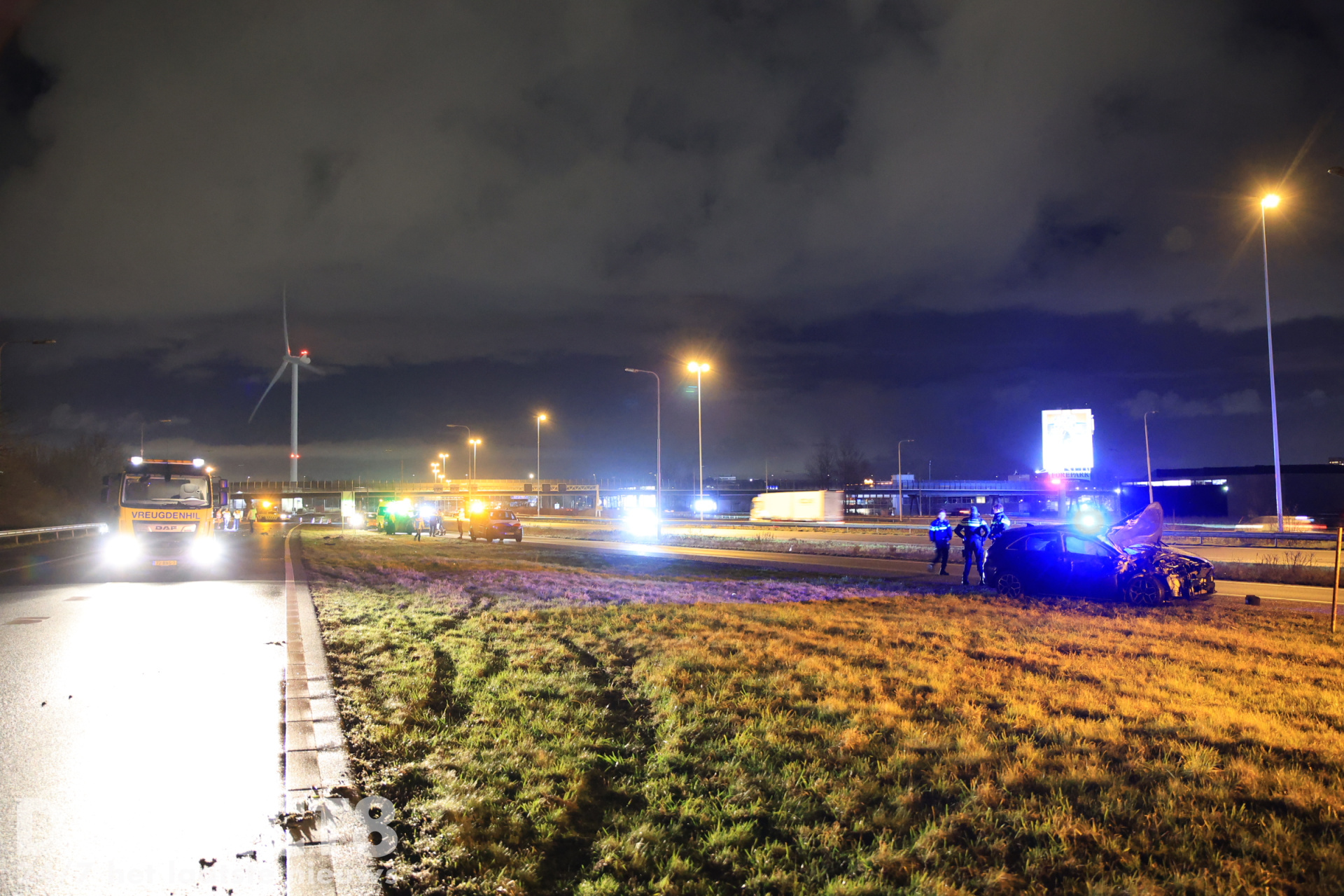 Een berger van bergingsbedrijf Vreugdenhil zag de situatie ontstaan en positioneerde zijn bergingswagen tussen het pechgeval en de naderende auto om de betrokkenen te beschermen. De achtervolgde auto botste vervolgens achterop de bergingswagen en kwam daarna tot stilstand op de aansluiting richting de A4.