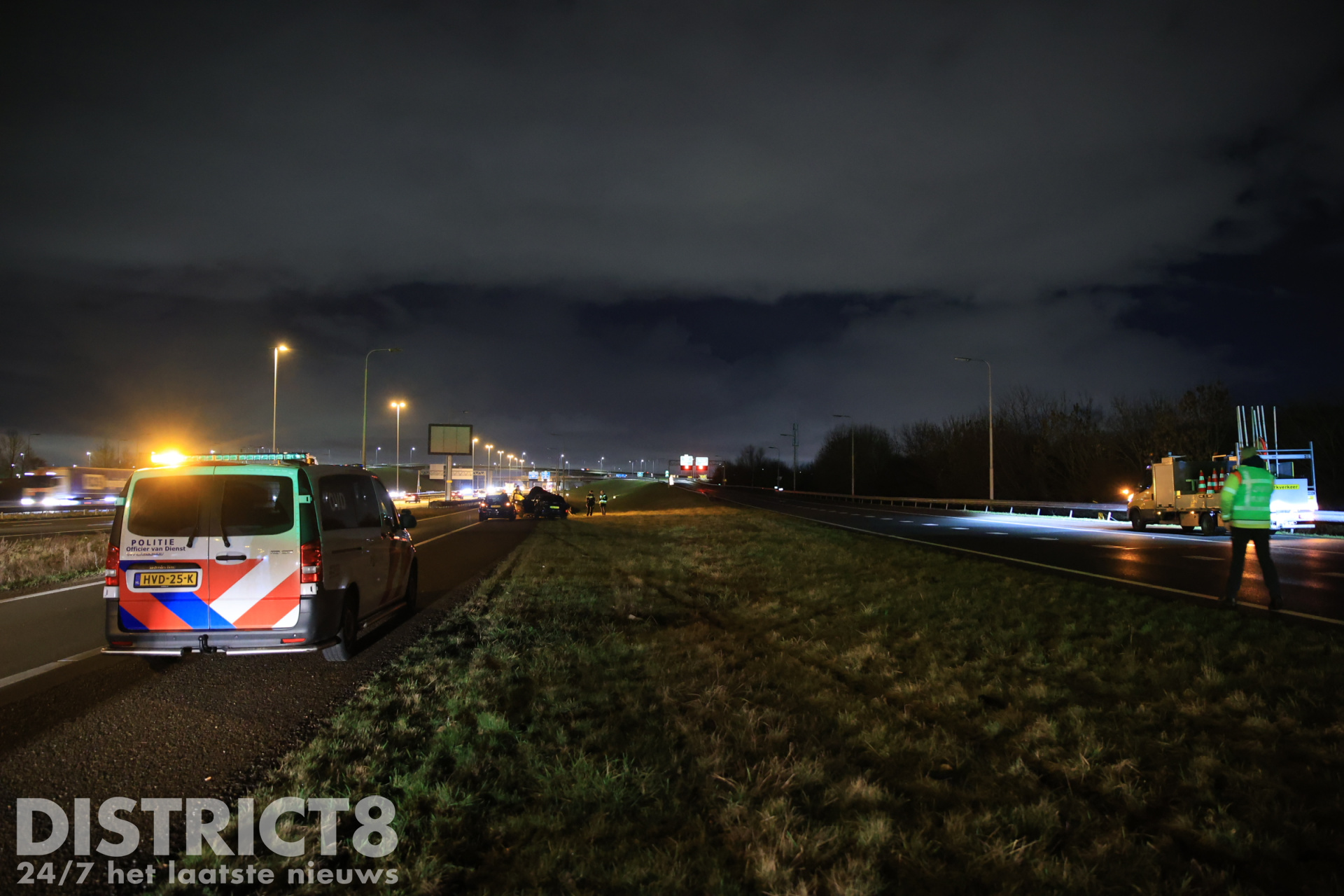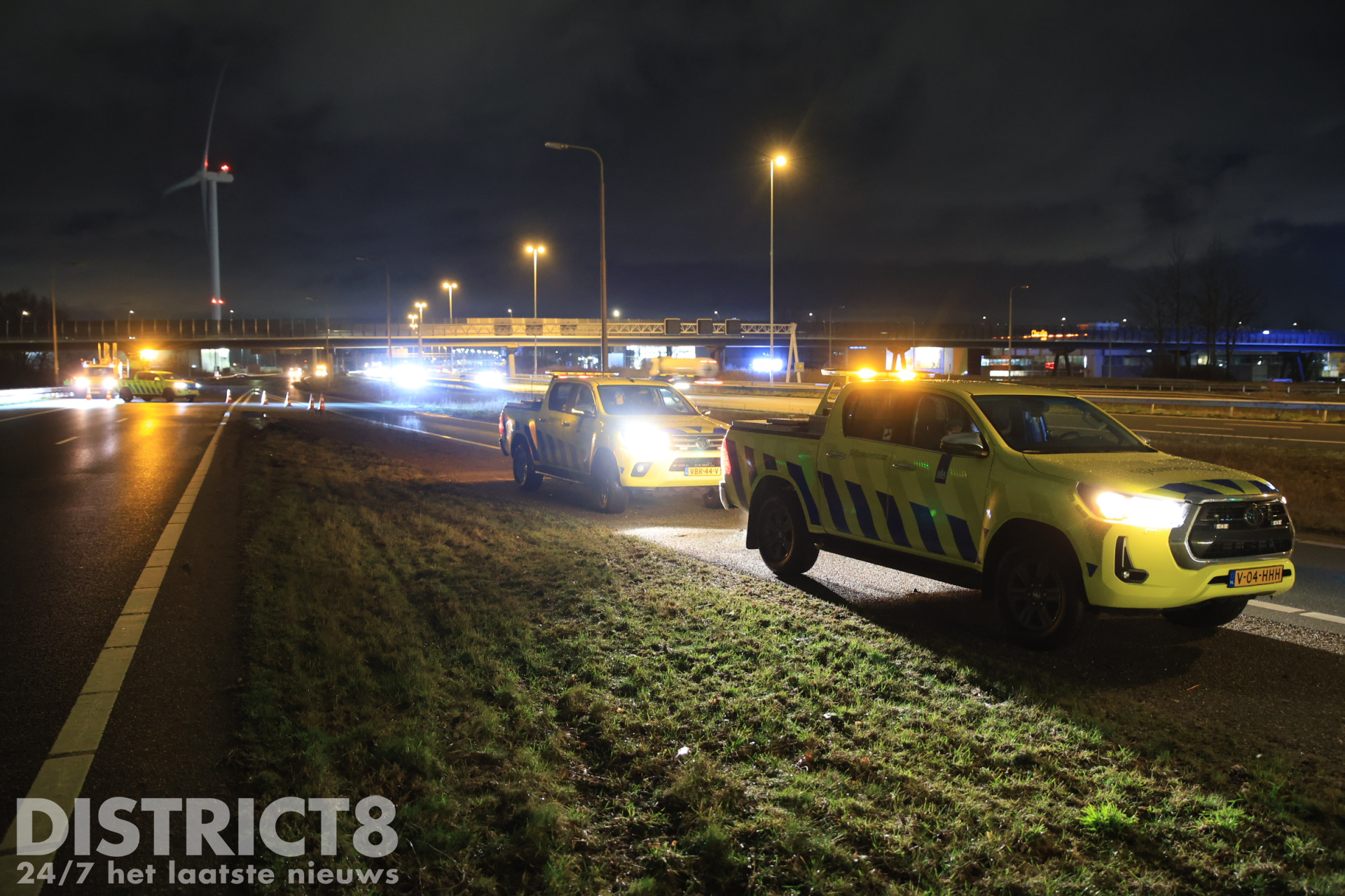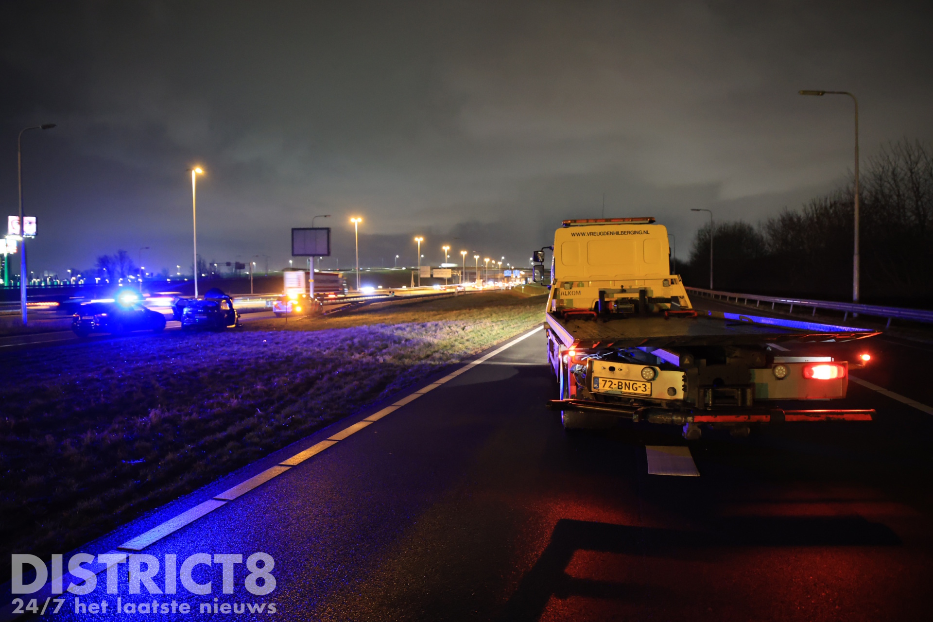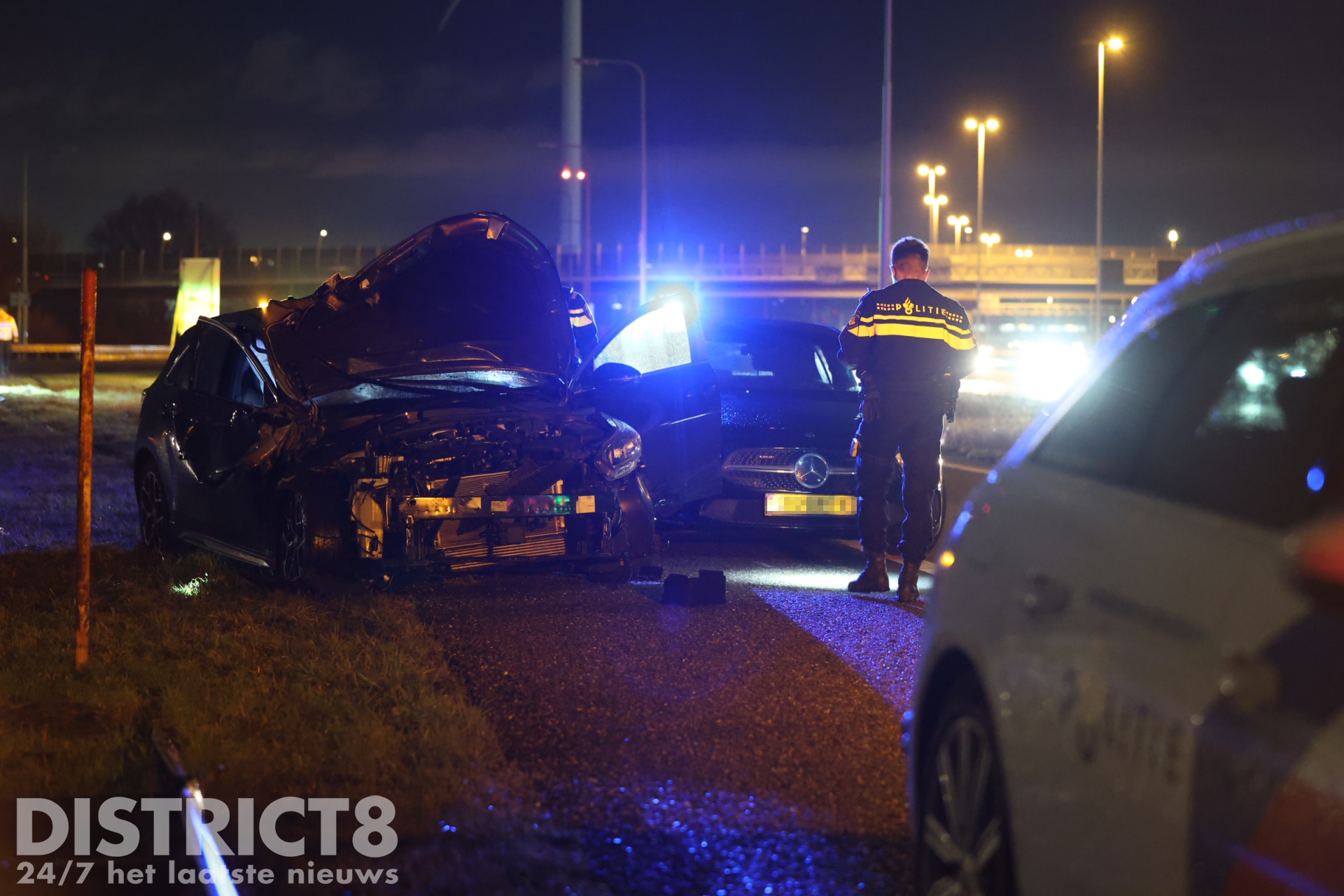 Een berger van bergingsbedrijf Vreugdenhil zag de situatie ontstaan en positioneerde zijn bergingswagen tussen het pechgeval en de naderende auto om de betrokkenen te beschermen. De achtervolgde auto botste vervolgens achterop de bergingswagen en kwam daarna tot stilstand op de aansluiting richting de A4.