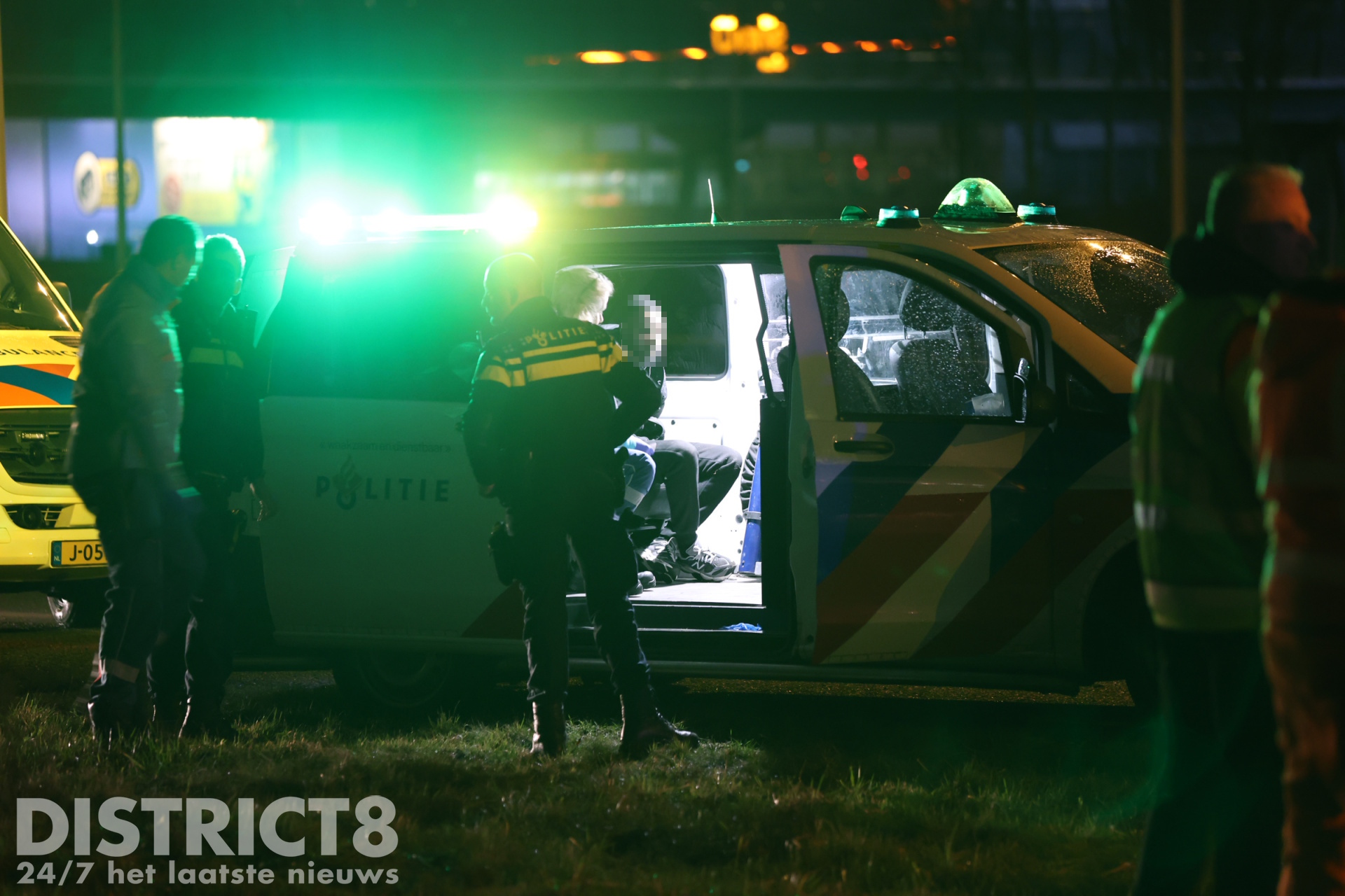 De politie heeft de bestuurder aangehouden. De verdachte raakte gewond en wordt door de ambulancedienst nagekeken. Hij kon lopend, maar wel geboeid, de ambulance in lopen. Hij is kort hierna zonder spoed naar het ziekenhuis vervoerd. De politie is meegereden.