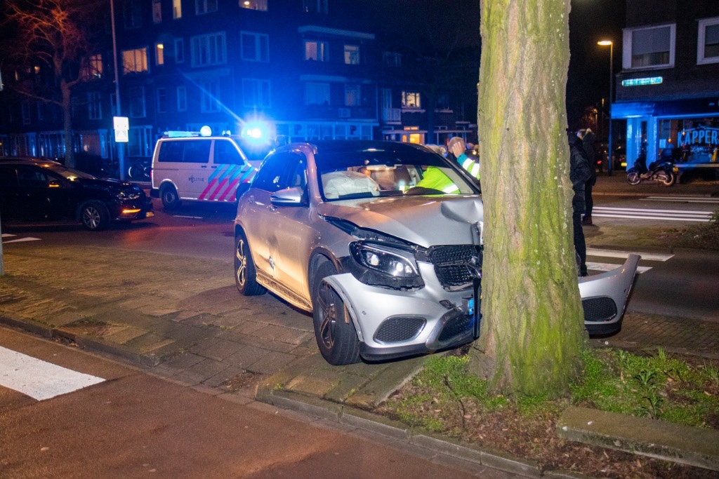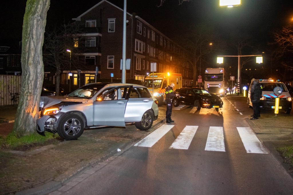 Schiedam – Na een botsing tussen twee auto’s woensdagavond op de Burgemeester Knappertlaan is een van de auto’s daarna tegen een boom tot stilstand gekomen.