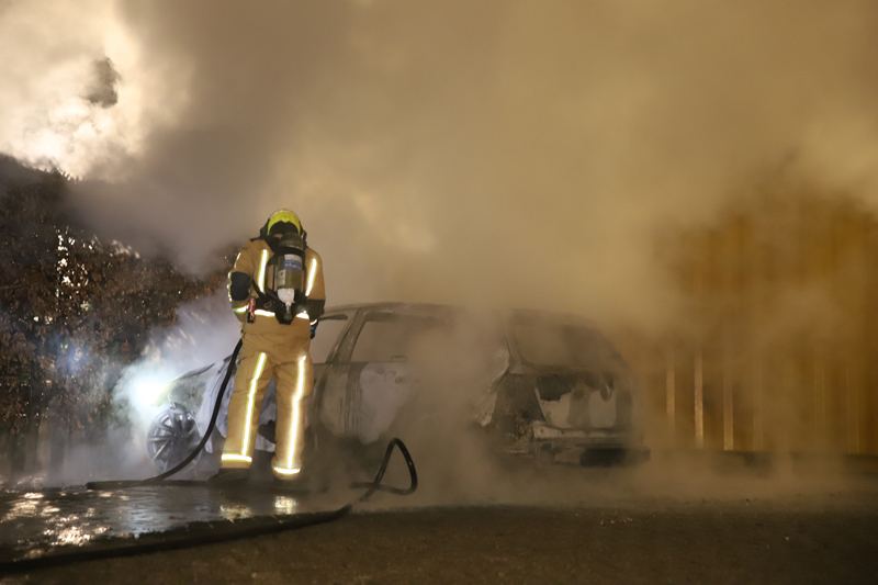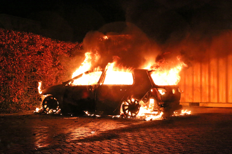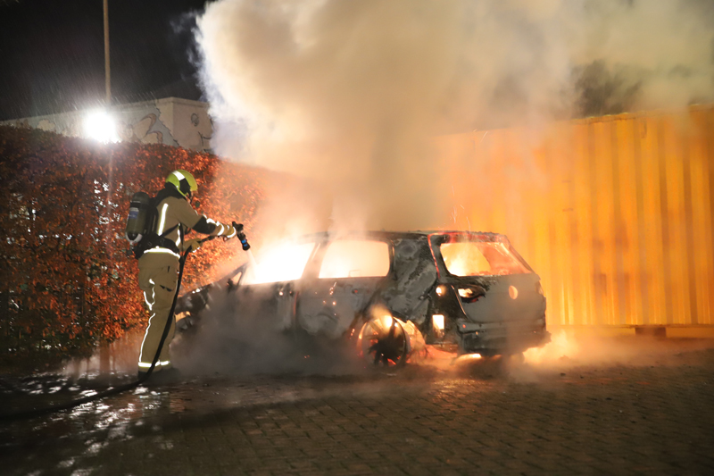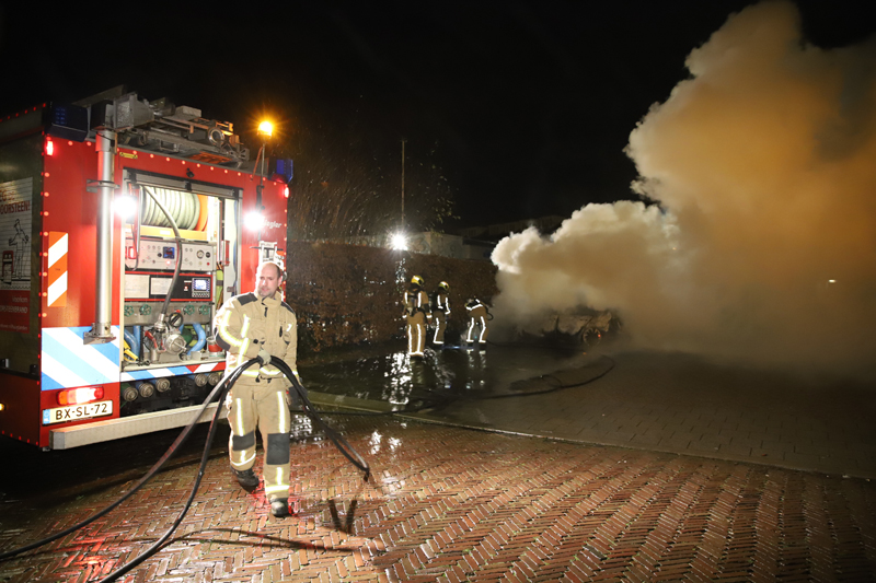 Ondanks de inzet van de brandweer bleek er van de auto weinig over.