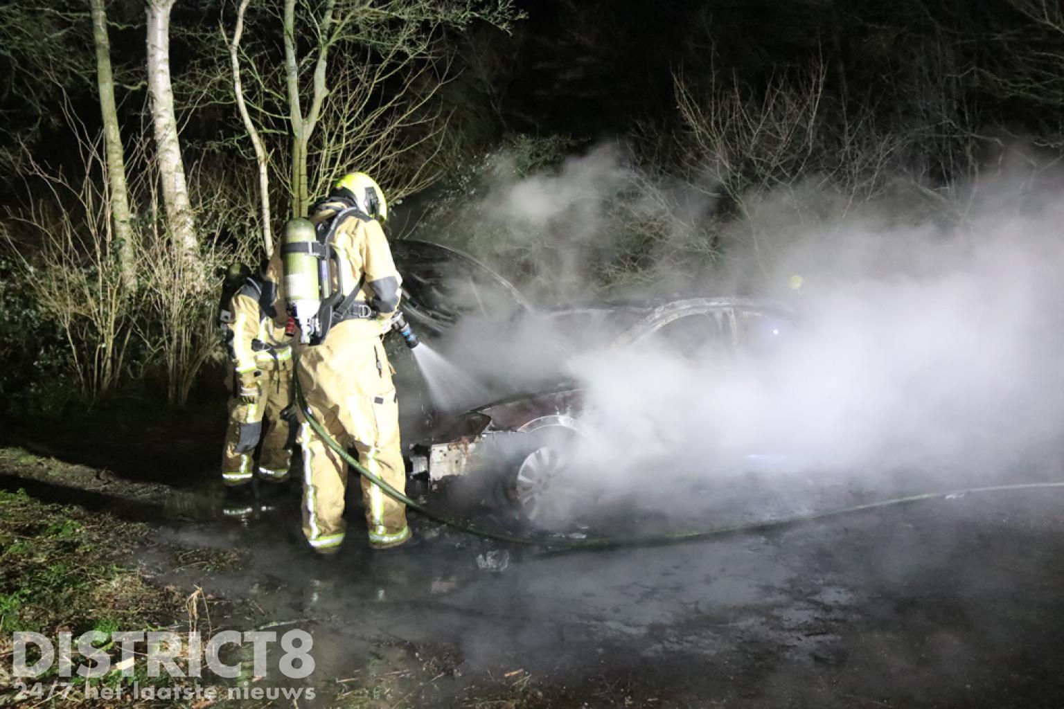 De personenauto stond bij aankomst al volledig in brand. Het vuur was gelukkig snel onder controle, waarna er nog enige tijd is nageblust. De politie heeft in de bossages onderzoek gedaan, dit omdat er een enorme benzinelucht hangt op de parkeerplaats.