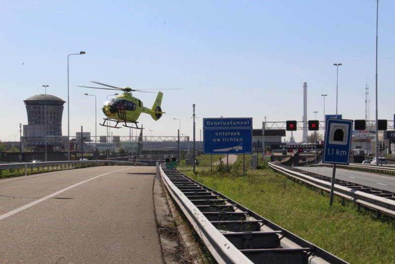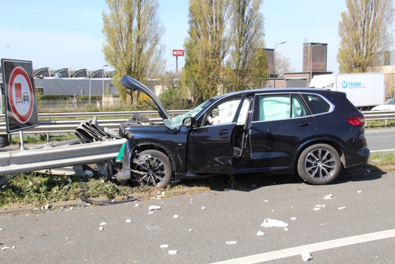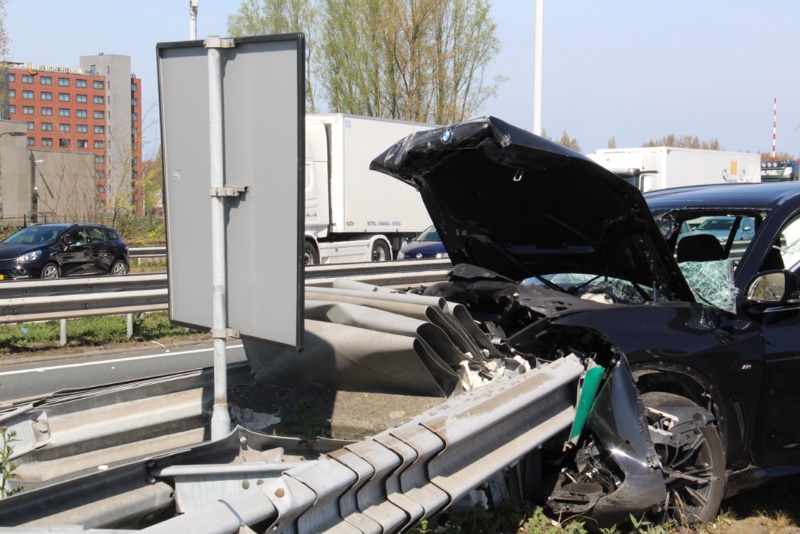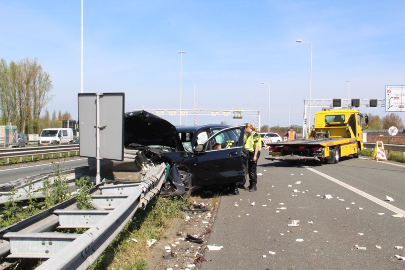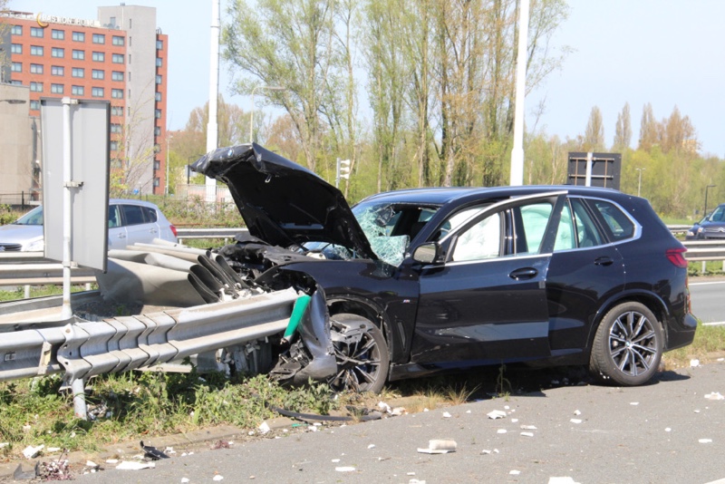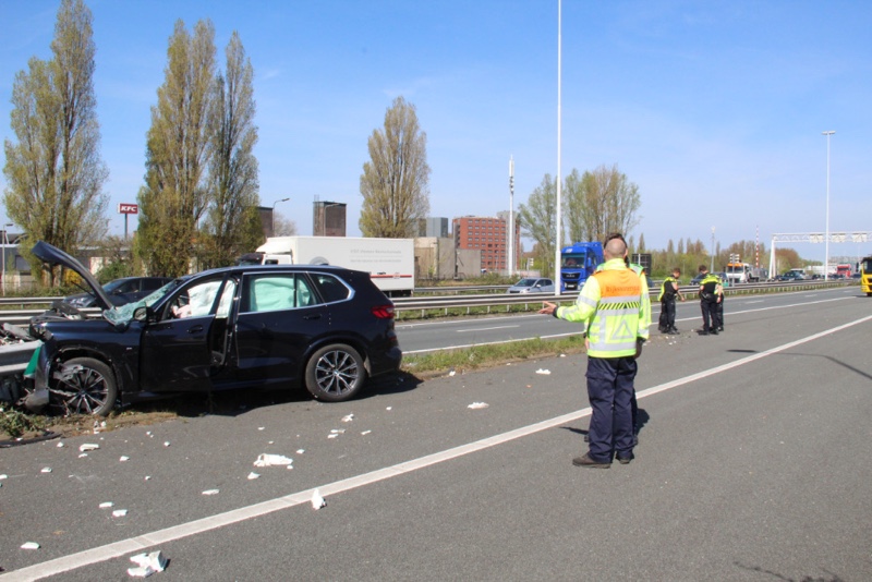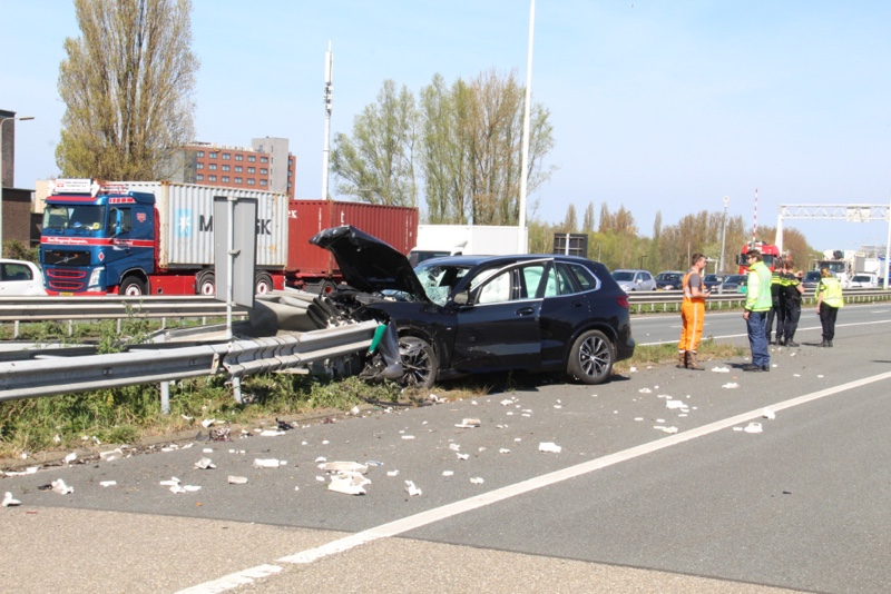 Schiedam – Op de A4 van Vlaardingen richting Hoogvliet is ter hoogte van Schiedam, net voor de Beneluxtunnel, een auto tegen de vangrail gecrasht.