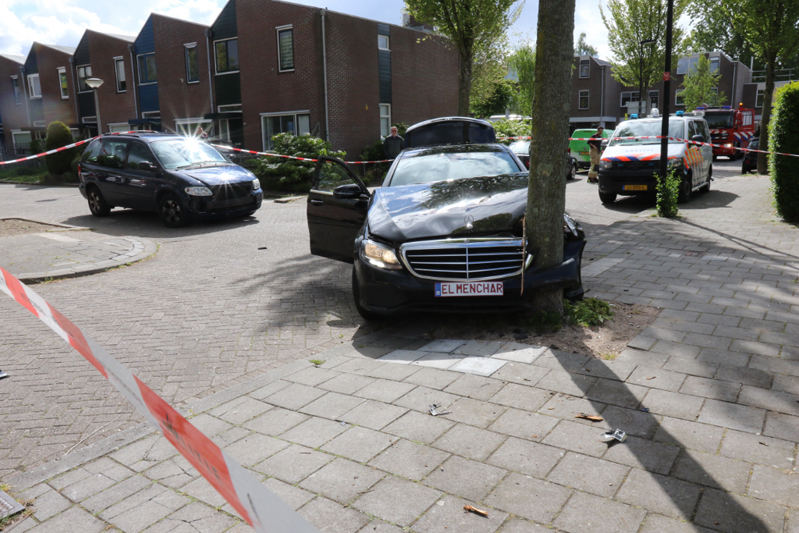 Vlaardingen – Op de Frieslandlaan ging het zondagmorgen mis tijdens een achtervolging door de politie van een Belgisch voertuig. De auto raakte een andere auto die net uit de Lensterlandhoeve kwam en schoot daarna door om tegen een boom tot stilstand te komen. De bestuurder ging er vervolgens vandoor. De politie starte direct in de omgeving een onderzoek naar hem en liet er een Burgernet uitgaan om hem te vinden. Een ambulance kwam ter plaatse en behandelde drie personen. Ook de brandweer werd gealarmeerd om de gecrashte auto veilig te stellen.