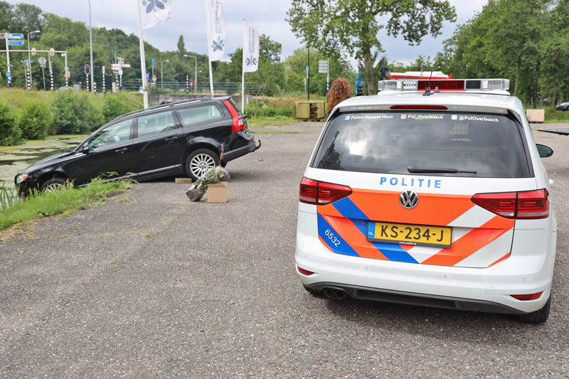 De vrouw kon nog op tijd op de rem trappen, de brandweer en de politie kwamen ter plaatse om de vrouw te helpen. Brandweermannen hebben tijdelijk stoeptegels achter de achterbanden gelegd om te voorkomen dat het voertuig alsnog in het water zou rollen.