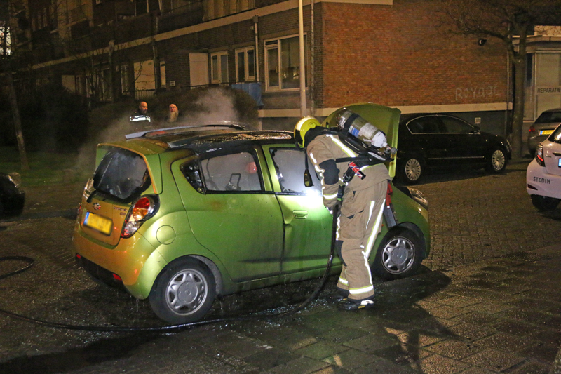 Bewoners aan de Drapeniersgaarde in Den Haag hoorde een flinke knal. Toen zij polshoogte gingen nemen zagen zij de auto in brand staan en waarschuwde de hulpdiensten.