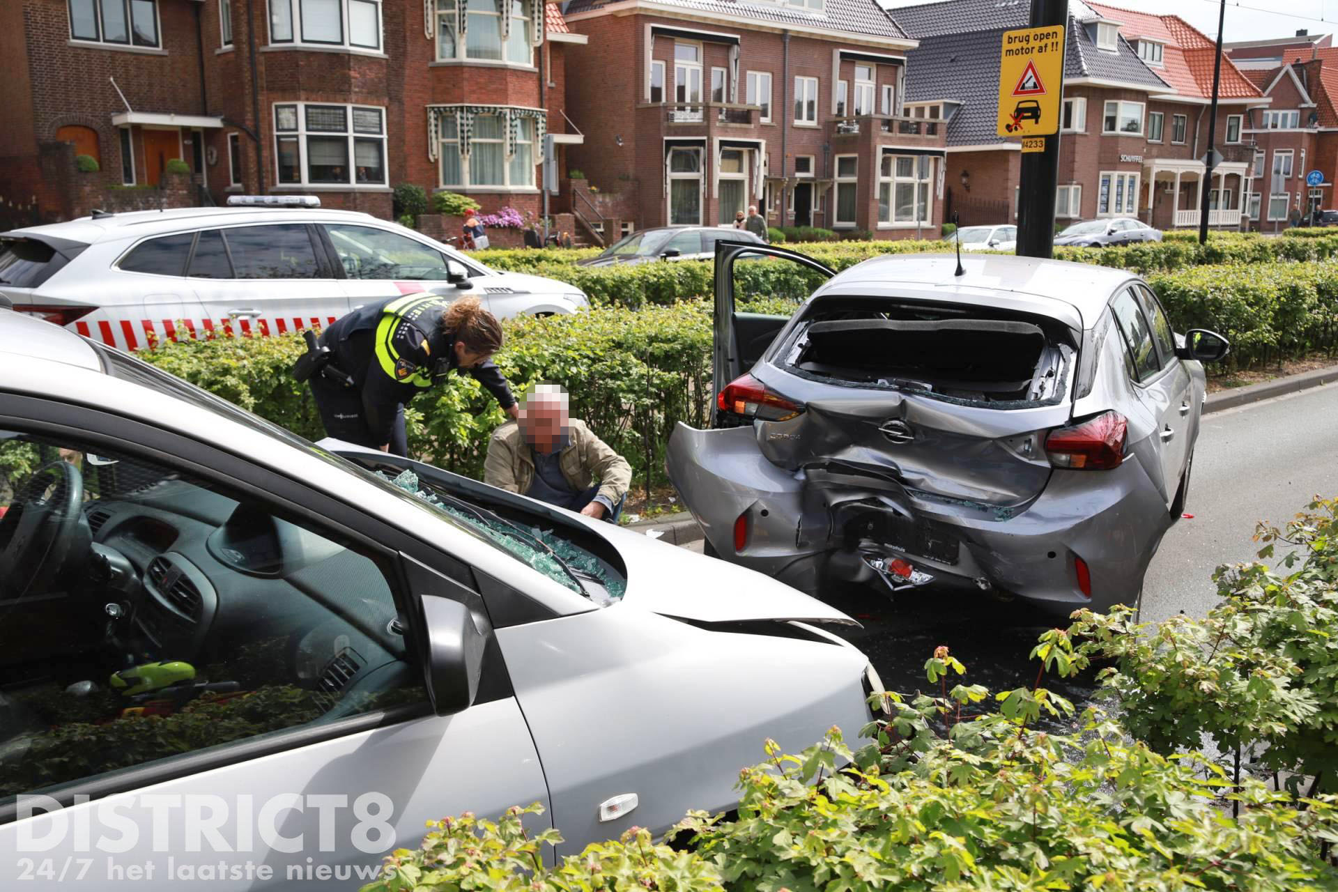 Omstreeks 12:10 klapte drie voertuigen op elkaar op de Haagweg net voor de Hoornbrug, het voorste voertuig van het ongeval ging er na de klap vandoor.