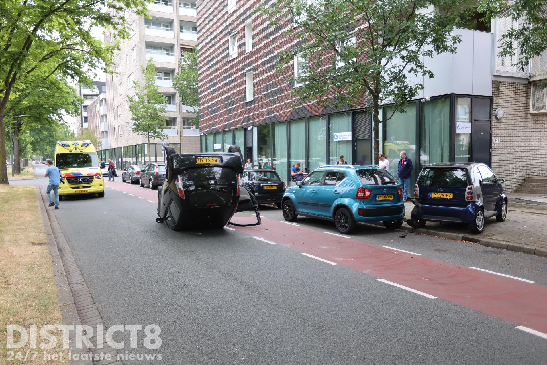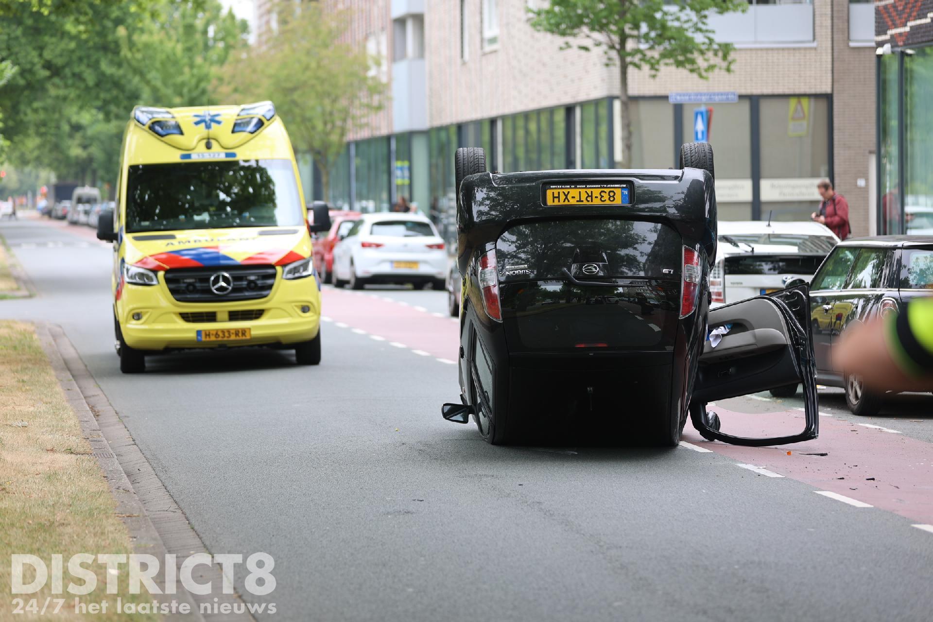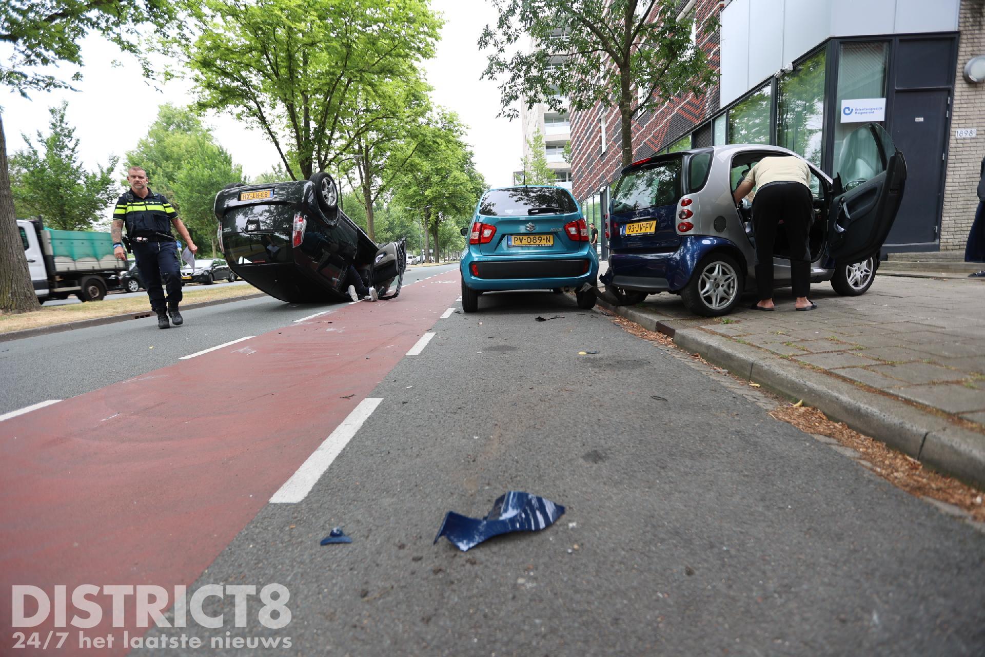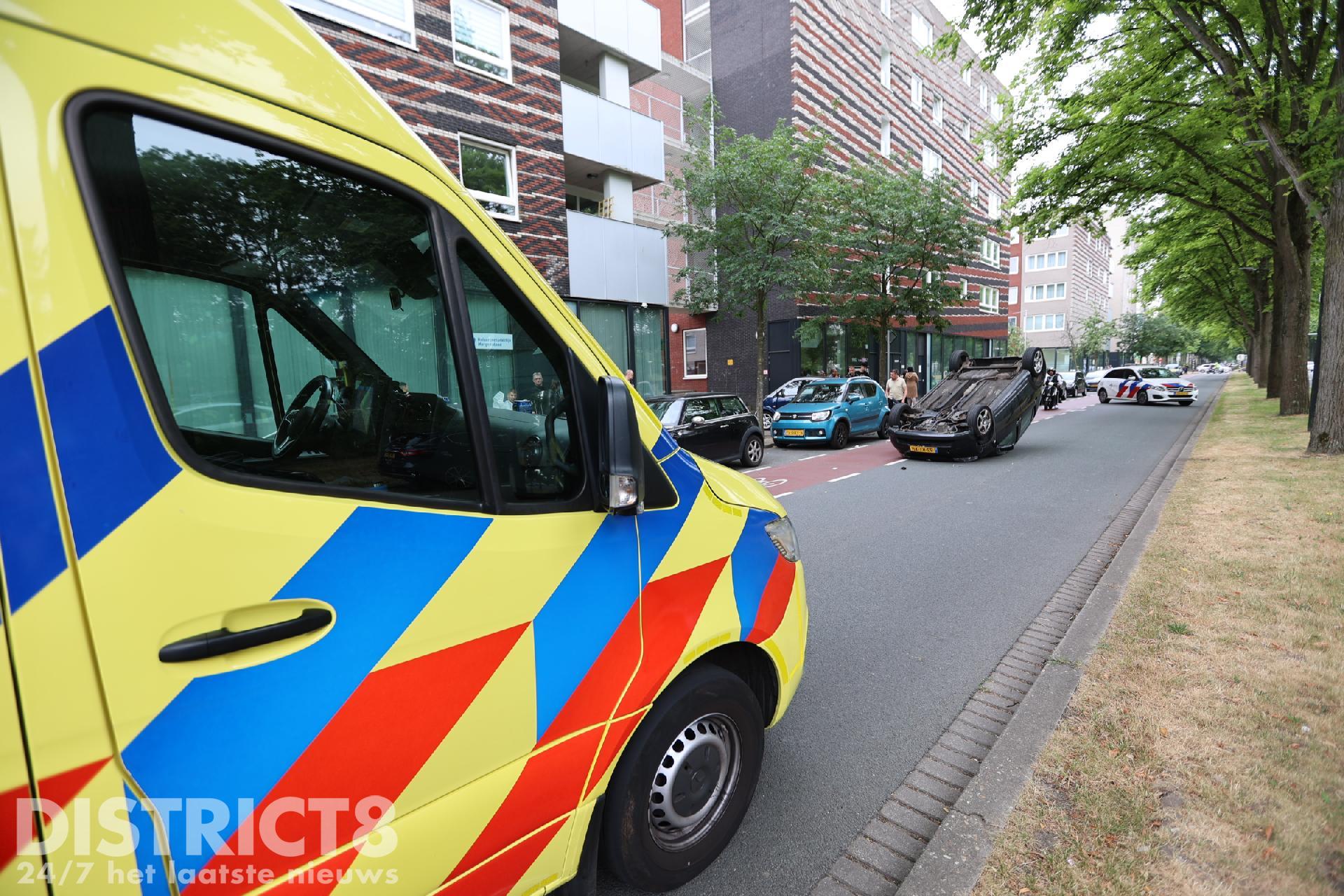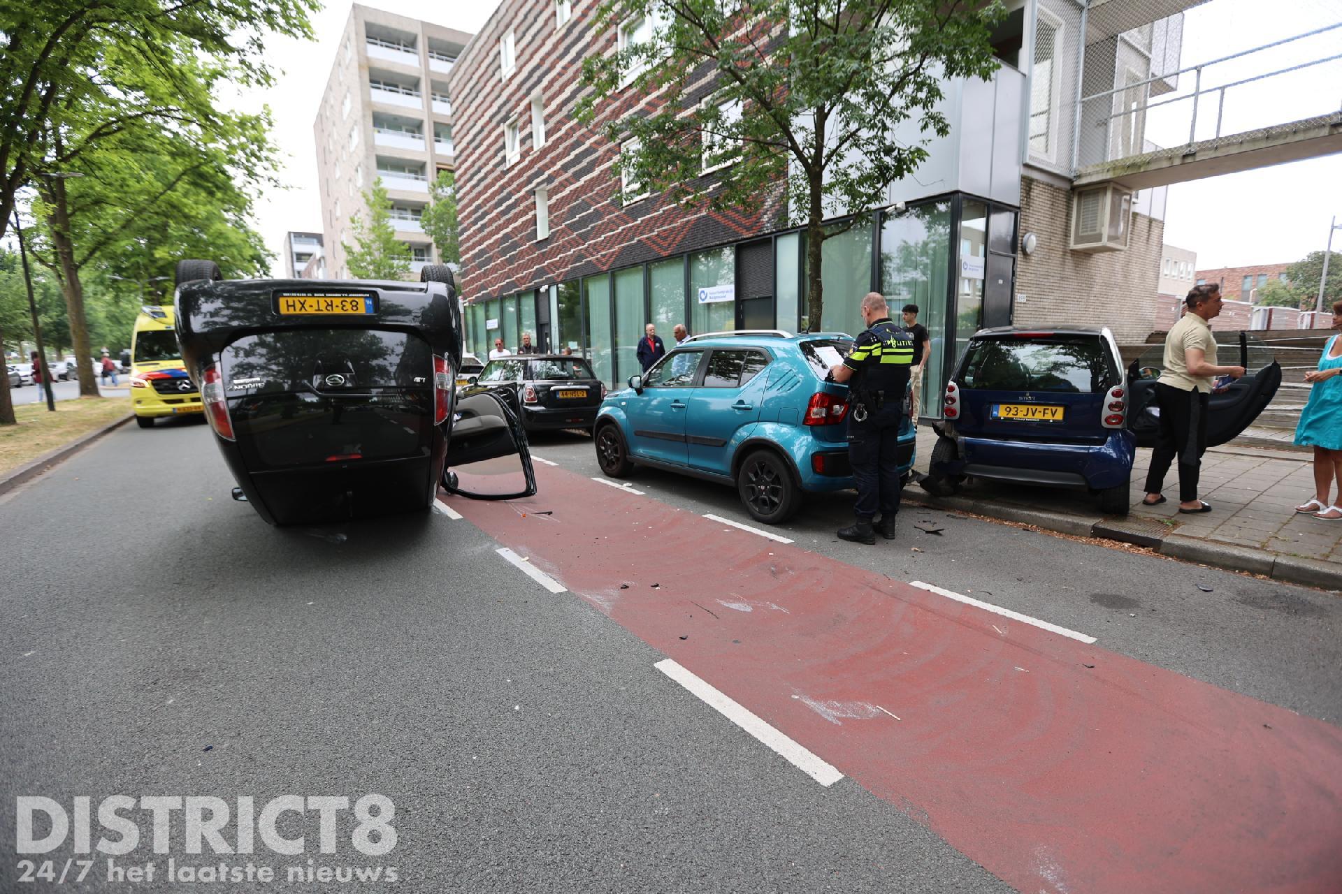 Den Haag – Op de Melis Stokelaan in Den Haag is een voertuig op zijn dak terecht gekomen nadat hij in botsing kwam met een ander voertuig.