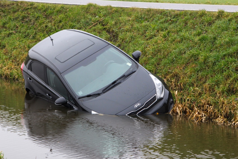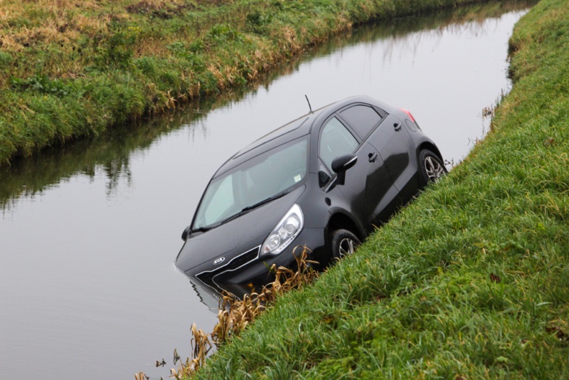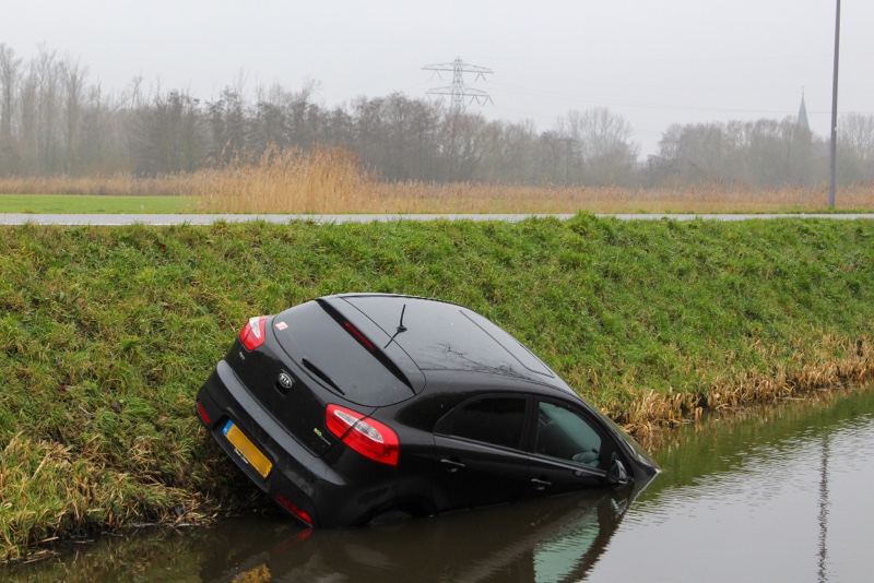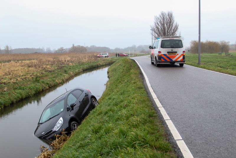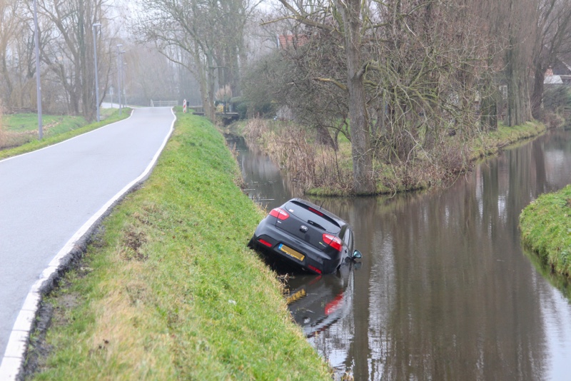 Een takelbedrijf heeft de auto uit het water getild. De vrouw kon geschrokken, maar ongedeerd haar weg vervolgen.