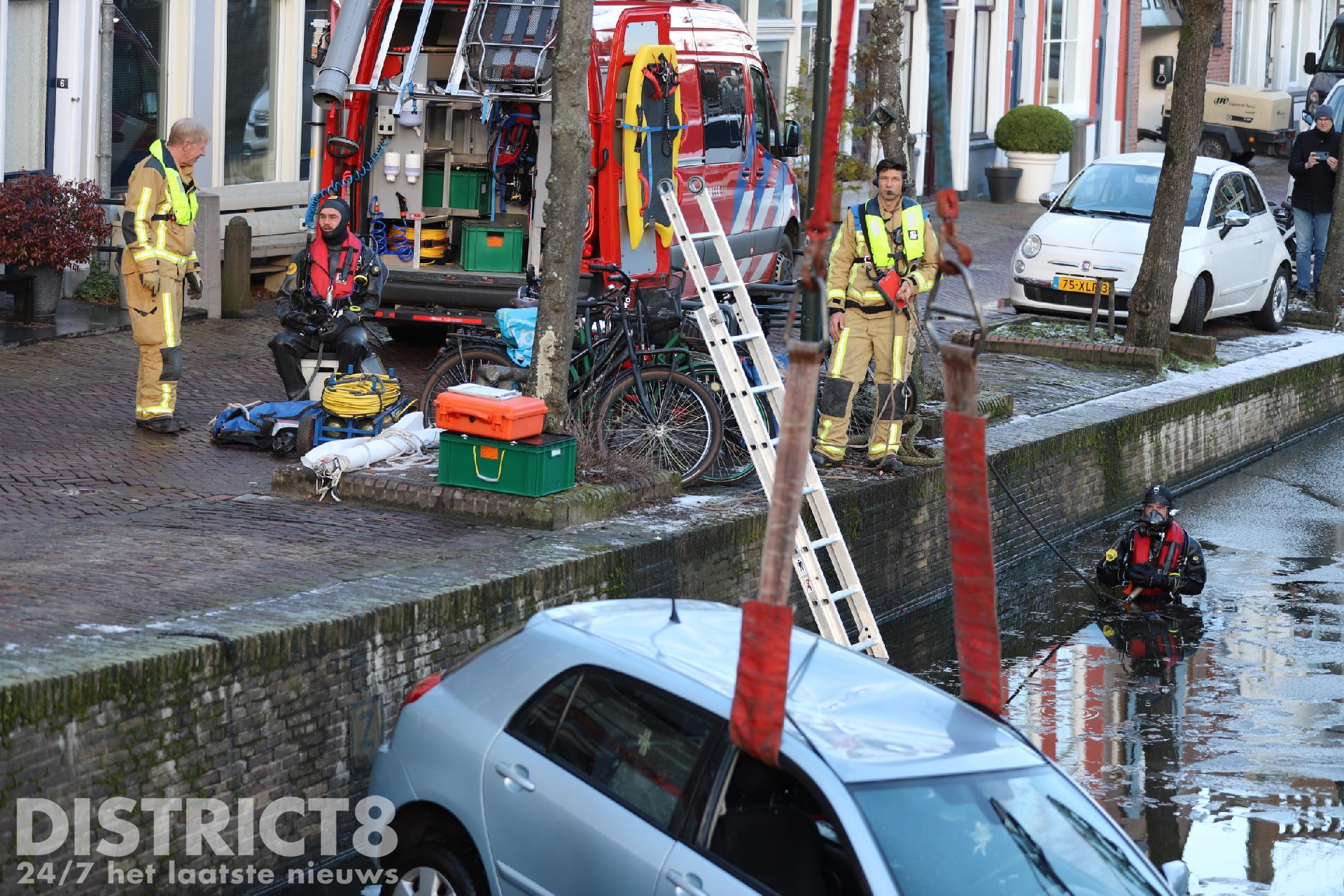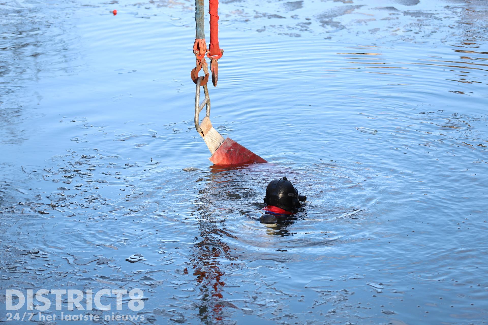 De auto verdween al snel volledig onder water, duikers van de brandweer zijn te water gegaan om samen met de kleine kraan van de brandweer de auto boven water te krijgen. Dit gebeurde onder toeziend oog van vele omstanders.