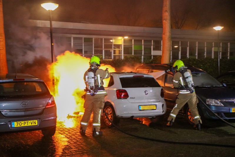 Auto in brand; brandstichting niet uitgesloten Zwaluwenlaan Vlaardingen