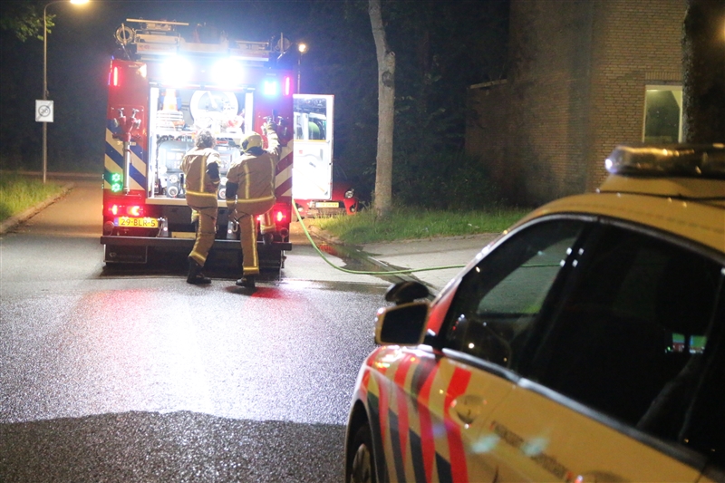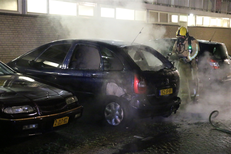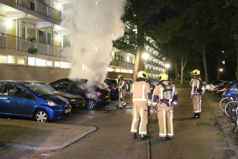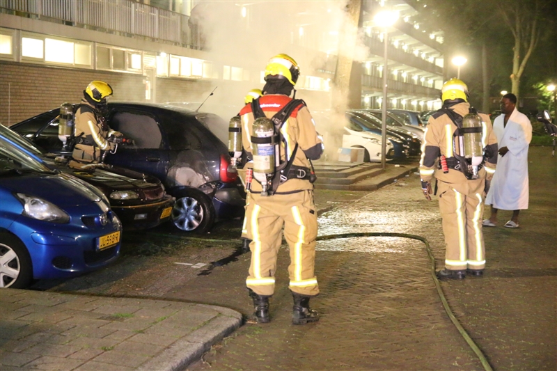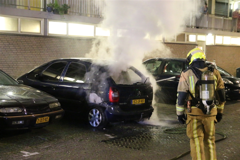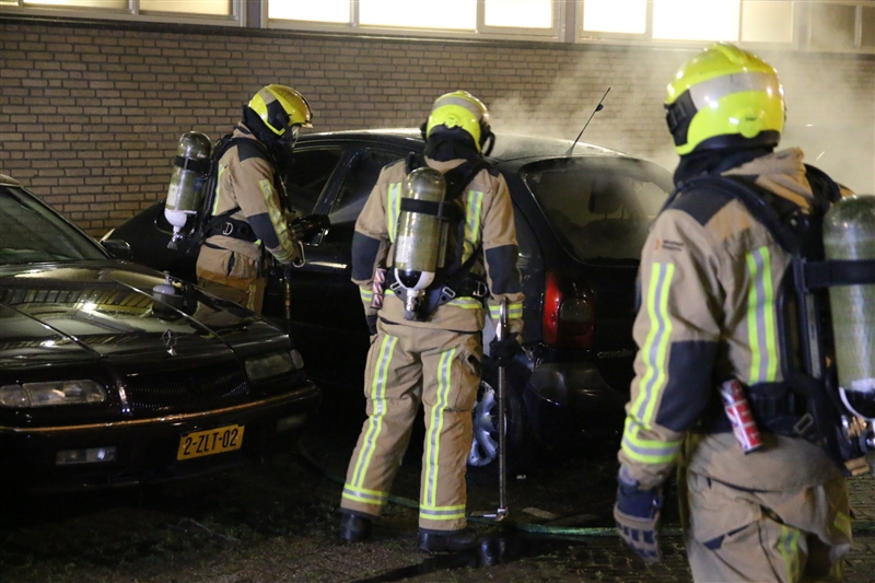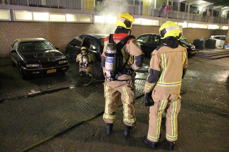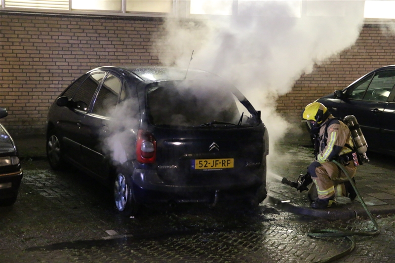 De brand begon bij het linkerachterwiel. Toen de brandweer werd gealarmeerd sloegen de vlammen al uit de auto. De brandweer kon het vuur snel onder controle krijgen.
