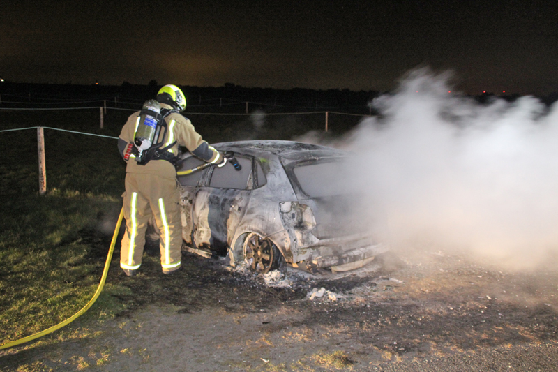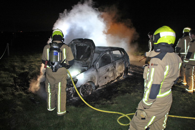 De auto stond al enige tijd in brand toen hij uiteindelijk ontdekt werd door een fietser. Bij aankomst van de hulpdiensten was de auto al uitgebrand. De auto is mogelijk gedumpt op de parkeerplaats en vervolgens in de brand gestoken.