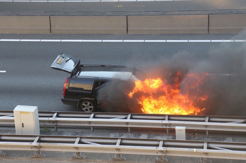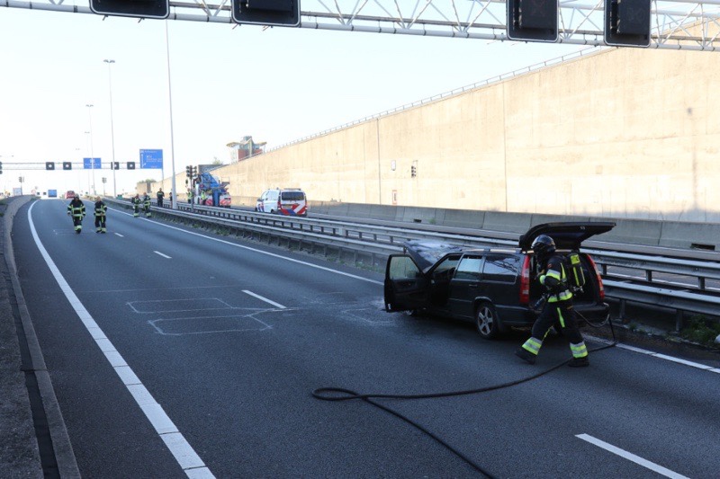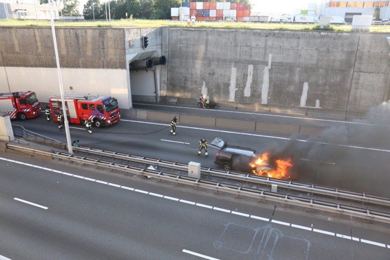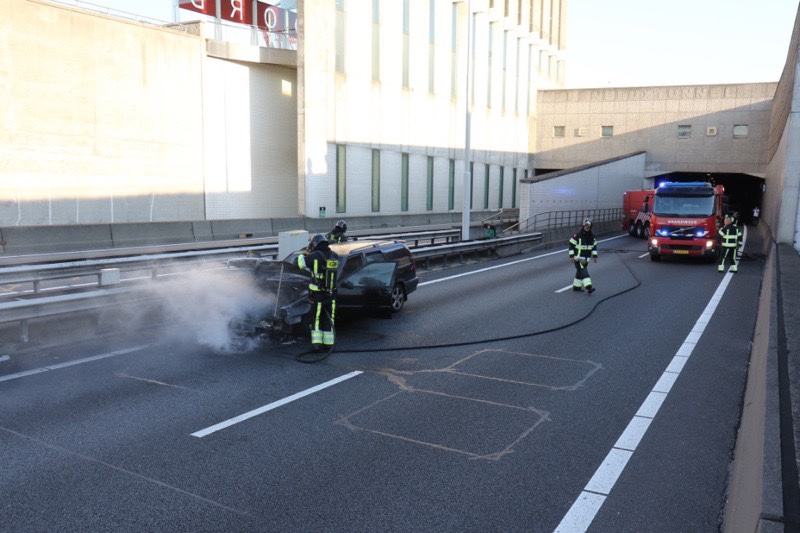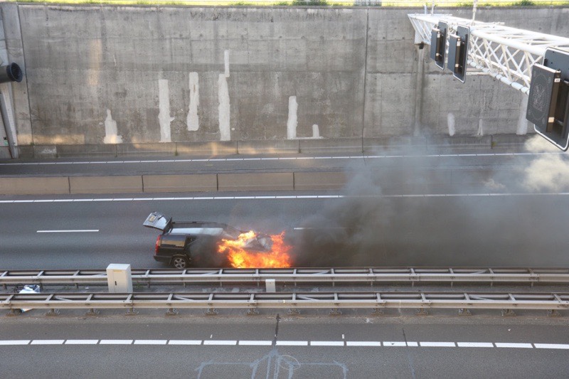 Schiedam – Vrijdagavond is een auto in brand gevlogen op de A4 net uit de Beneluxtunnel richting Delft.