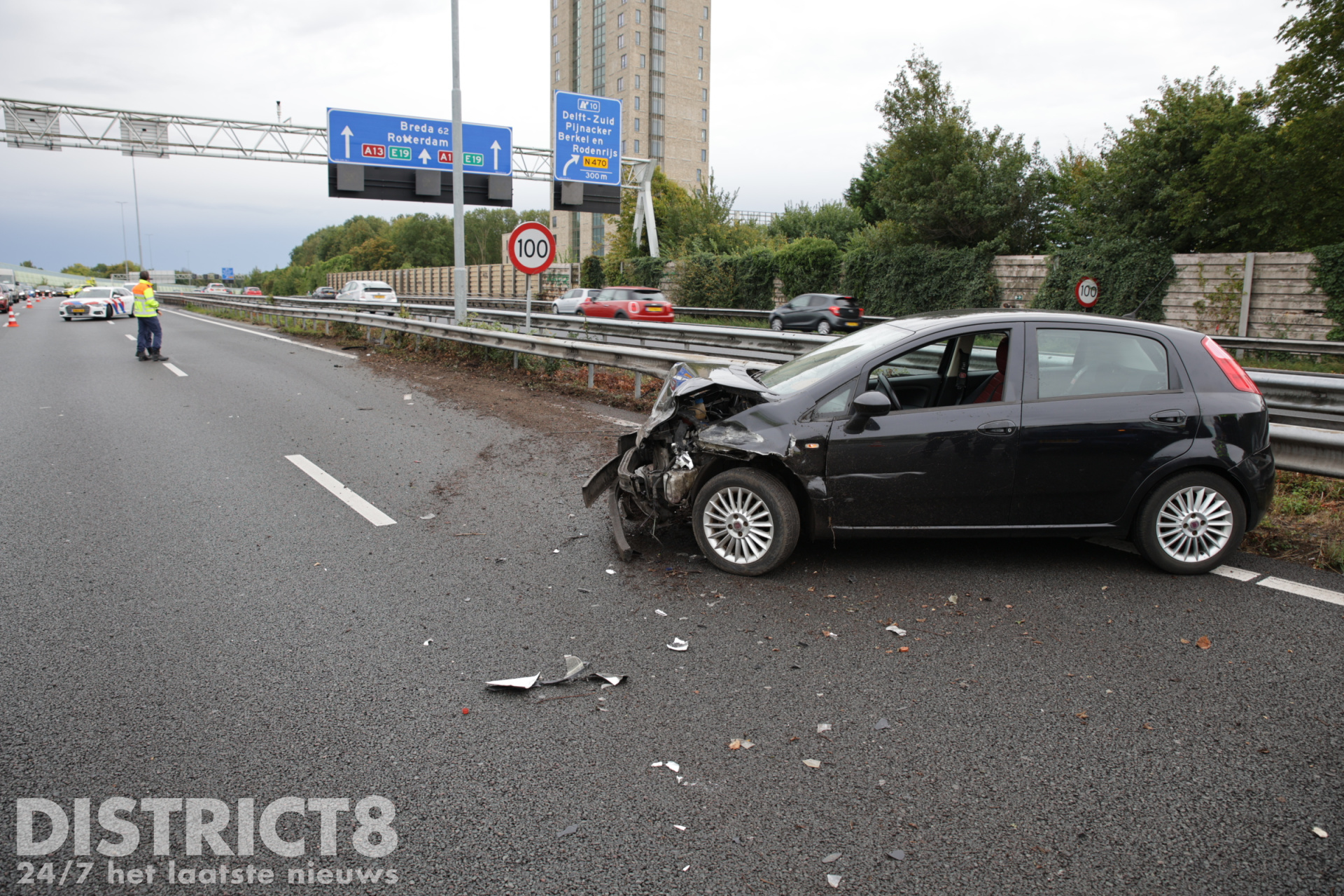 Delft – Op de A13 bij Delft heeft zaterdagmiddag 13 september een ongeval plaatsgevonden tussen twee voertuigen. Omstreeks 16:30 uur belandde een van de voertuigen in de vangrail.
