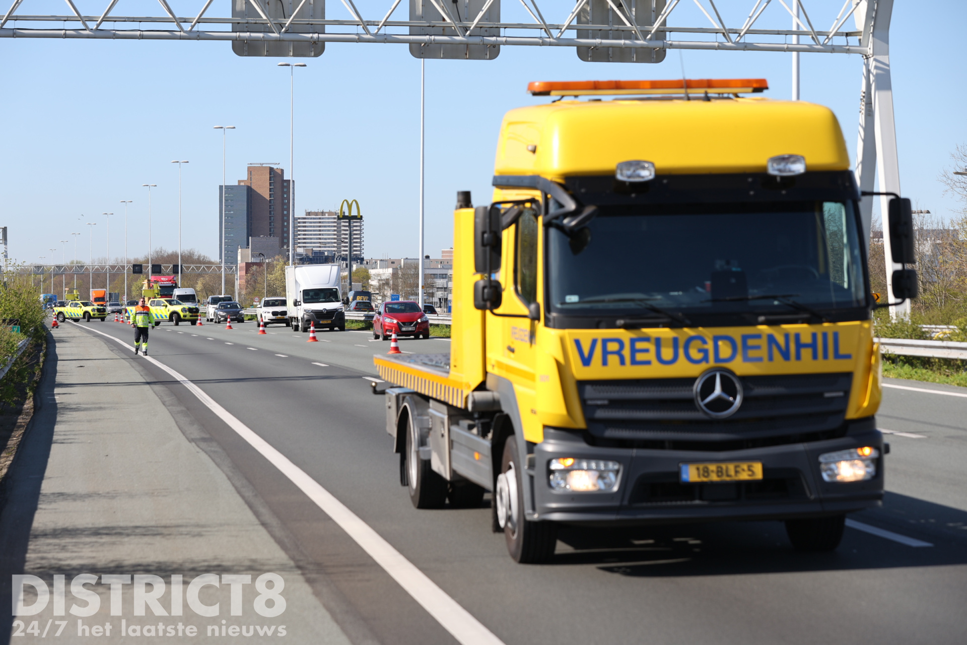 De snelweg werd na het incident korte tijd volledig afgesloten. Daarna bleven twee rijstroken langere tijd dicht om de afhandeling van het ongeval mogelijk te maken.