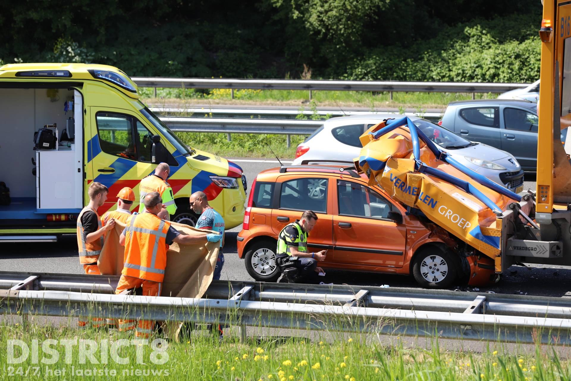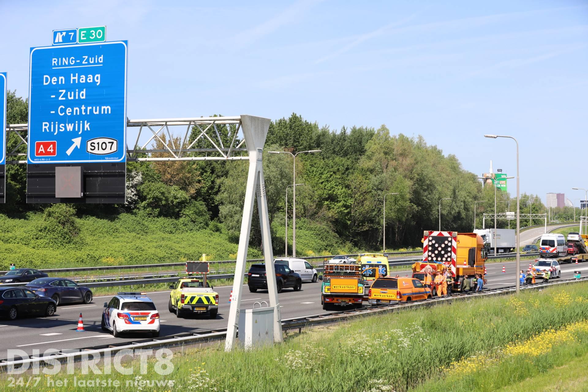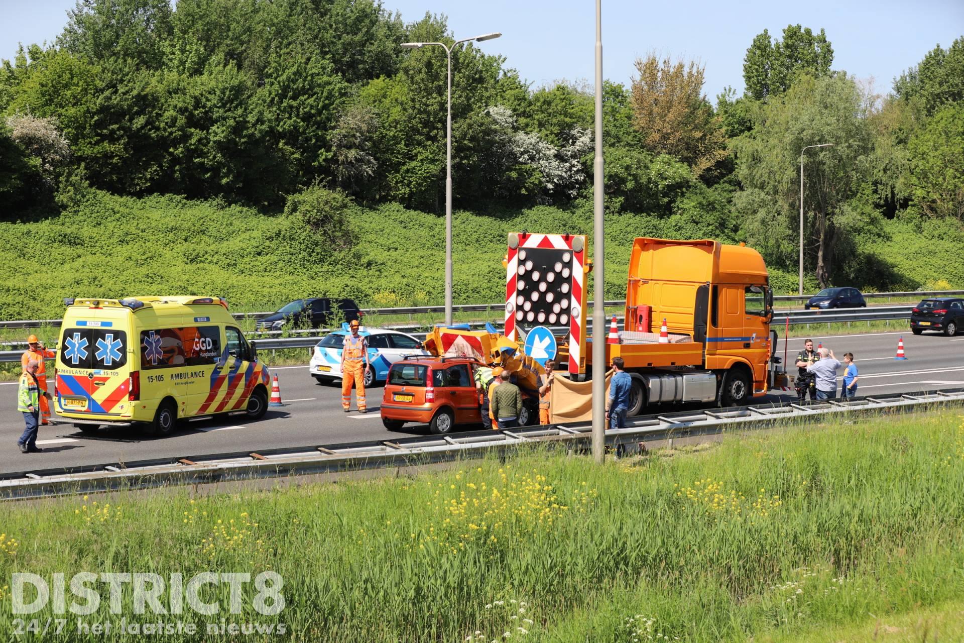 Den Haag – Maandagmiddag 9 mei is een automobilist met hoge snelheid op een botswagen geklapt. De botswagen stond een afrit af te sluiten na een eerder ongeval met een brandweermotor.