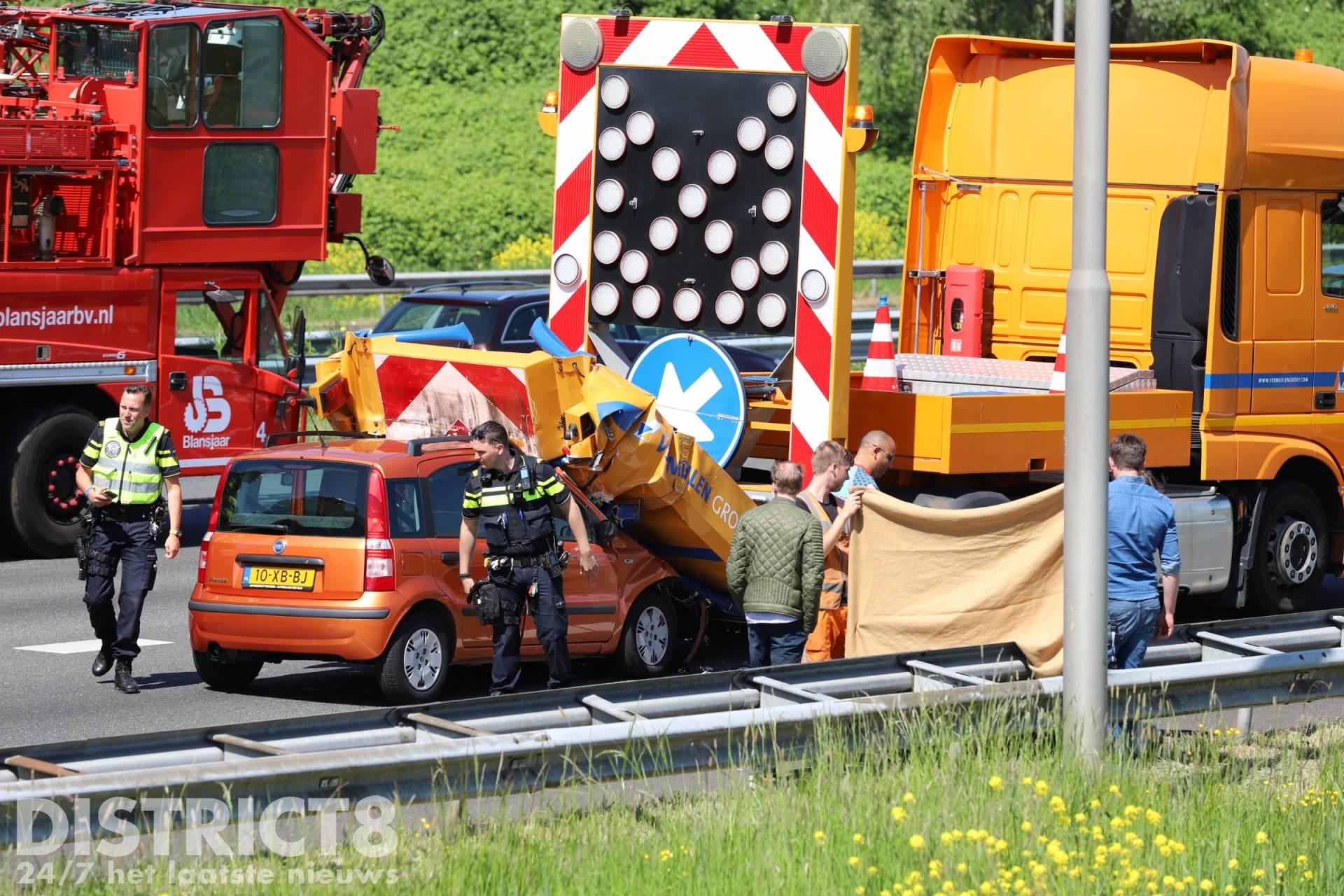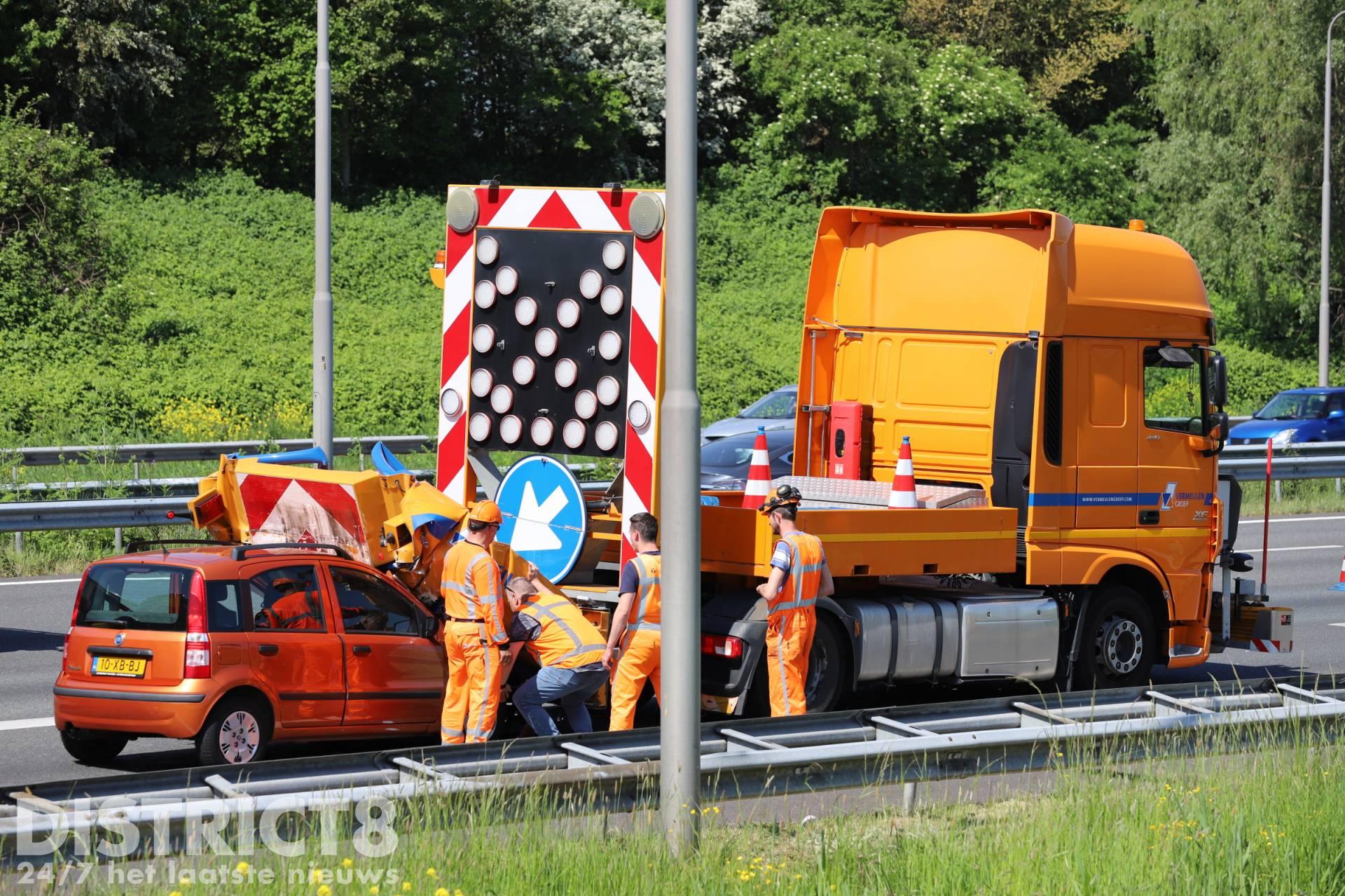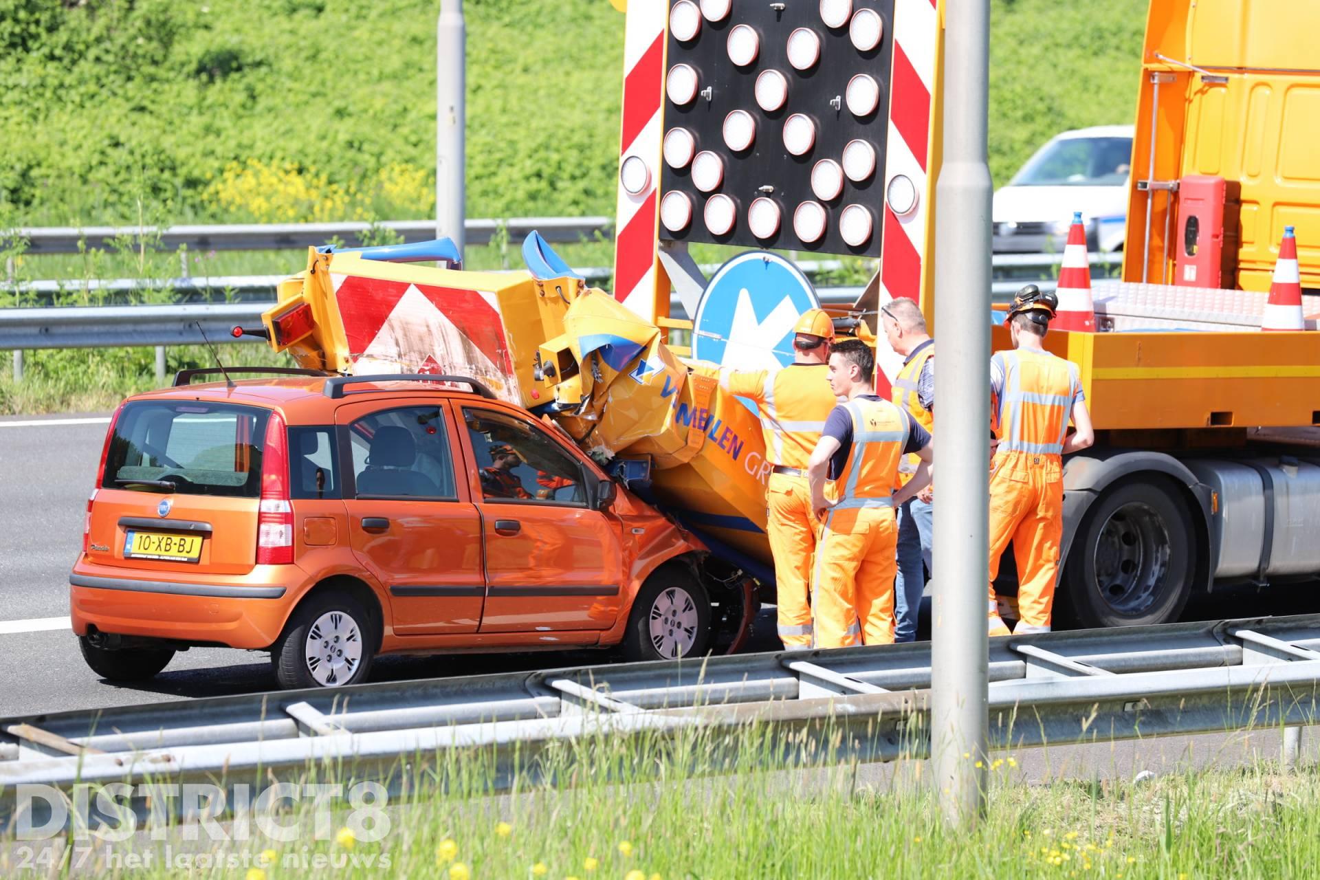 Den Haag – Maandagmiddag 9 mei is een automobilist met hoge snelheid op een botswagen geklapt. De botswagen stond een afrit af te sluiten na een eerder ongeval met een brandweermotor.