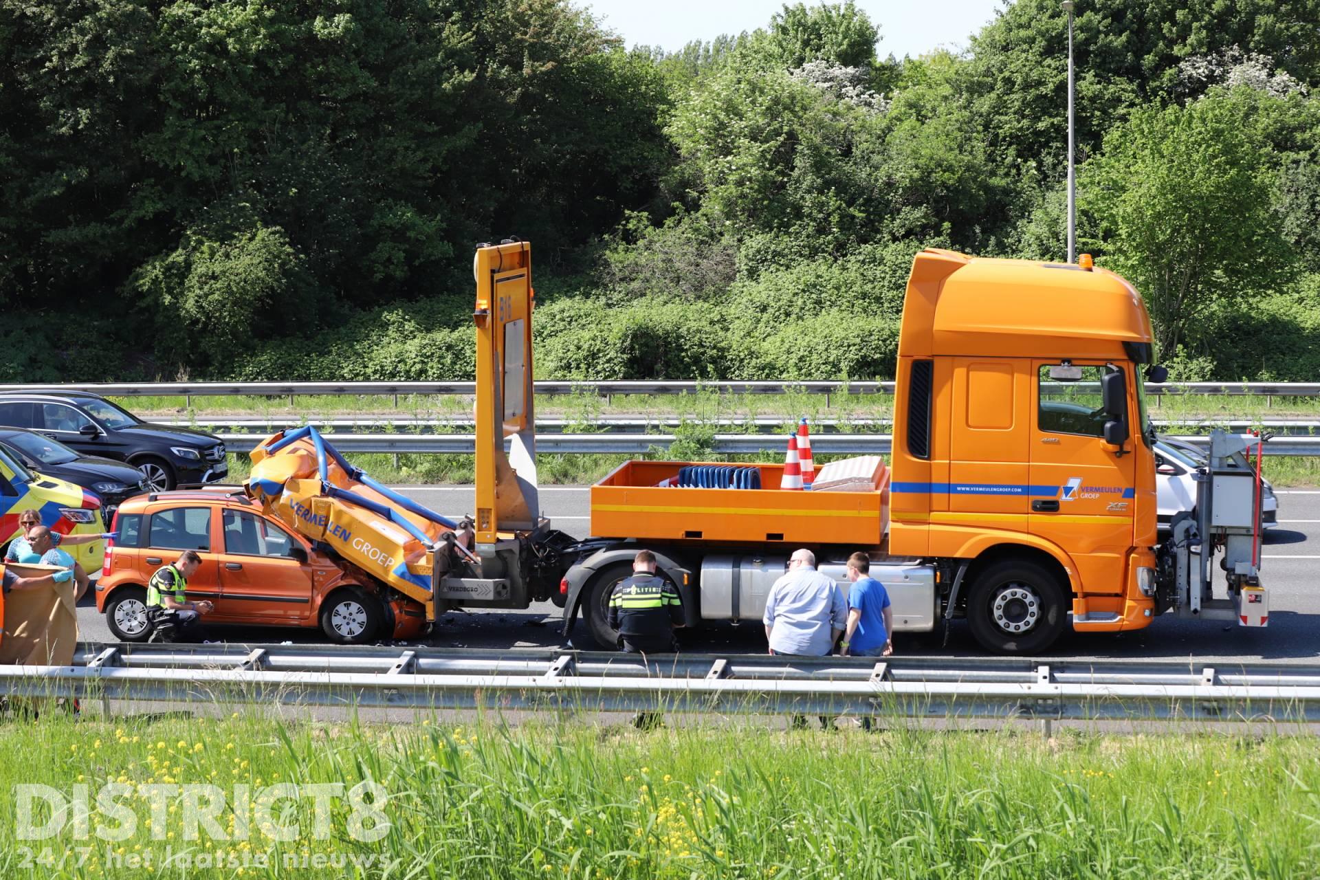 De bestuurder van de auto raakte bij het ongeval gewond. Een ambulance is met spoed ter plaatse gekomen om het slachtoffer te controleren. Door het ongeval werd al snel een deel van de A13 afgezet.